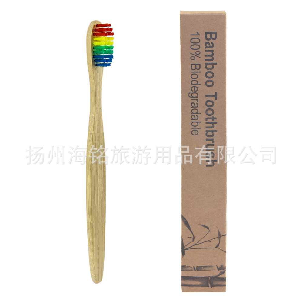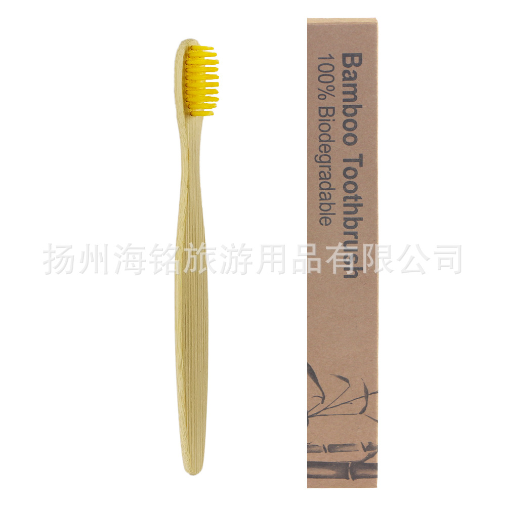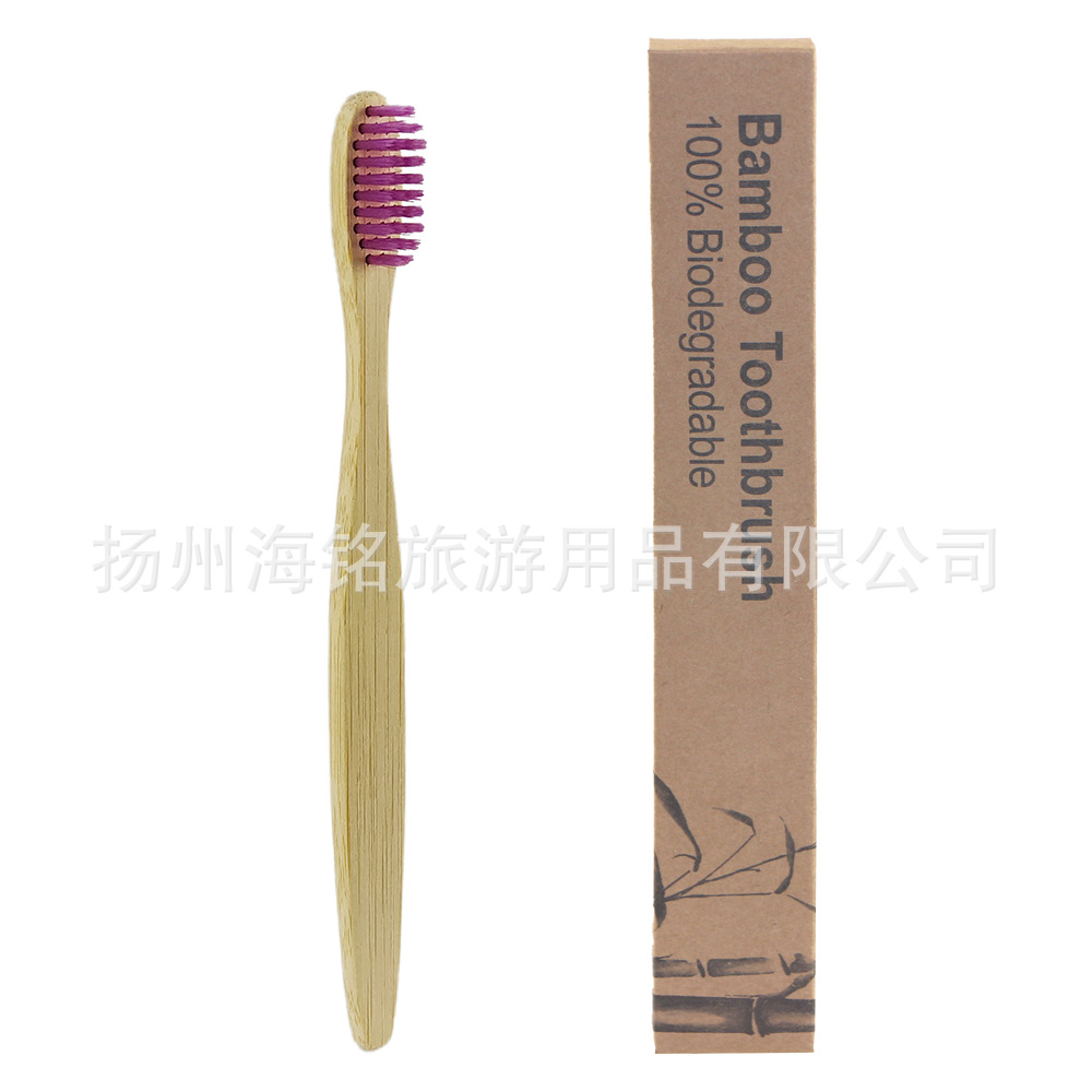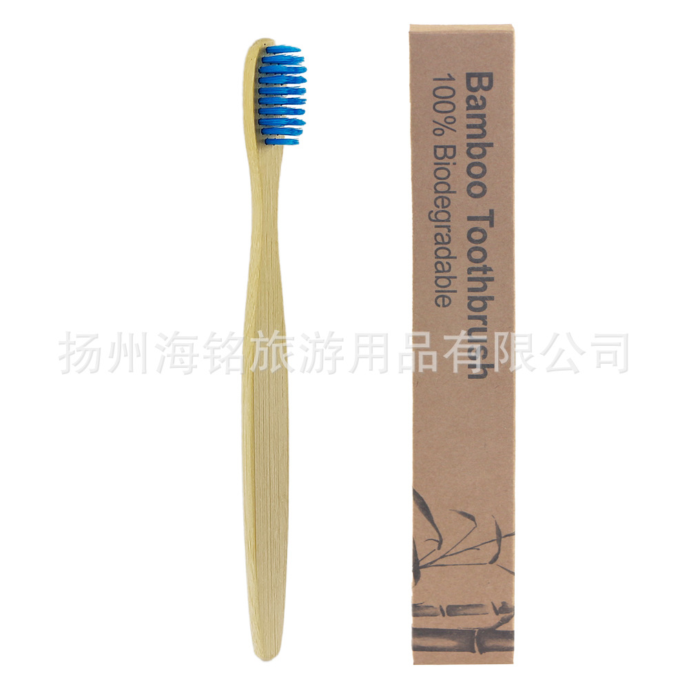 卡盒竹牙刷酒店一次性用品竹木牙刷环保可降解LOGO平板彩色软刷毛