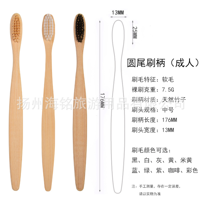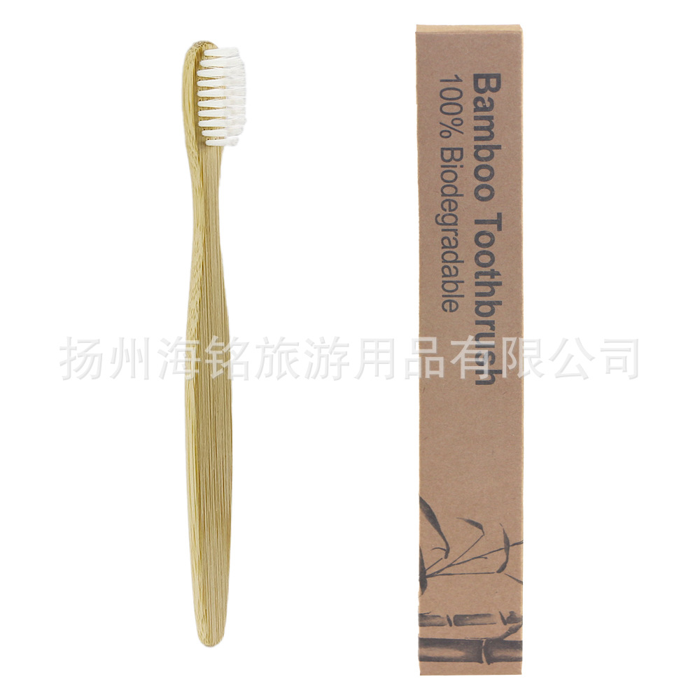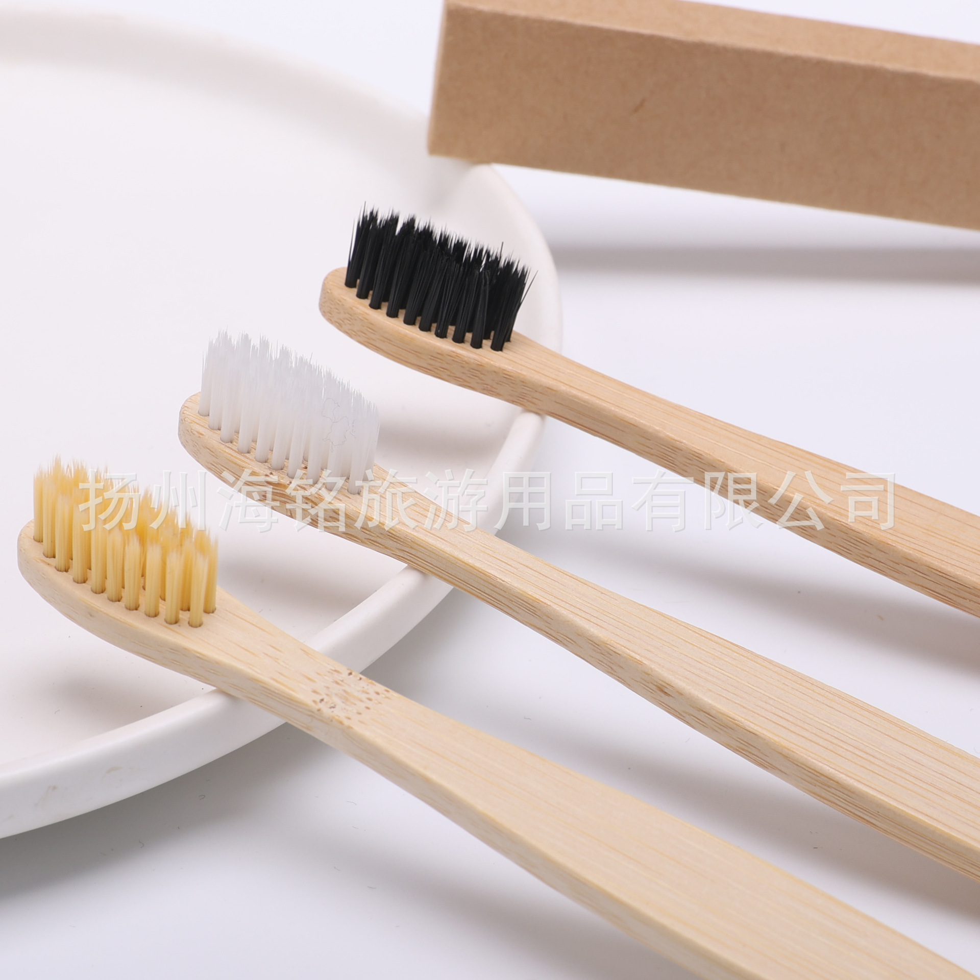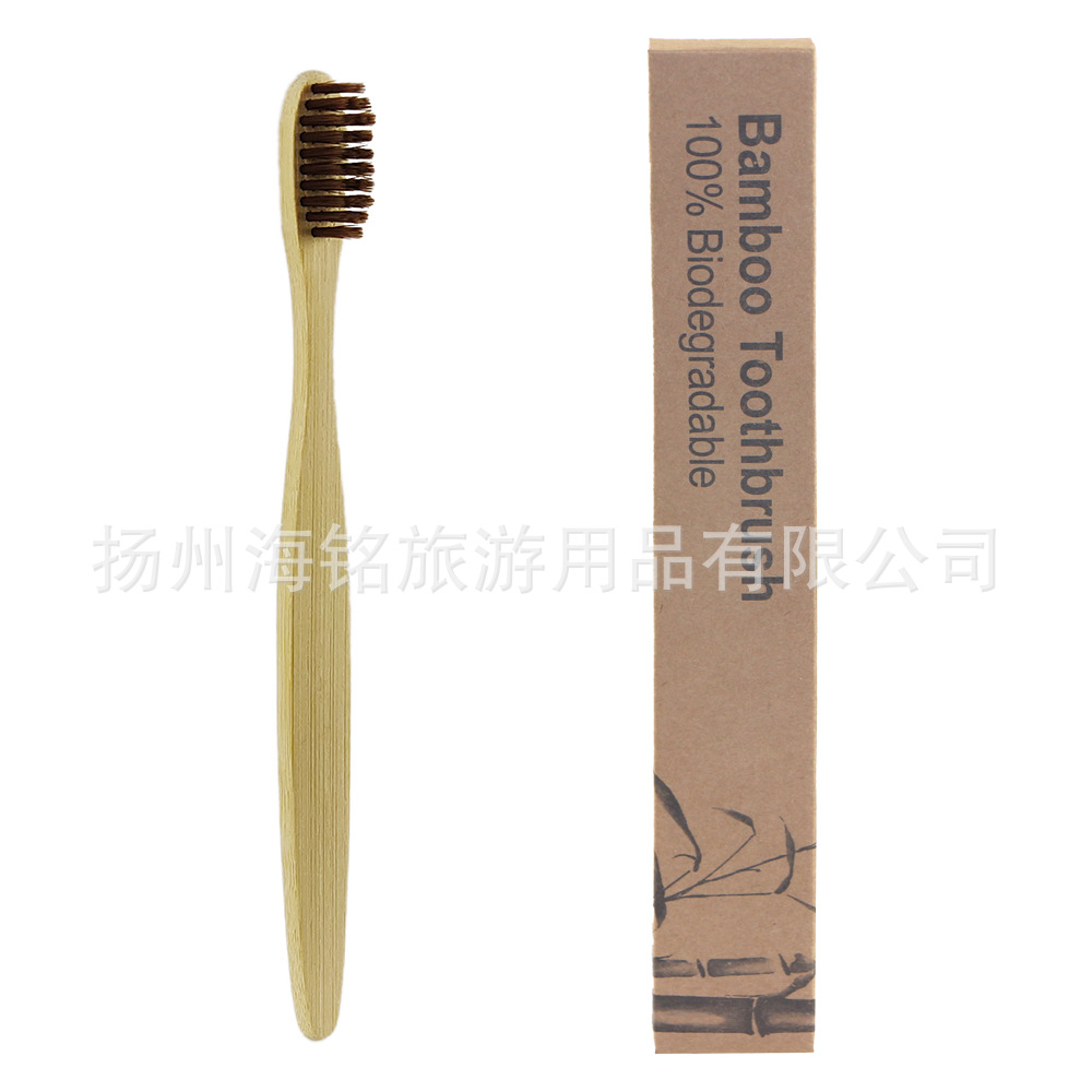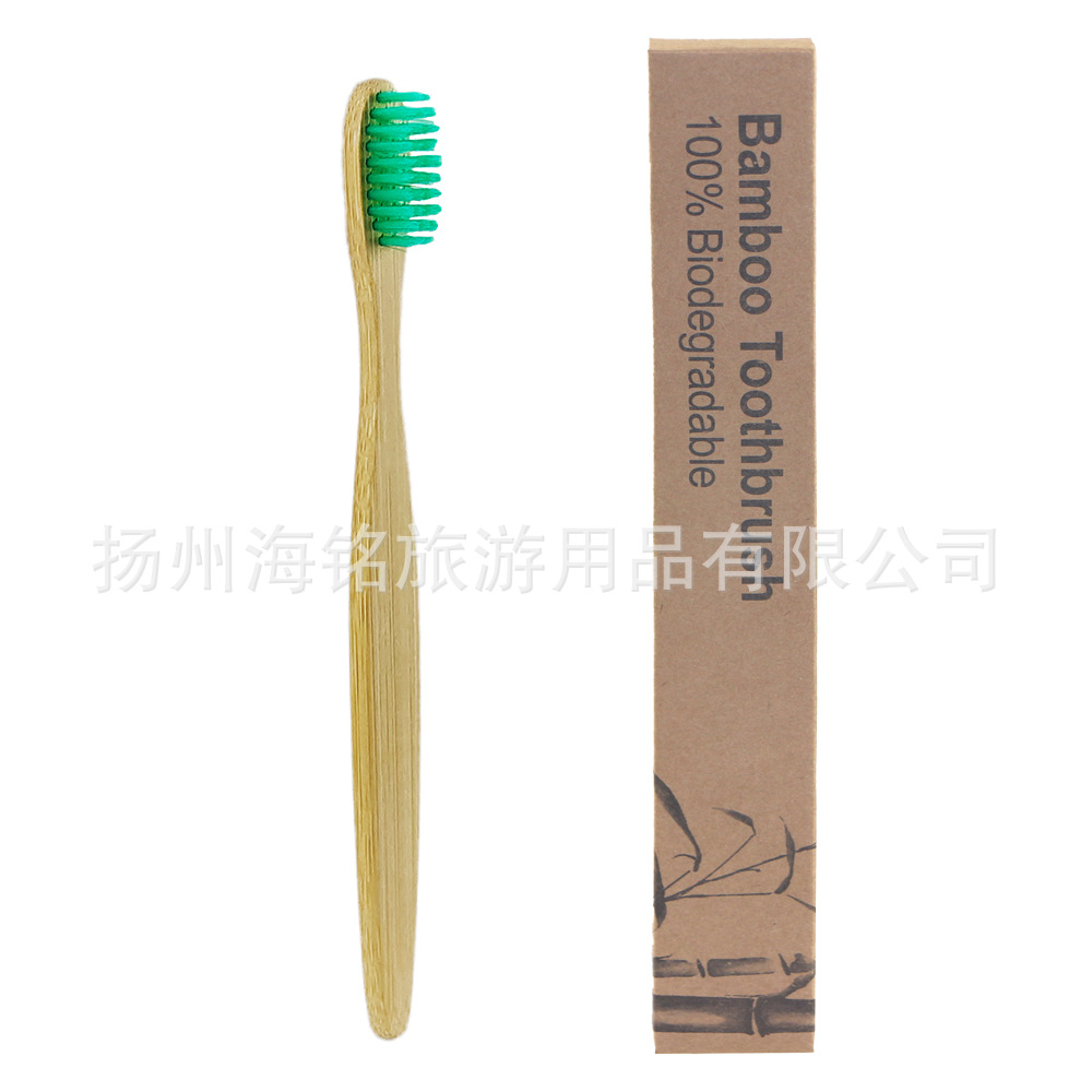 卡盒竹牙刷酒店一次性用品竹木牙刷环保可降解LOGO平板彩色软刷毛