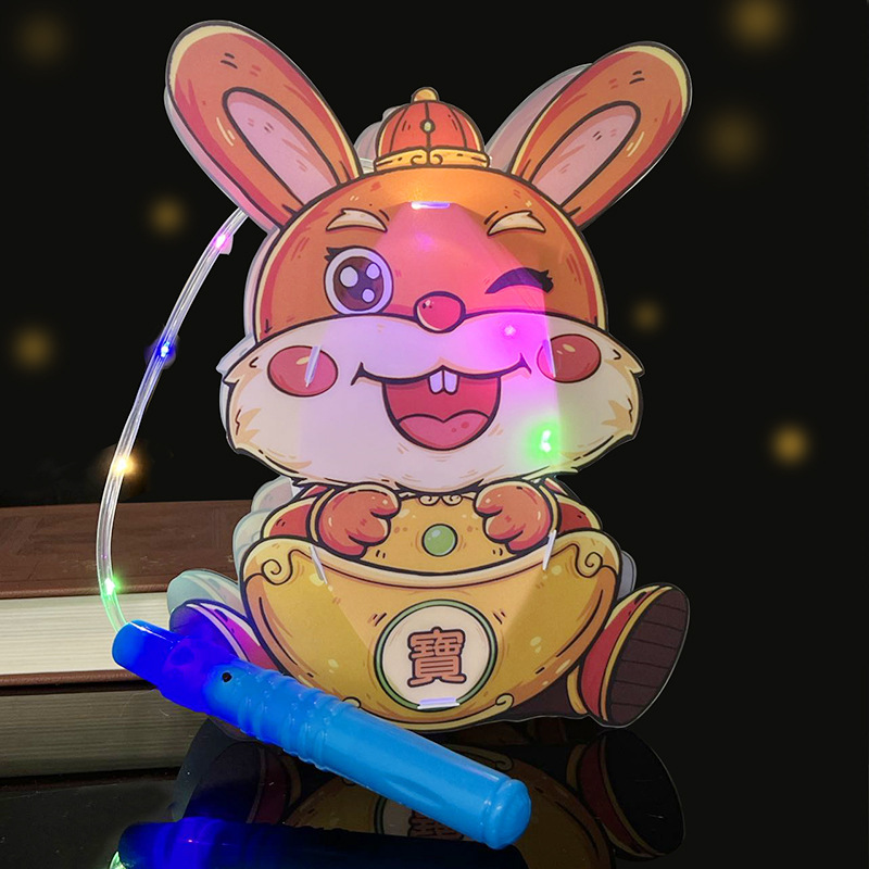 新款发光玉兔灯笼手提卡通兔子星空球古风宫廷灯笼儿童玩具批发