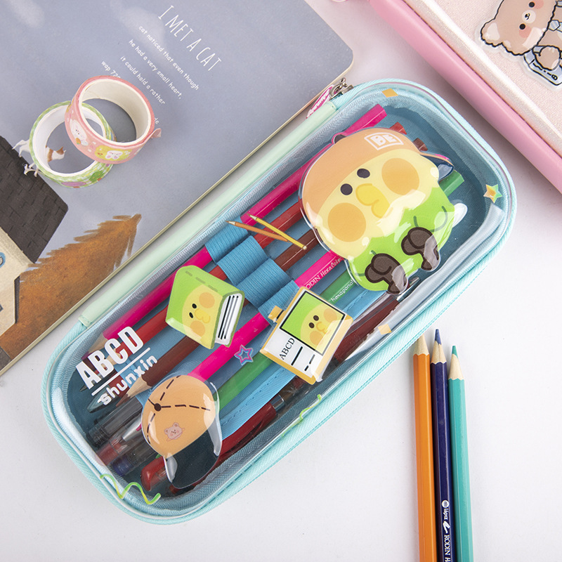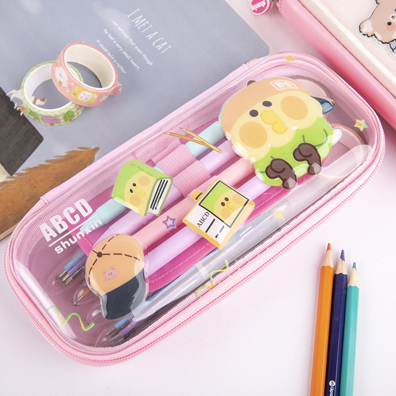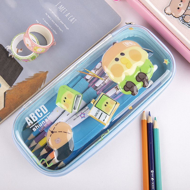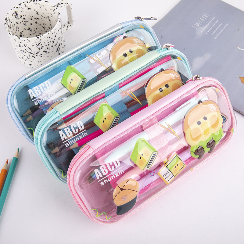 卡通小学生儿童透明书生笔袋可爱男女生pu文具盒大容量创意铅笔盒