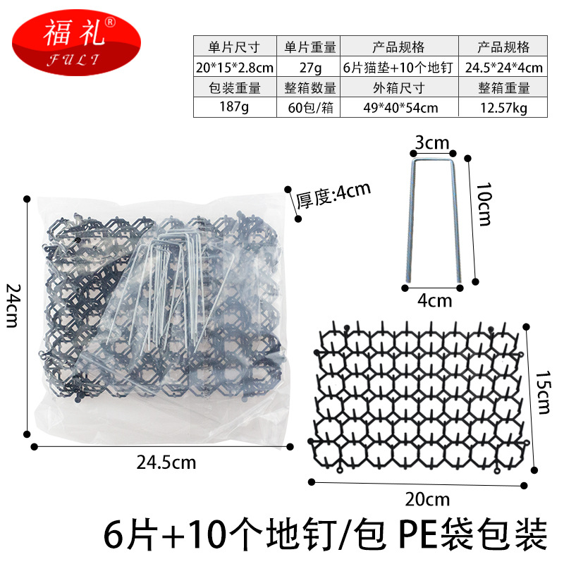 跨境直供防猫刺垫12片/盒阳台花园塑料驱猫网防猫抓刺垫防猫垫