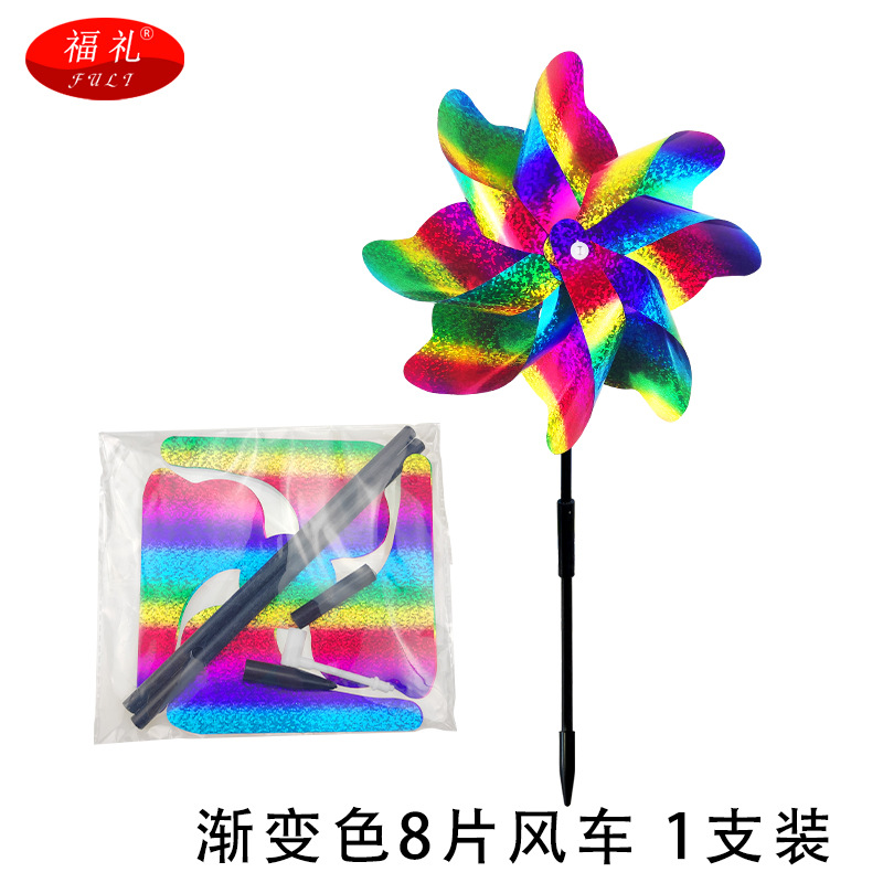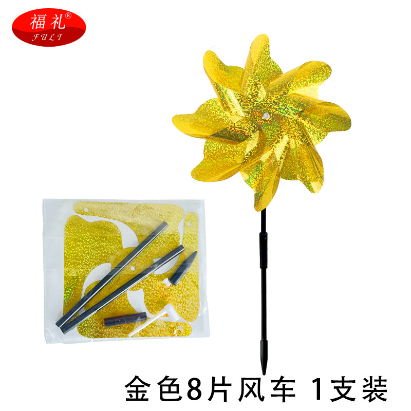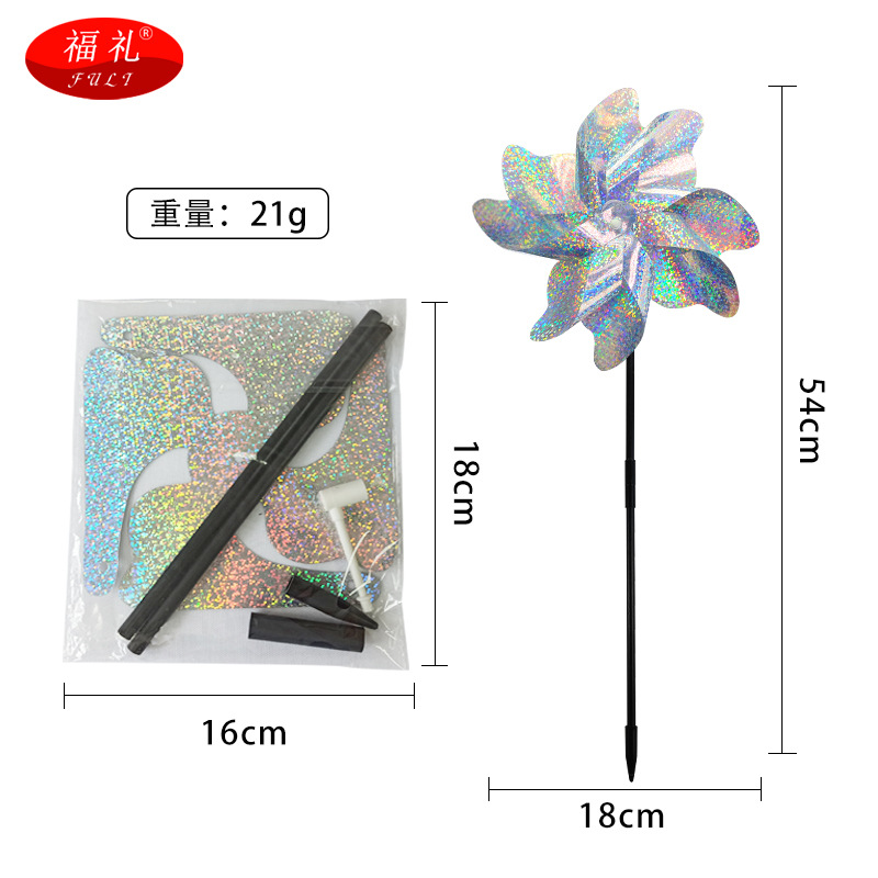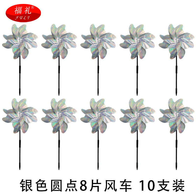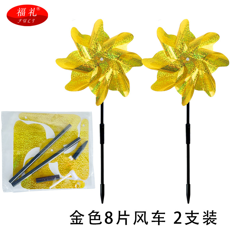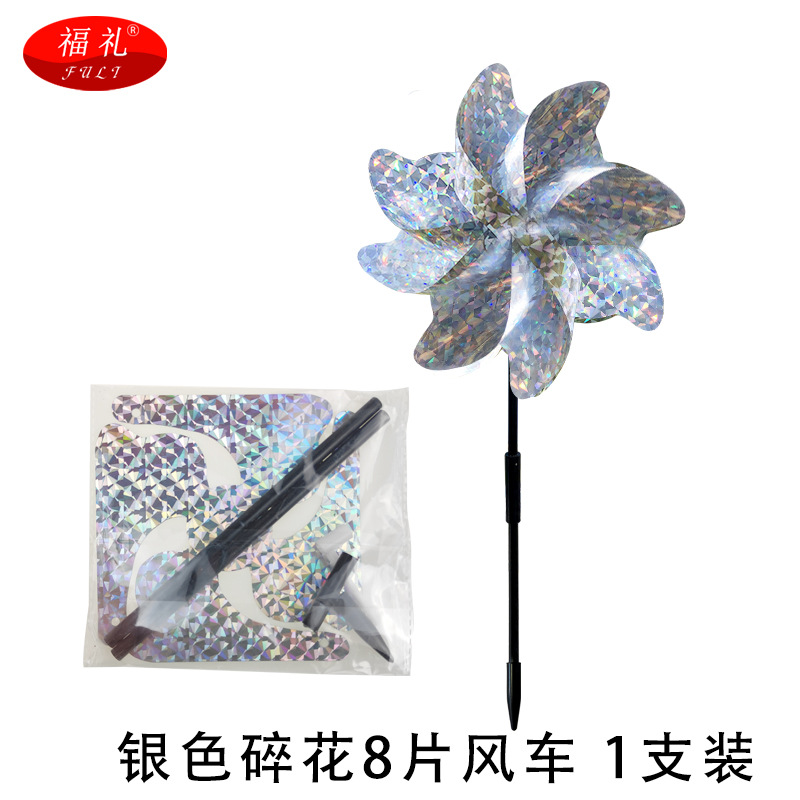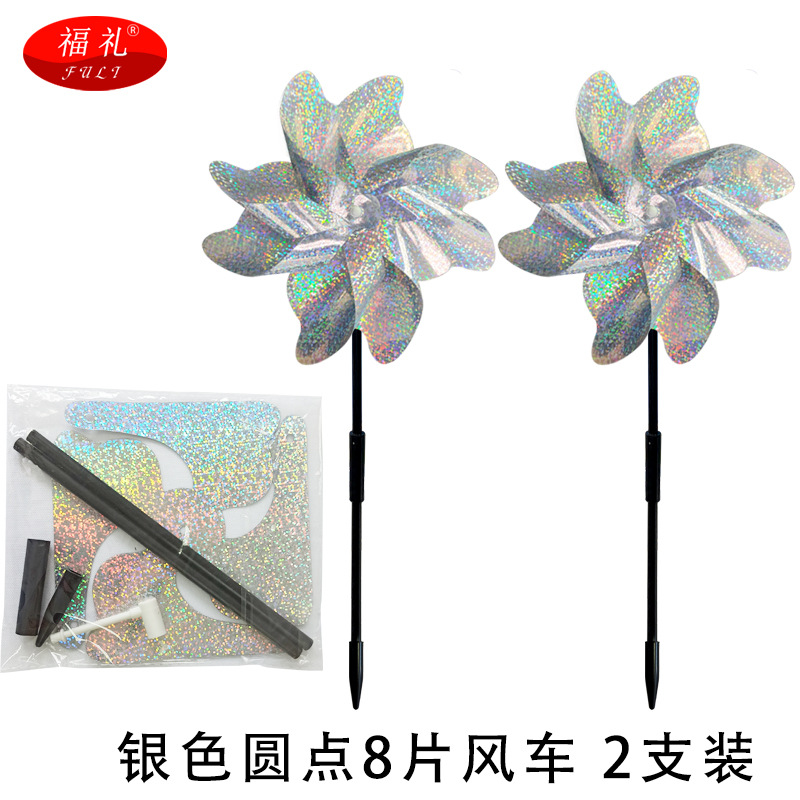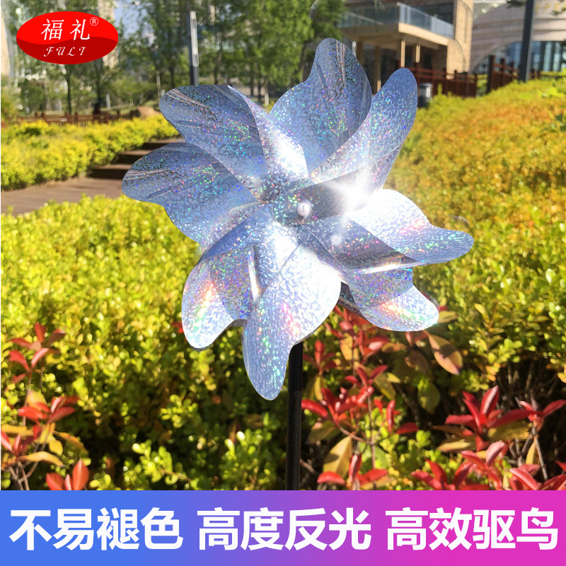 跨境直供 反光驱鸟风车彩色8片风车果园阳台庭院防鸟镭射驱鸟风车