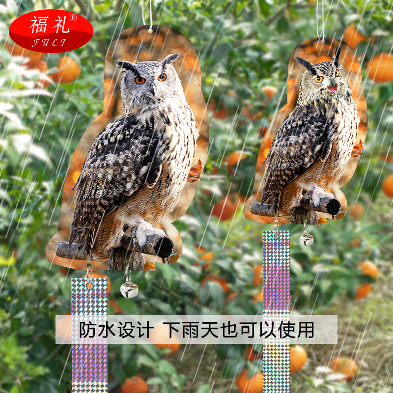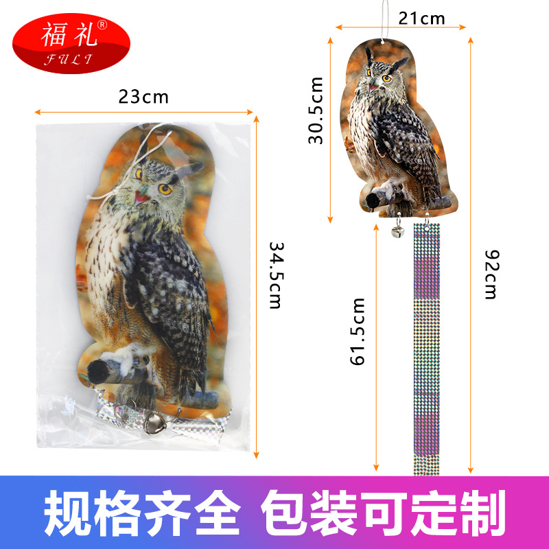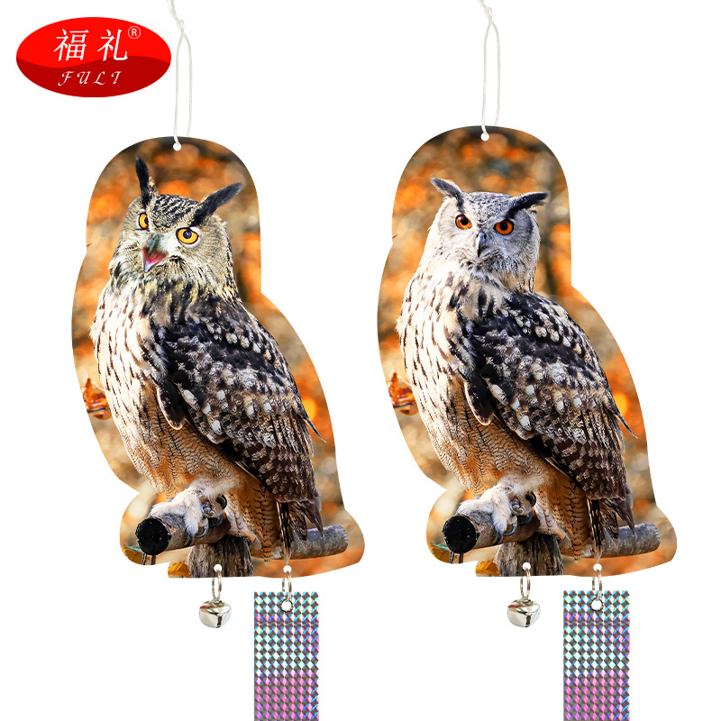 跨境批发园林驱鸟工具3D立体仿真驱鸟猫头鹰双面镭射 果园防鸟器