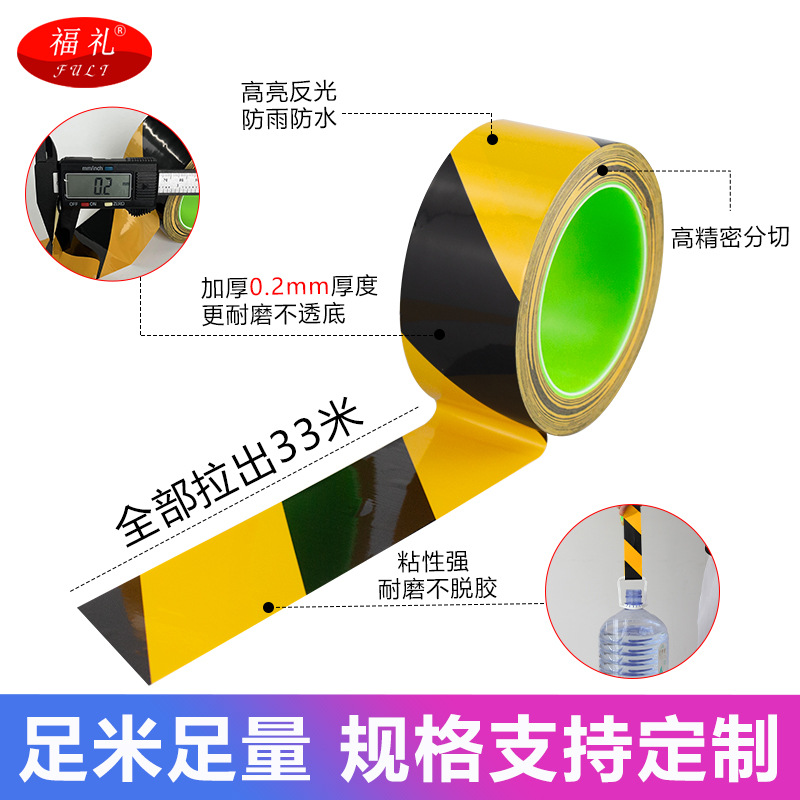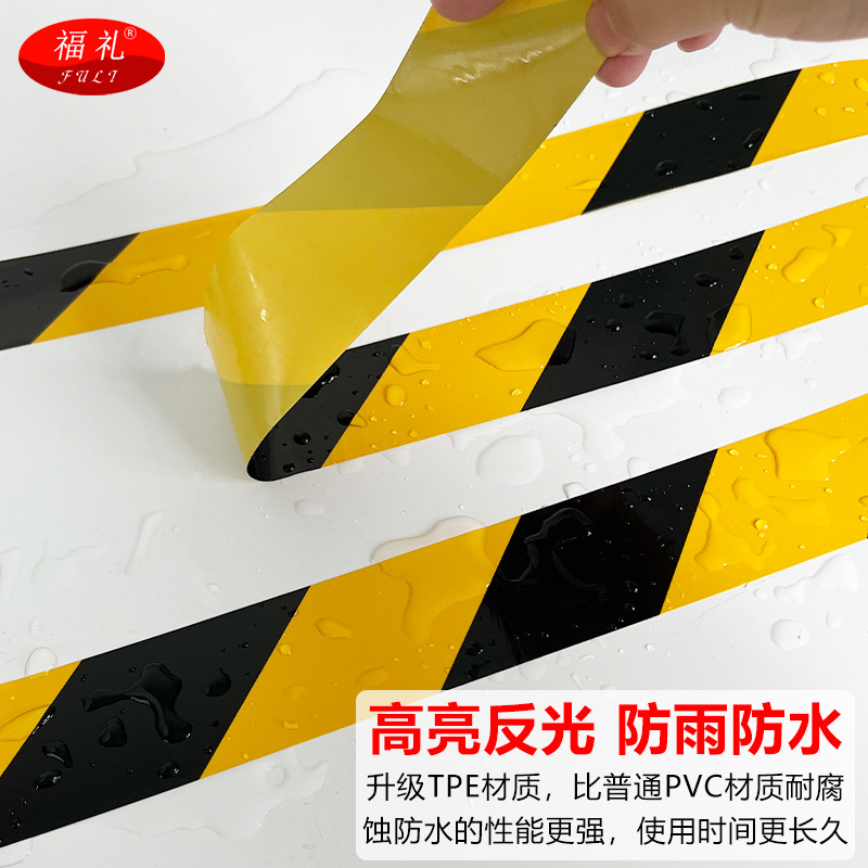 工厂批发黑黄TPE警示胶带 警戒警示地标双色反光胶带33米地面胶带
