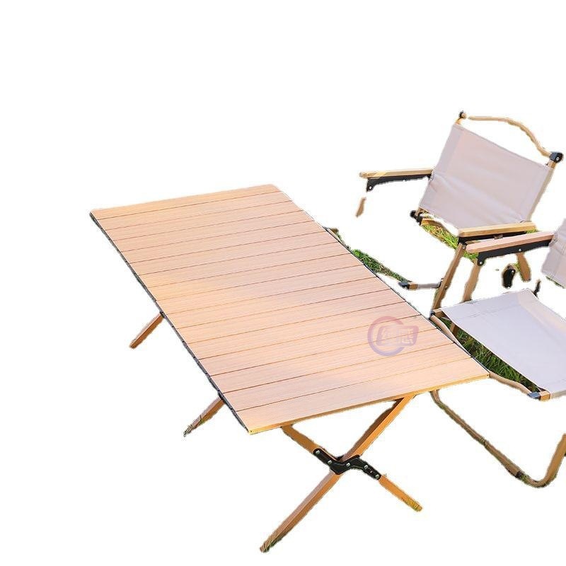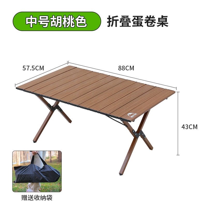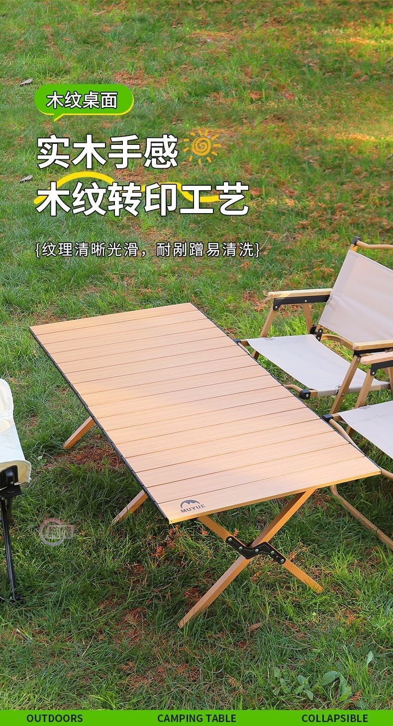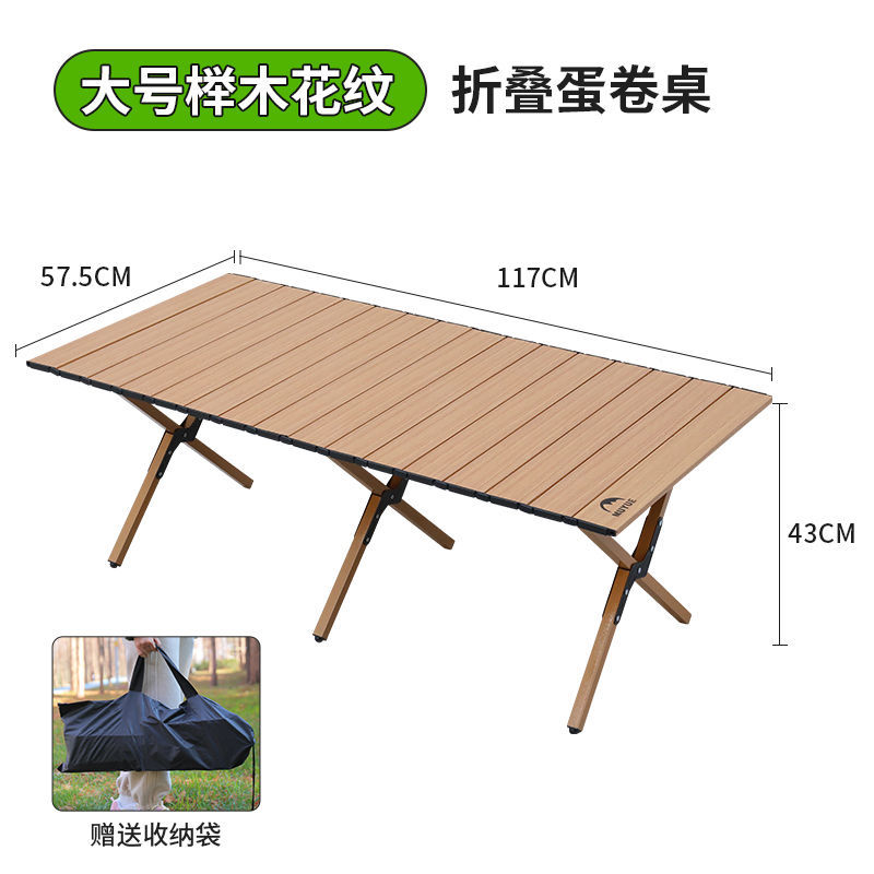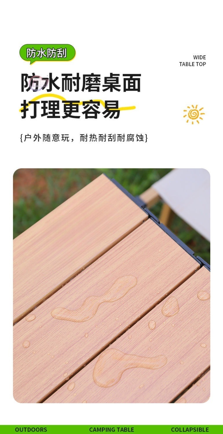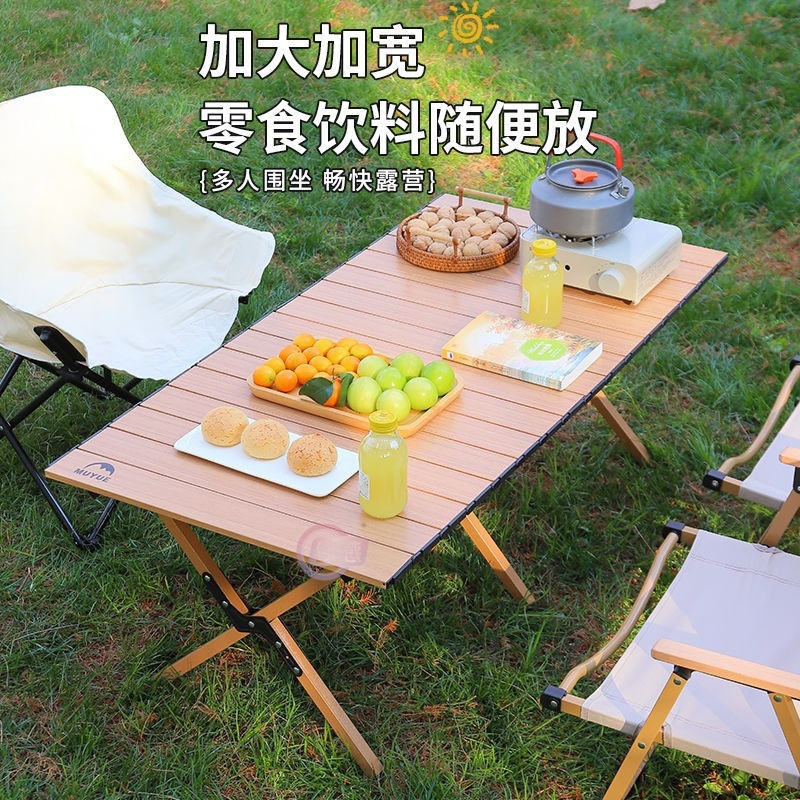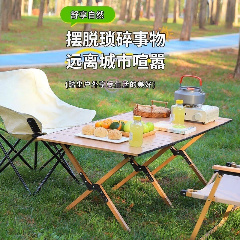 野炊木纹野餐桌户外折叠桌蛋卷桌便携式超轻露营桌子野营桌椅轻便
