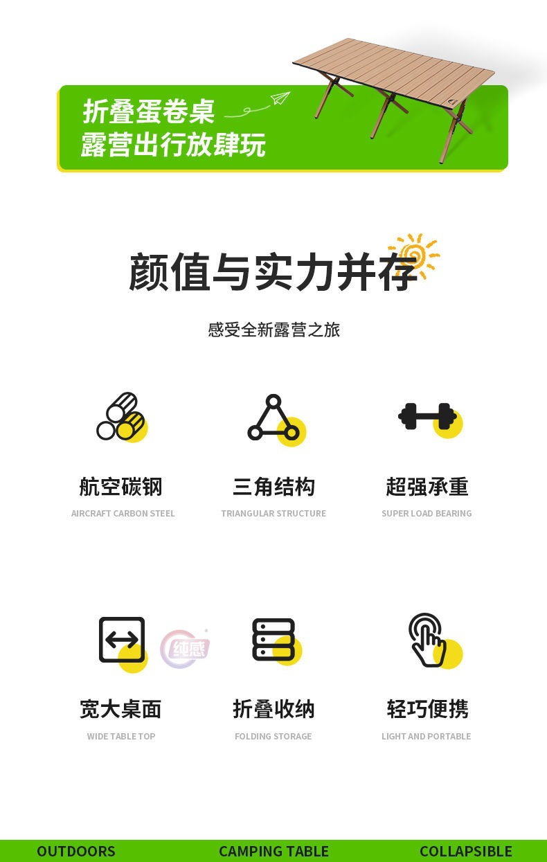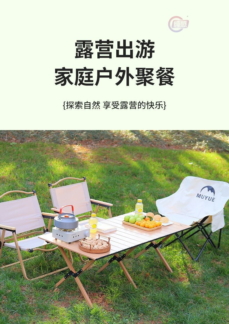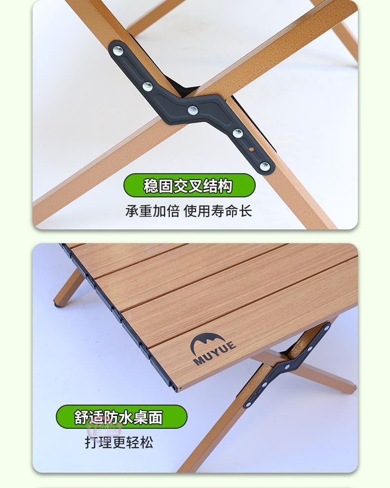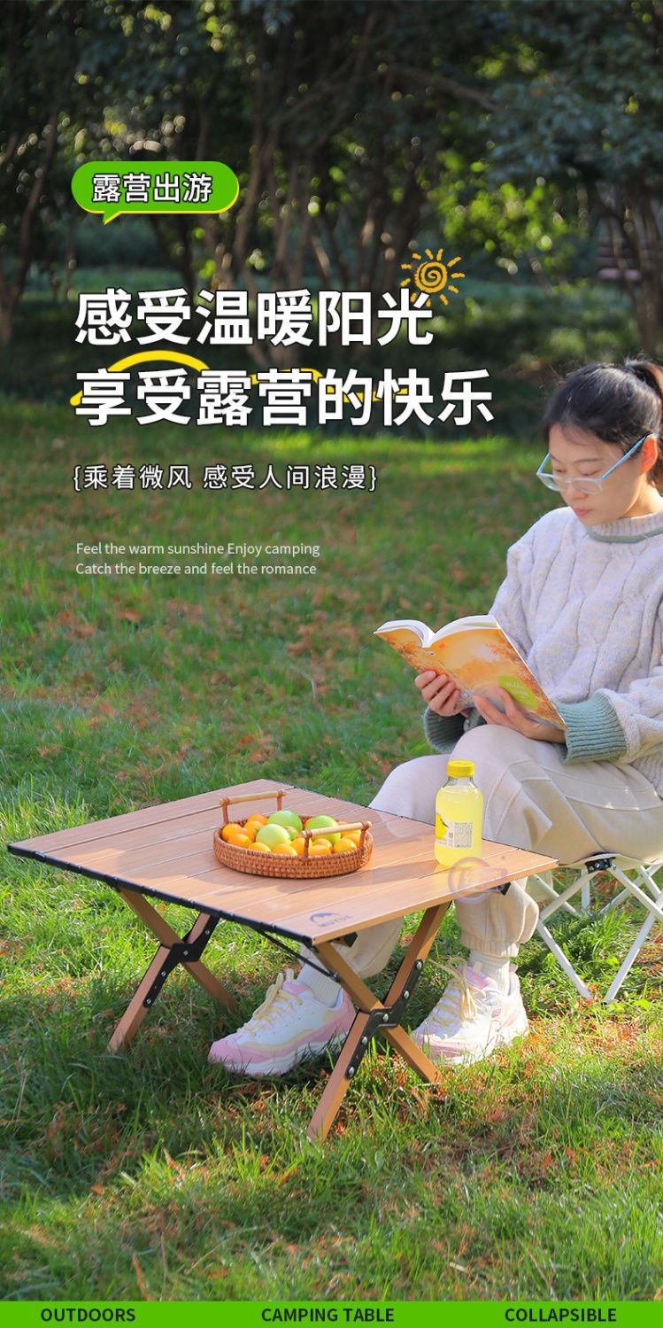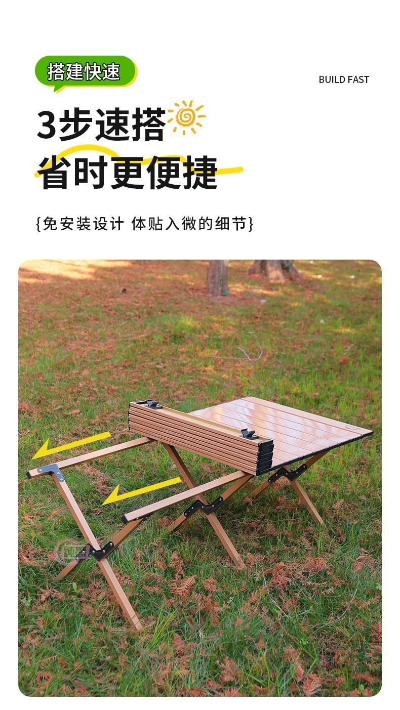 野炊木纹野餐桌户外折叠桌蛋卷桌便携式超轻露营桌子野营桌椅轻便