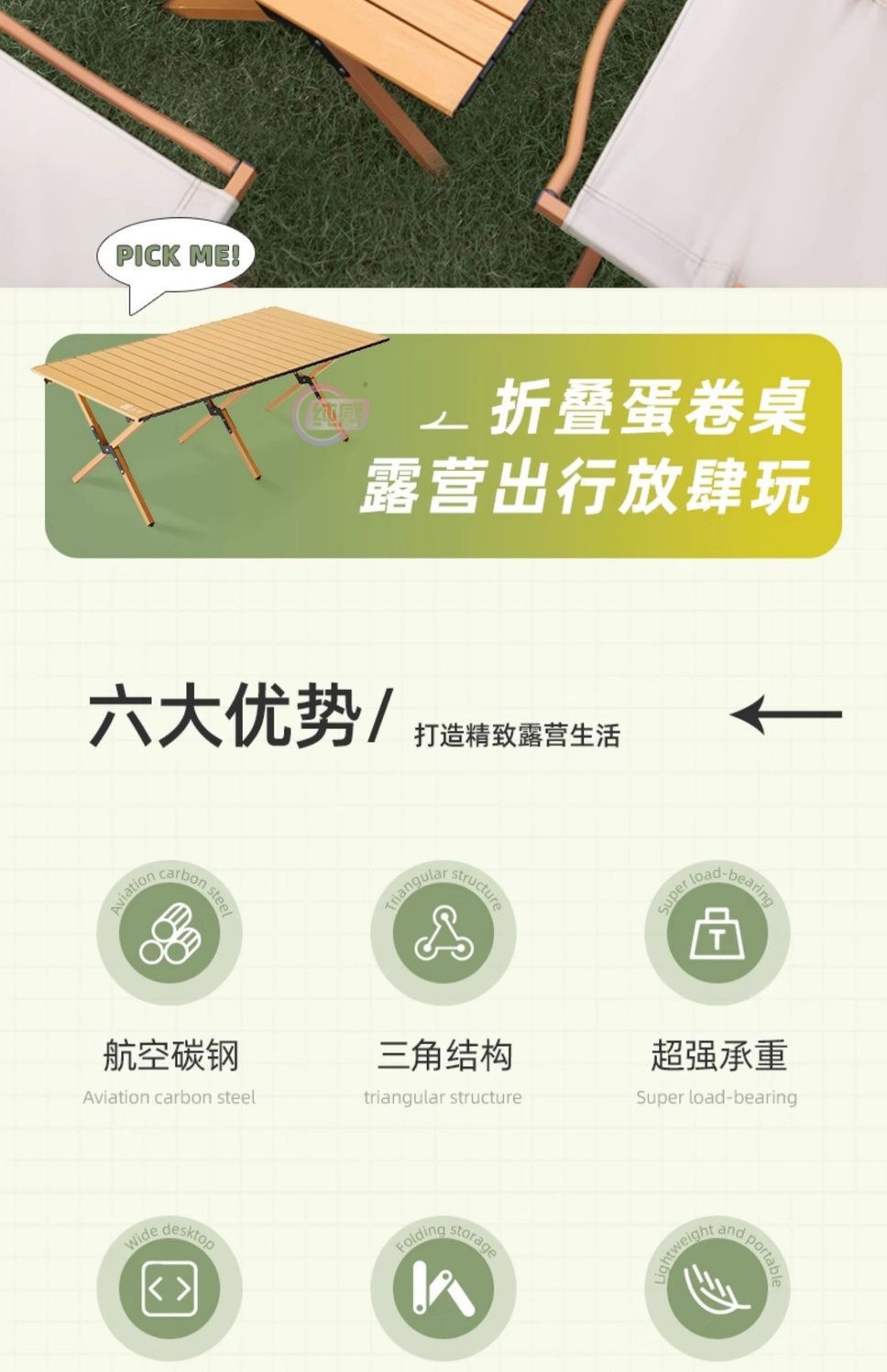 铝合金蛋卷桌便携式品装备全套装野炊野餐露营桌椅用户外折叠桌子