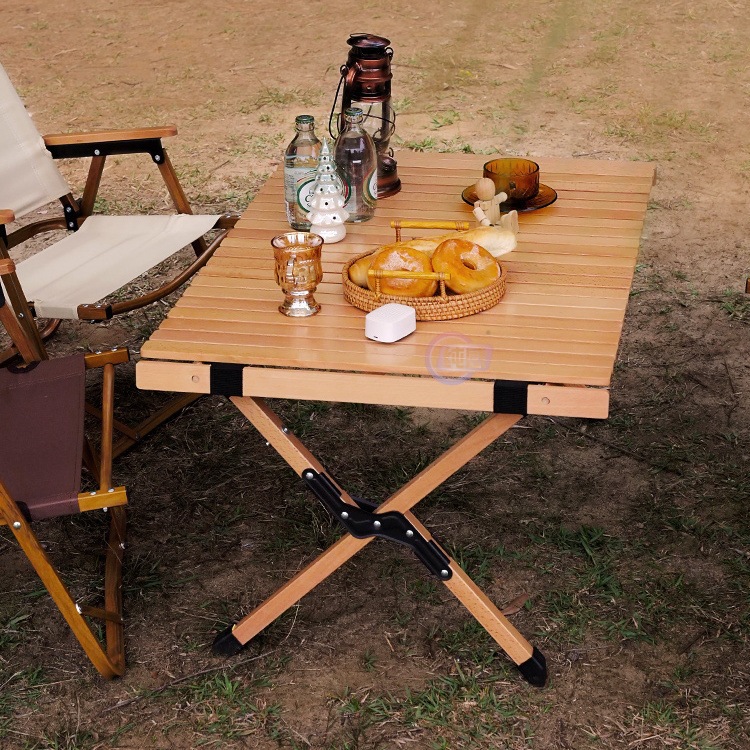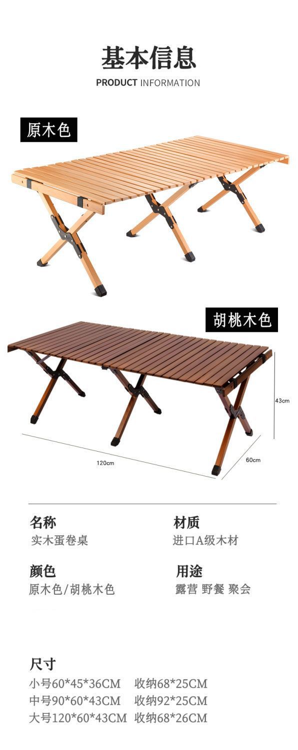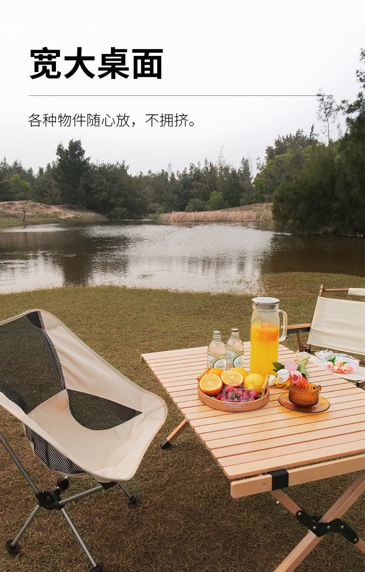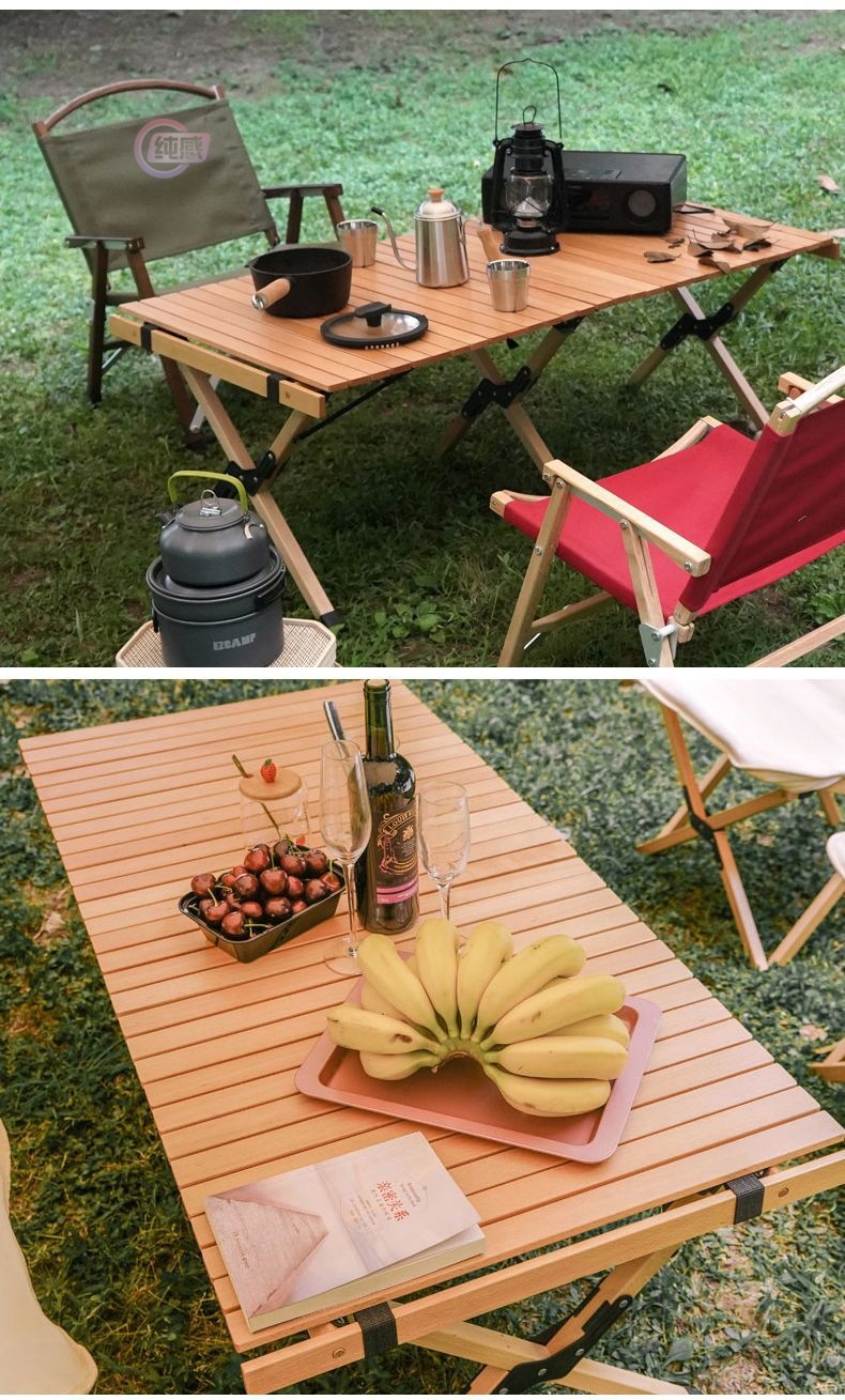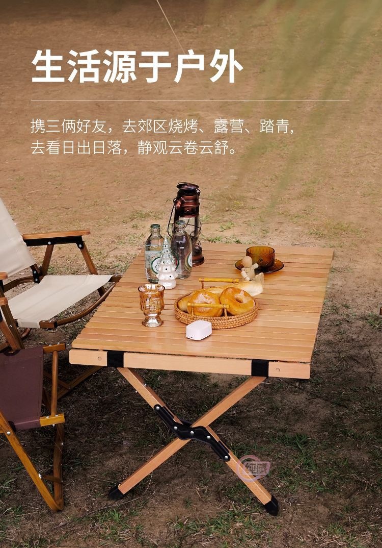 露营装备休闲野餐烧烤餐桌简约风户外蛋卷桌实木可折叠桌椅便携式