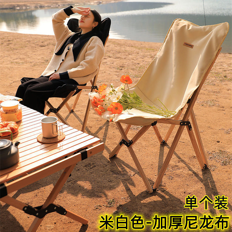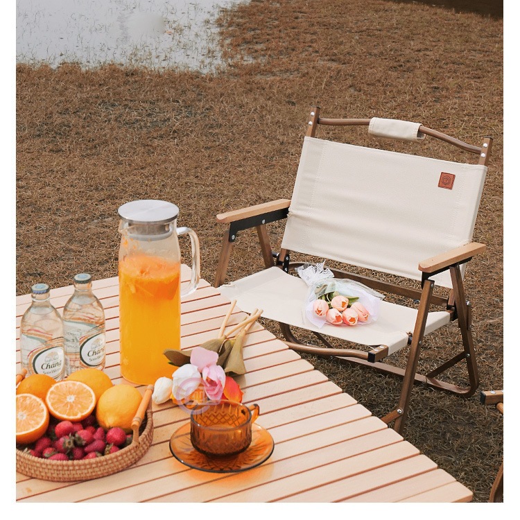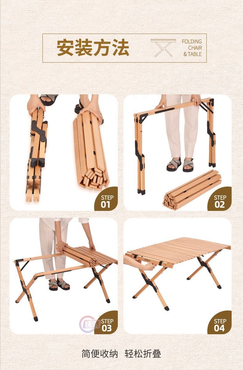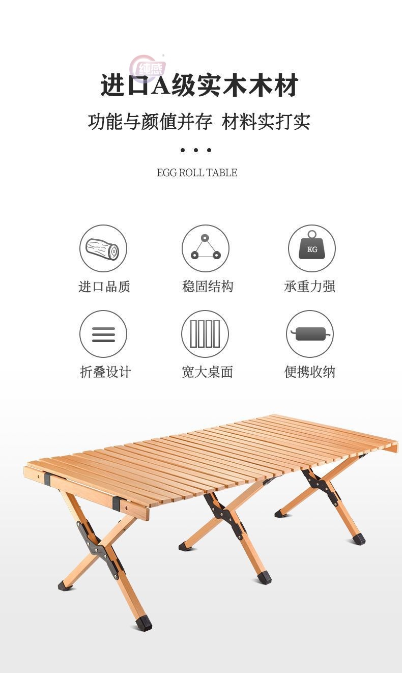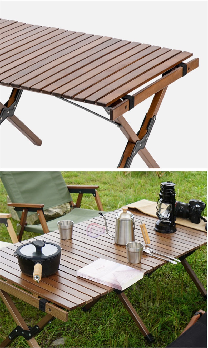 露营装备休闲野餐烧烤餐桌简约风户外蛋卷桌实木可折叠桌椅便携式