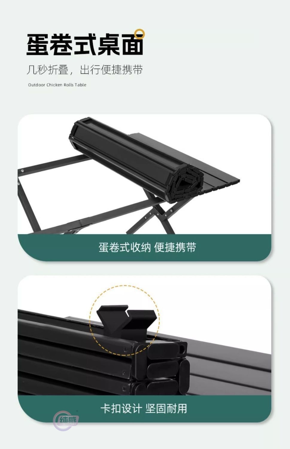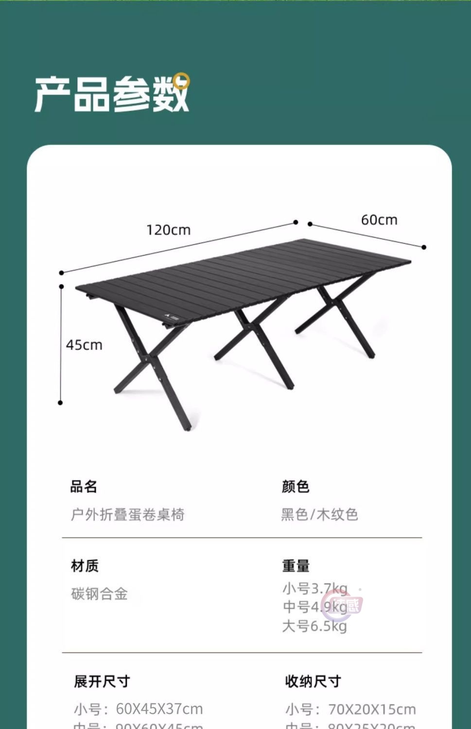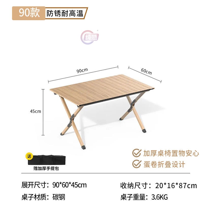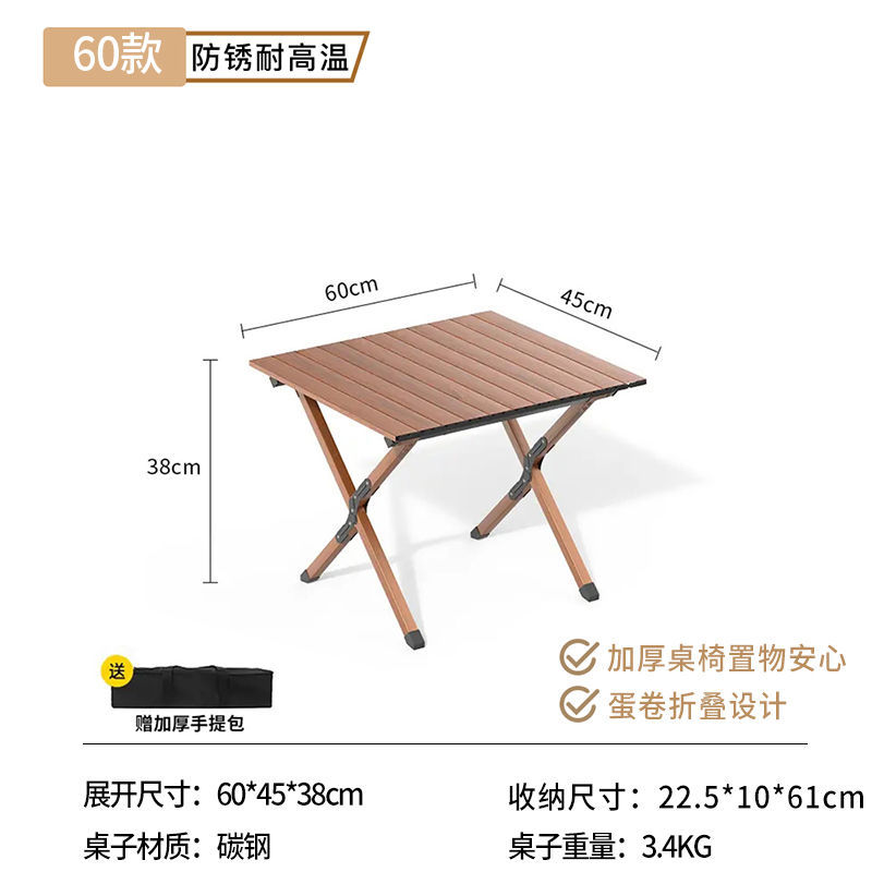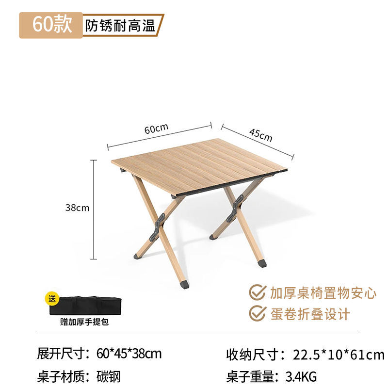 轻便野炊木纹野餐桌户外折叠桌蛋卷桌便携式超轻露营桌子野营桌椅