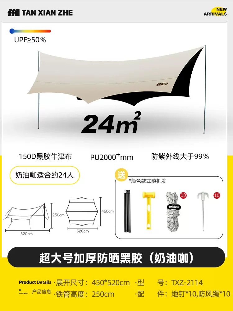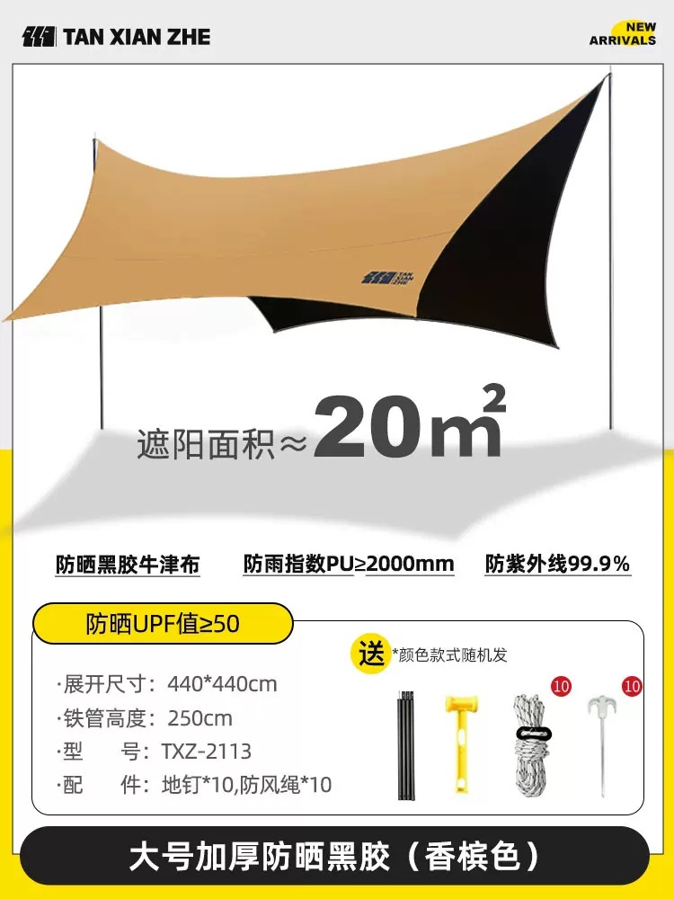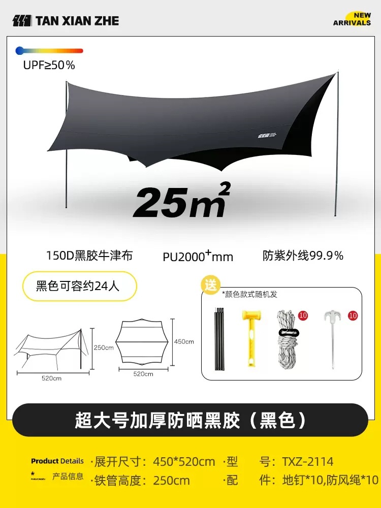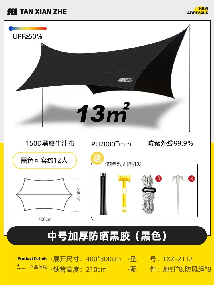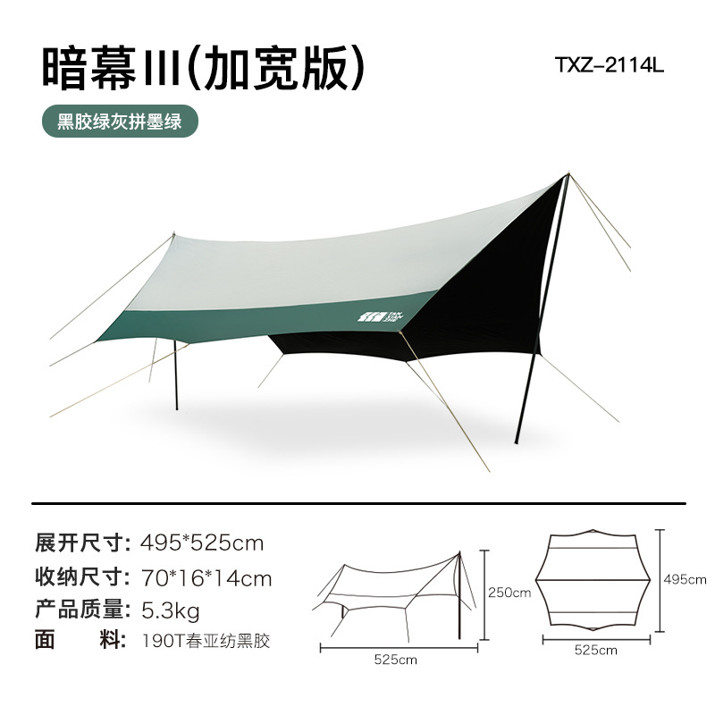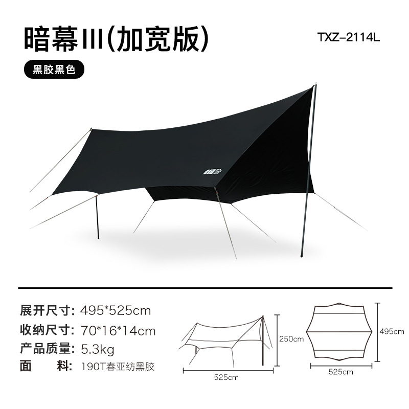 探险者天幕帐篷户外露营遮阳棚便携式野餐防雨防晒凉棚野营黑胶
