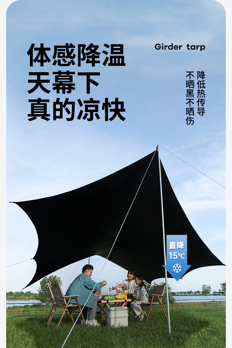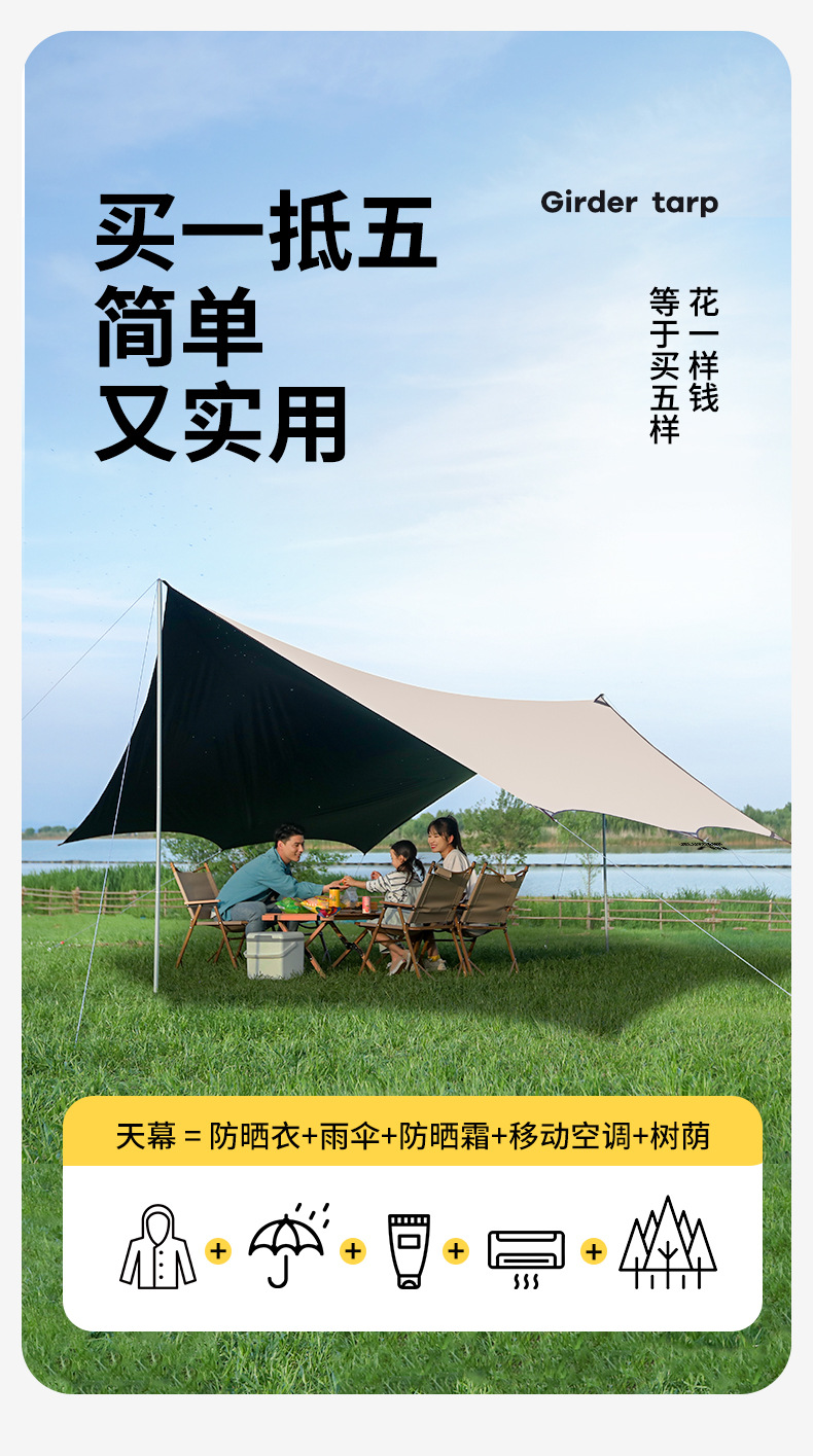 工厂现货天幕户外露营帐篷遮阳棚遮阳布超轻野营野餐防雨防晒凉棚