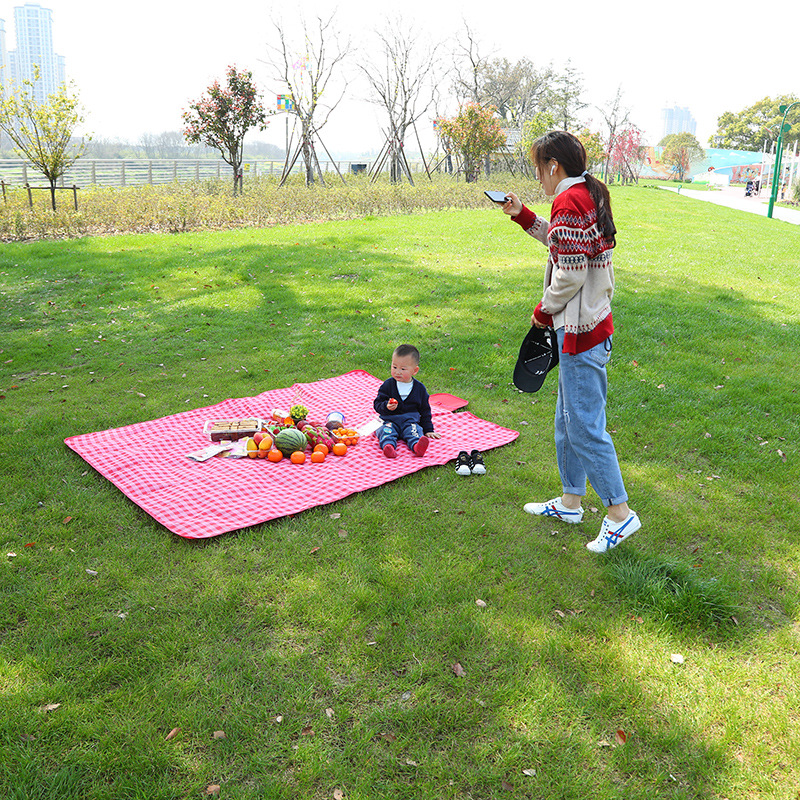 户外野餐垫加厚防潮垫郊游地垫便携式野炊垫600D牛津格子布野餐布