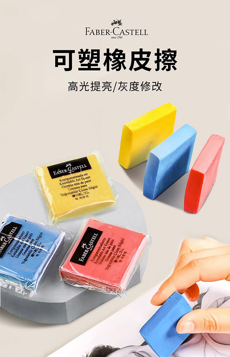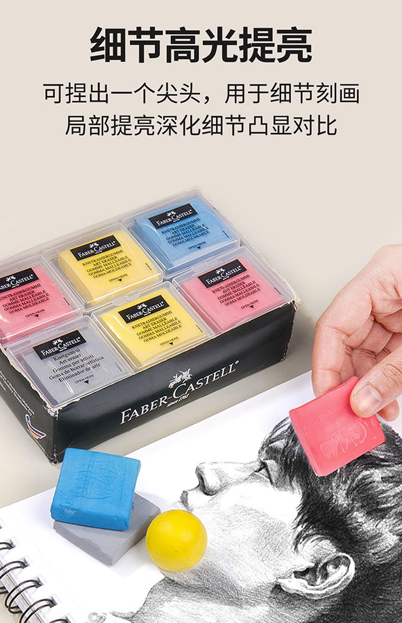 德国辉柏嘉可塑橡皮学生彩色素描画画学习文具儿童美术用品软橡皮