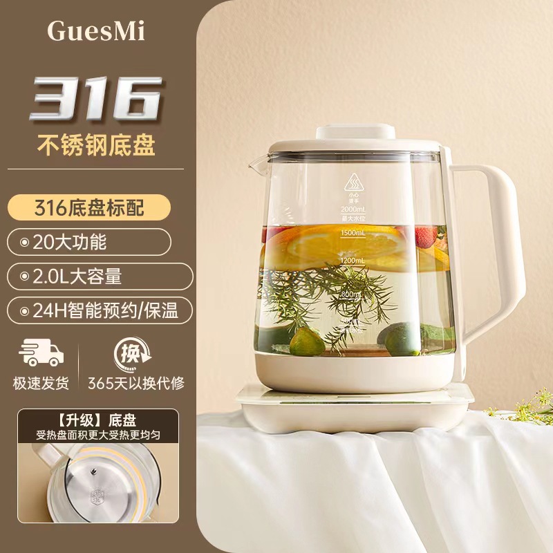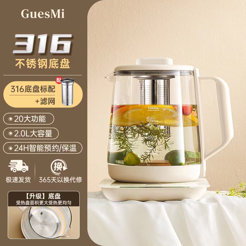 GUESMI现货养生壶家用全自动多功能煮水壶小型煎药壶玻璃煮茶器