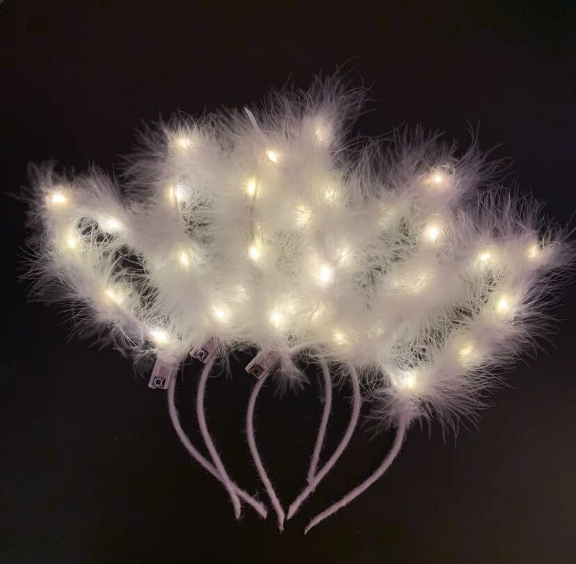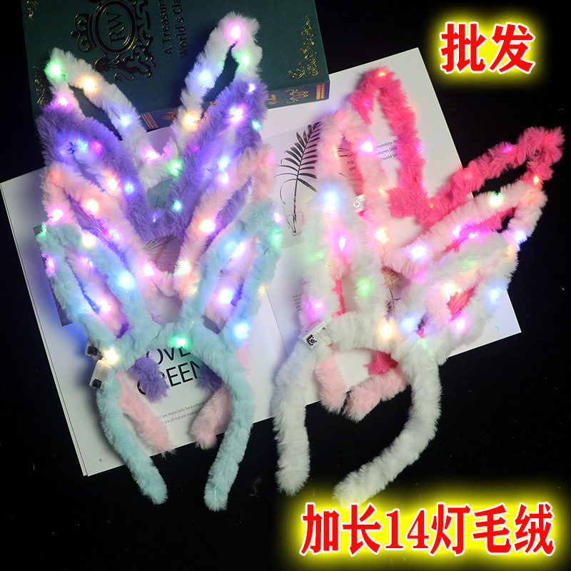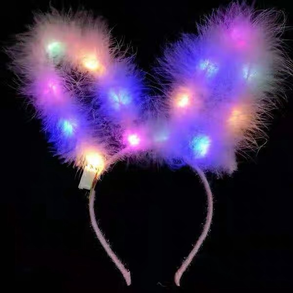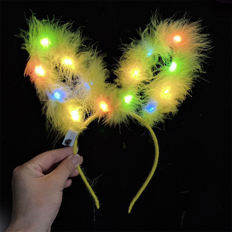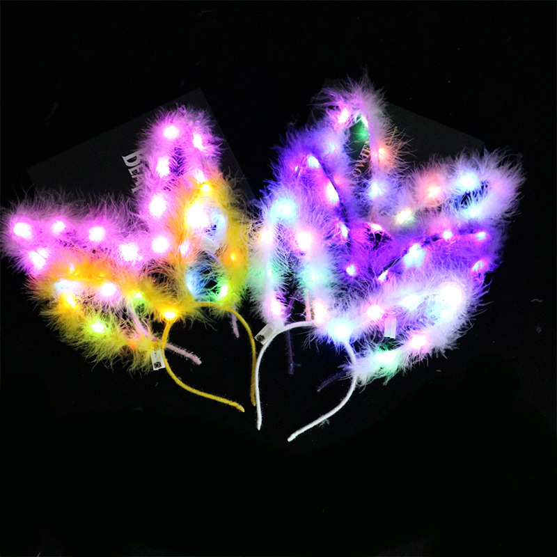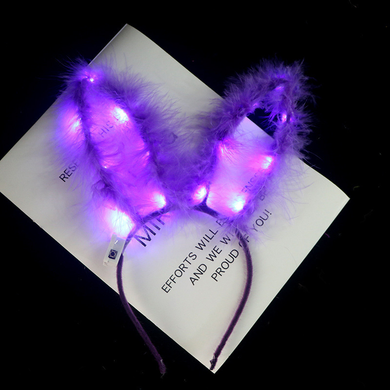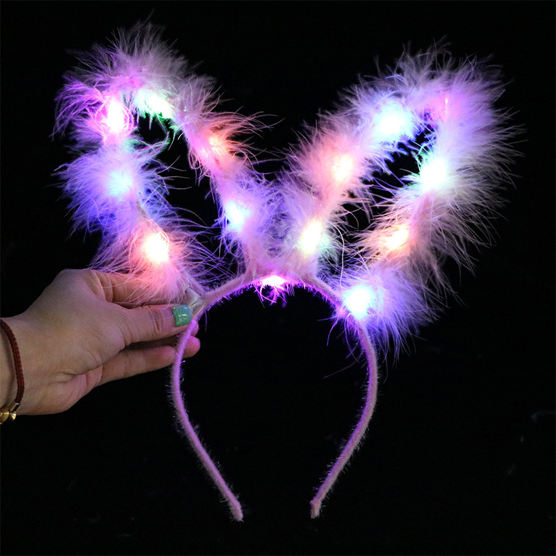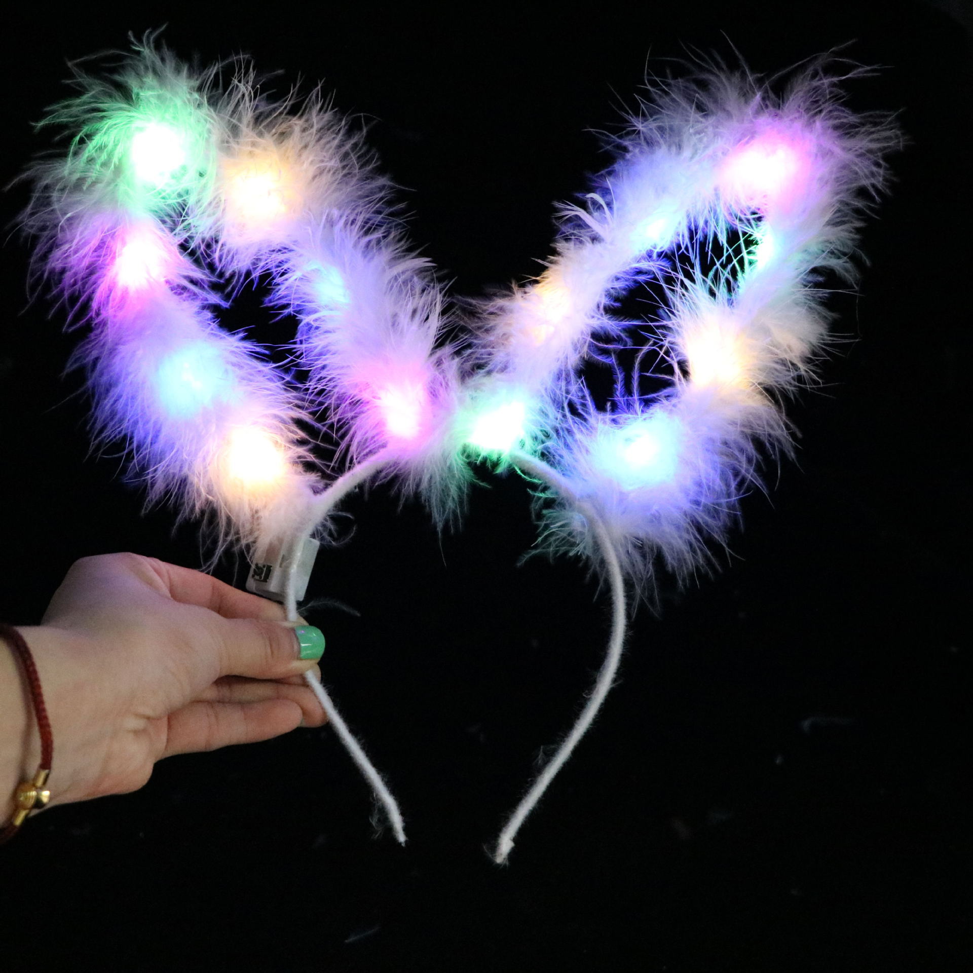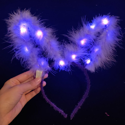 新款发亮羽毛兔耳朵发箍毛绒狐狸耳朵摆摊发光玩具夜市摆地摊批发