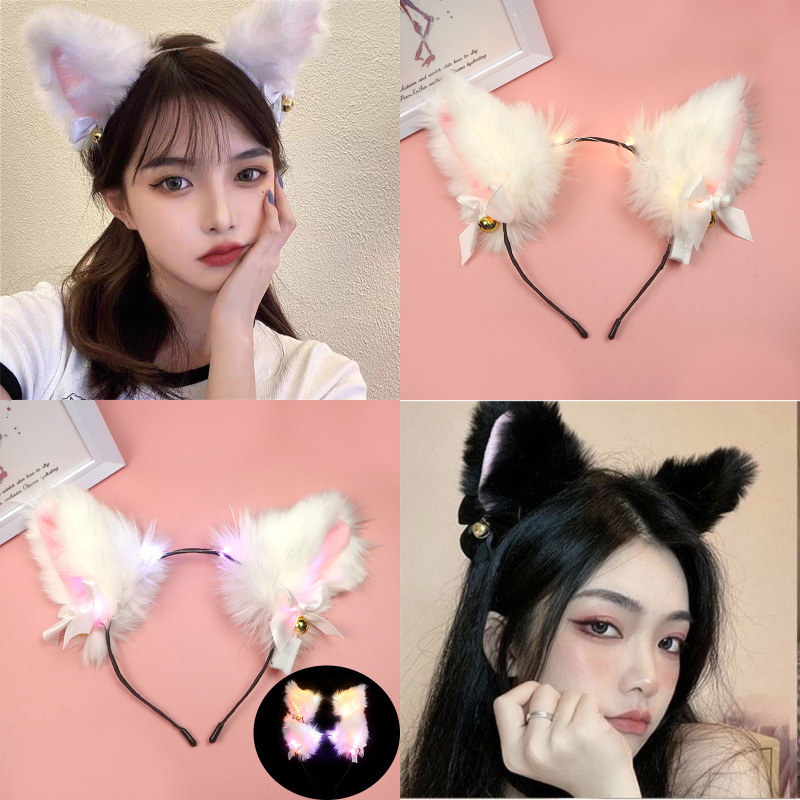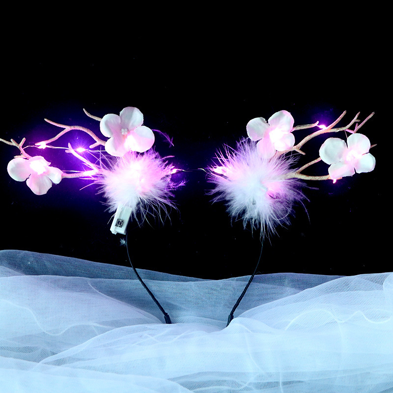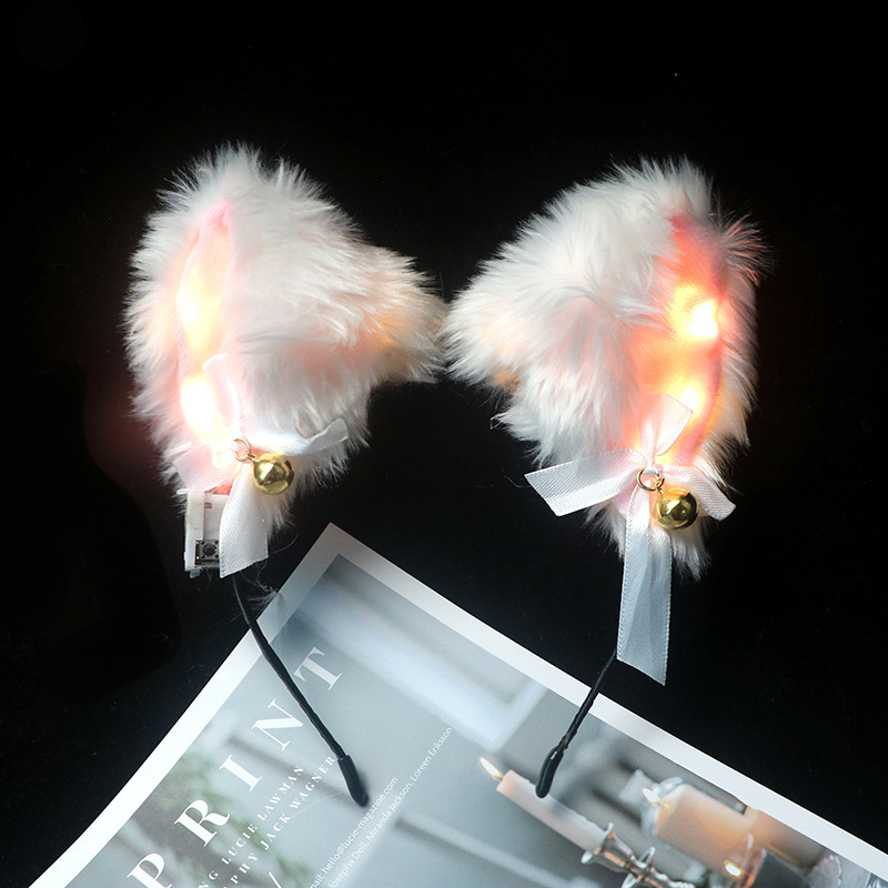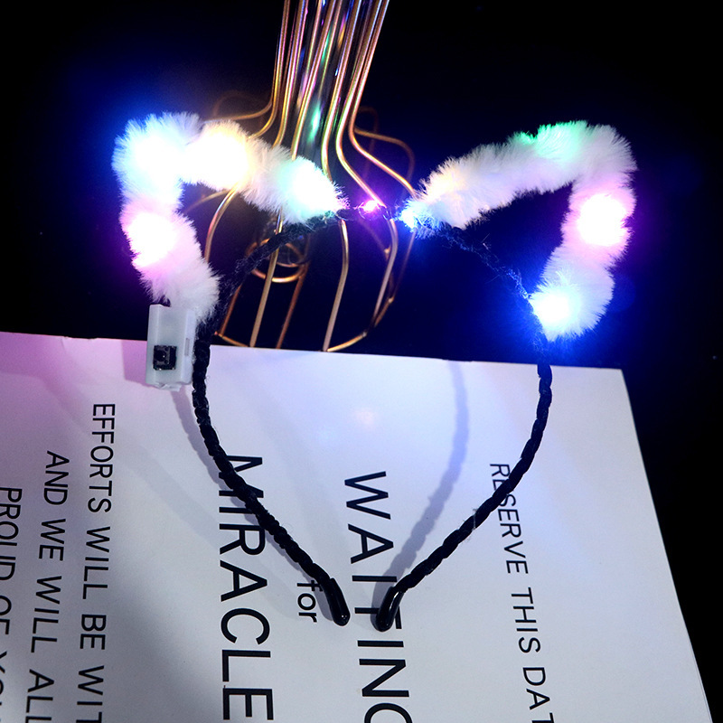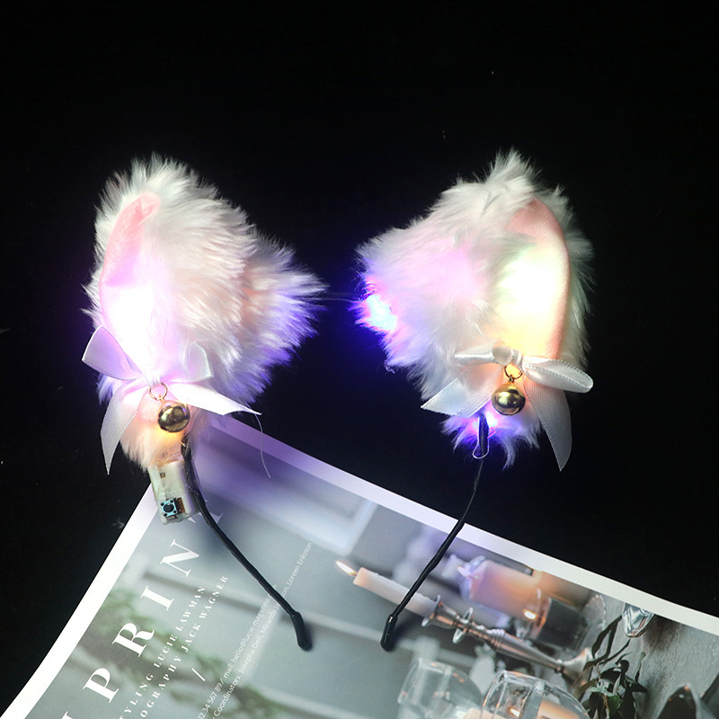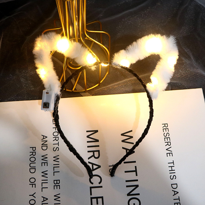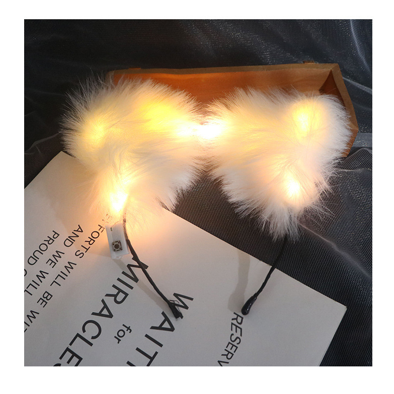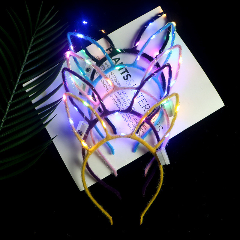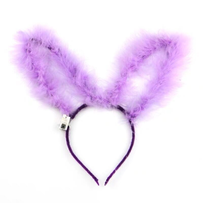 新款发亮羽毛兔耳朵发箍毛绒狐狸耳朵摆摊发光玩具夜市摆地摊批发