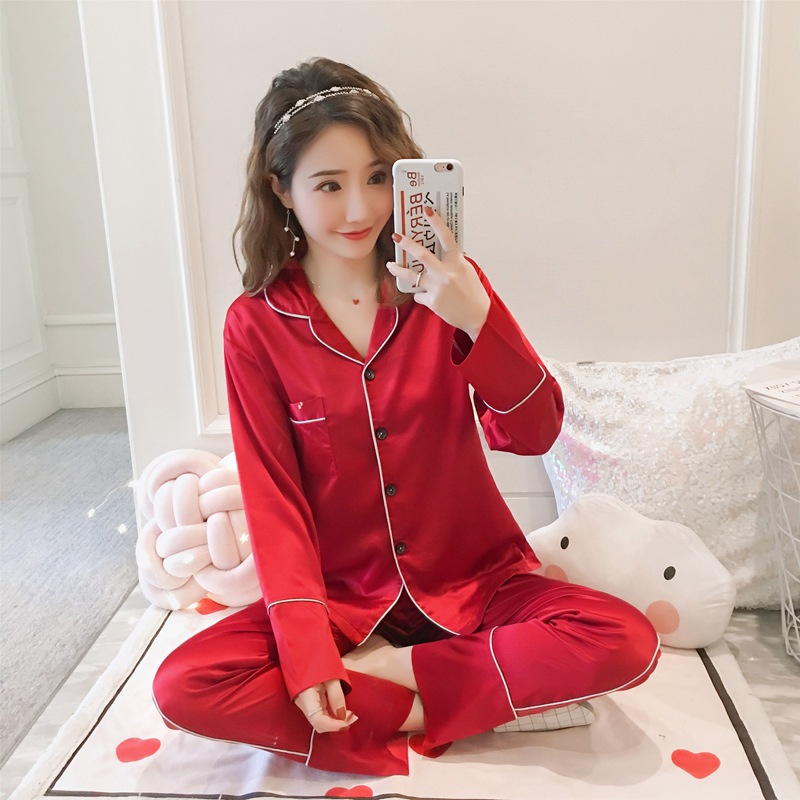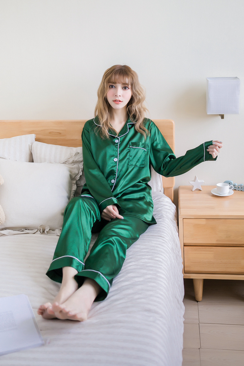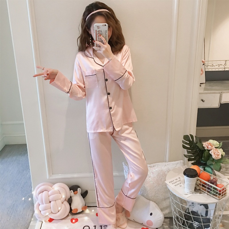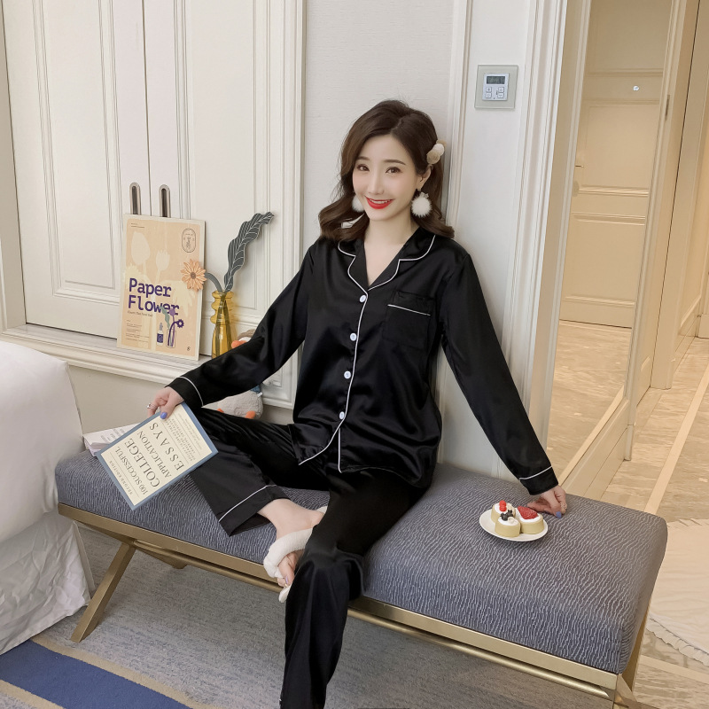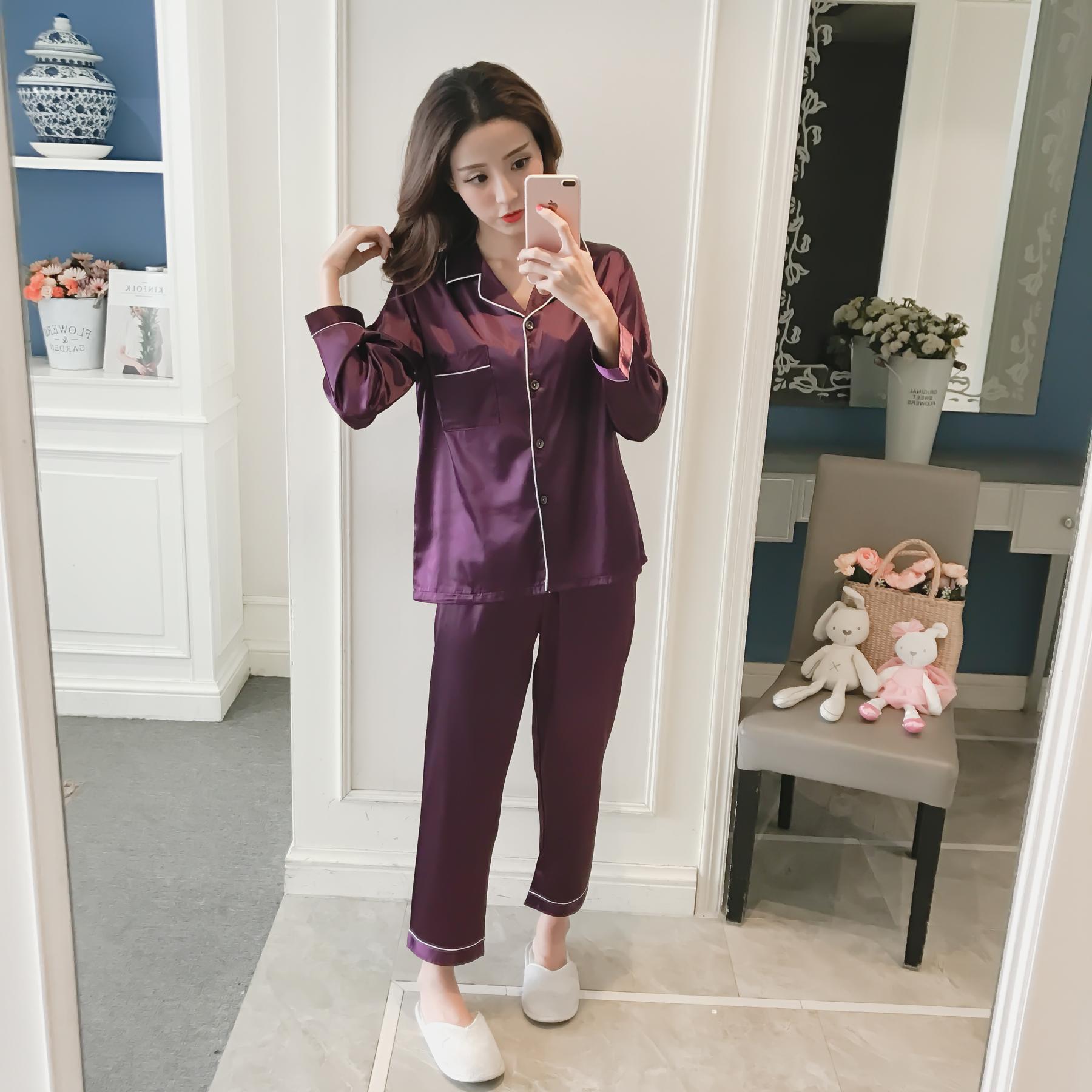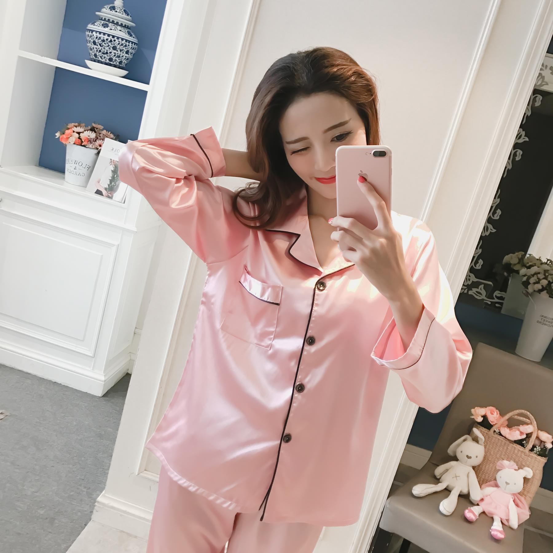 维秘秋冬季仿真丝睡衣女士长袖日韩版丝绸宽松睡衣家居服两件套装
