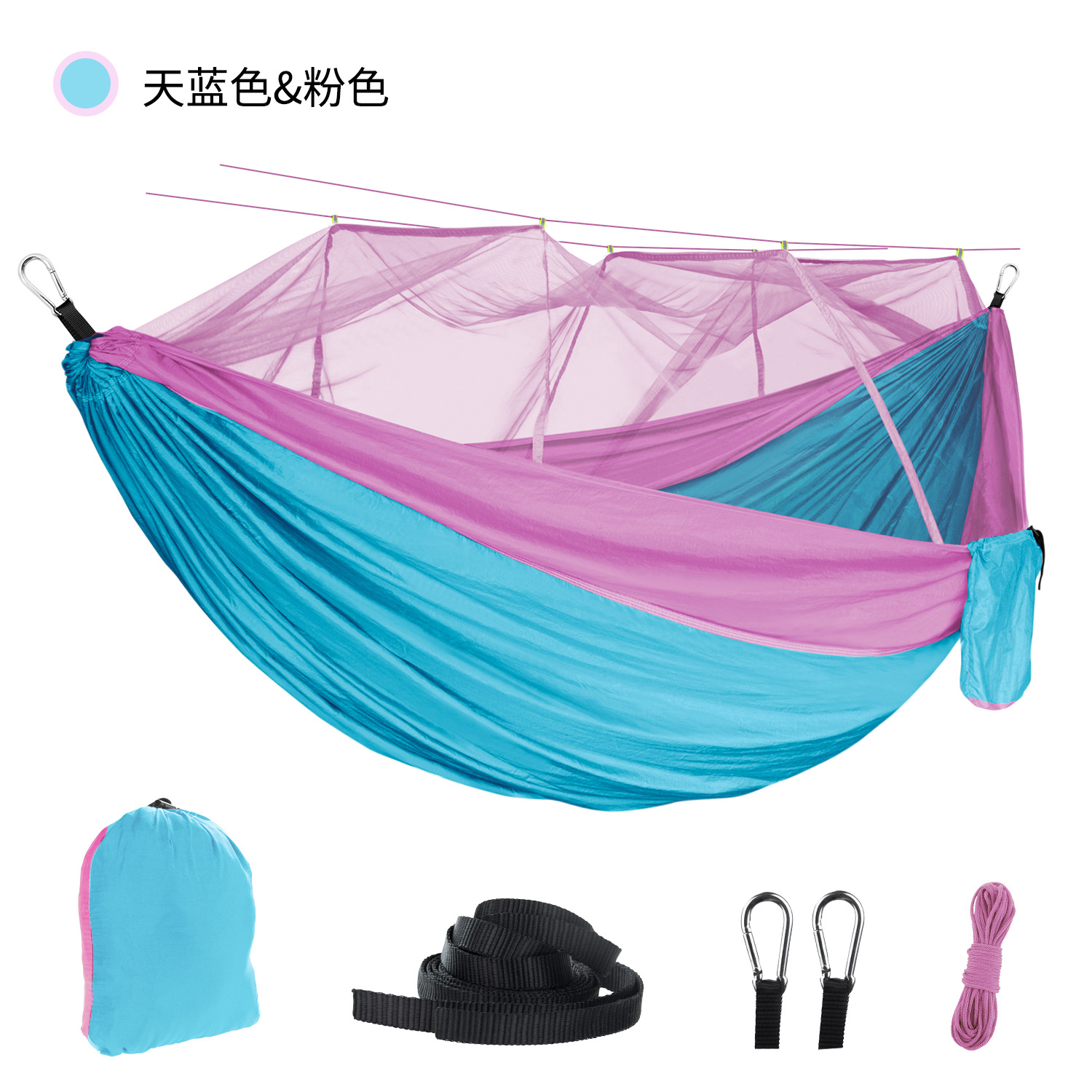 蚊帐吊床户外防蚊露营吊床带蚊帐210T降落伞布加密网纱尼龙吊床