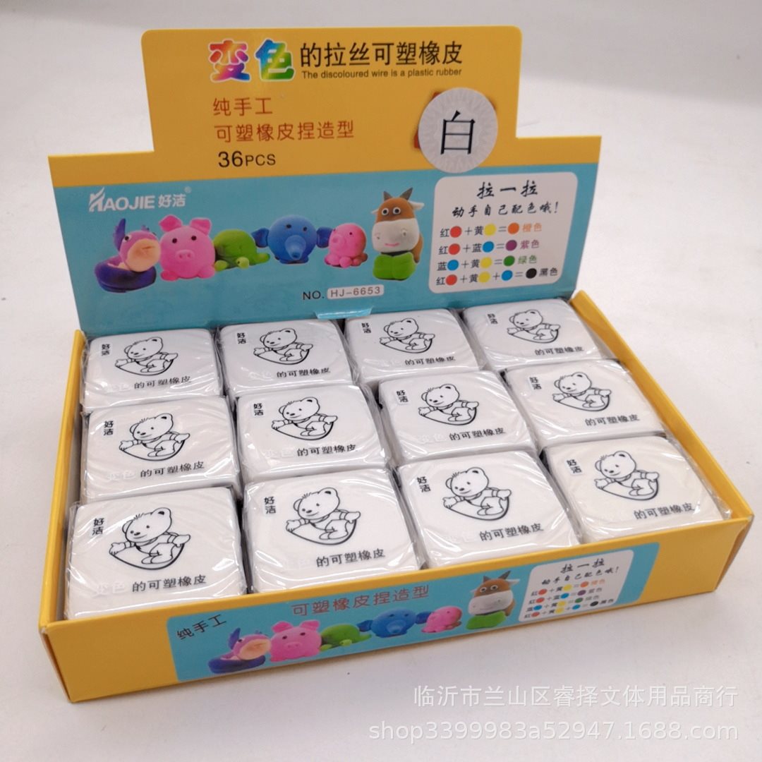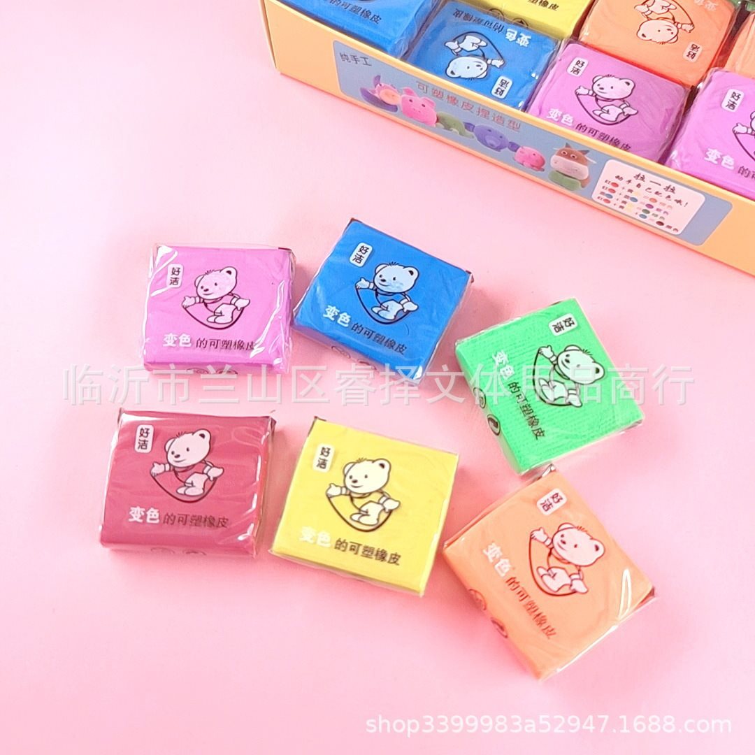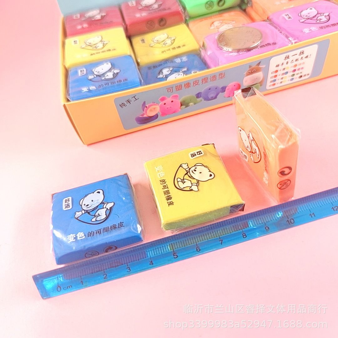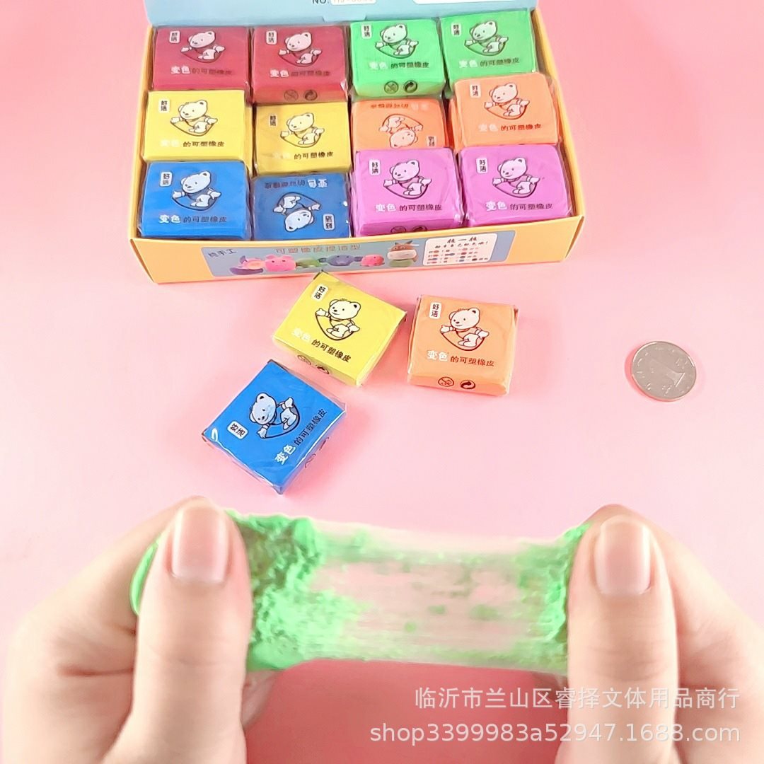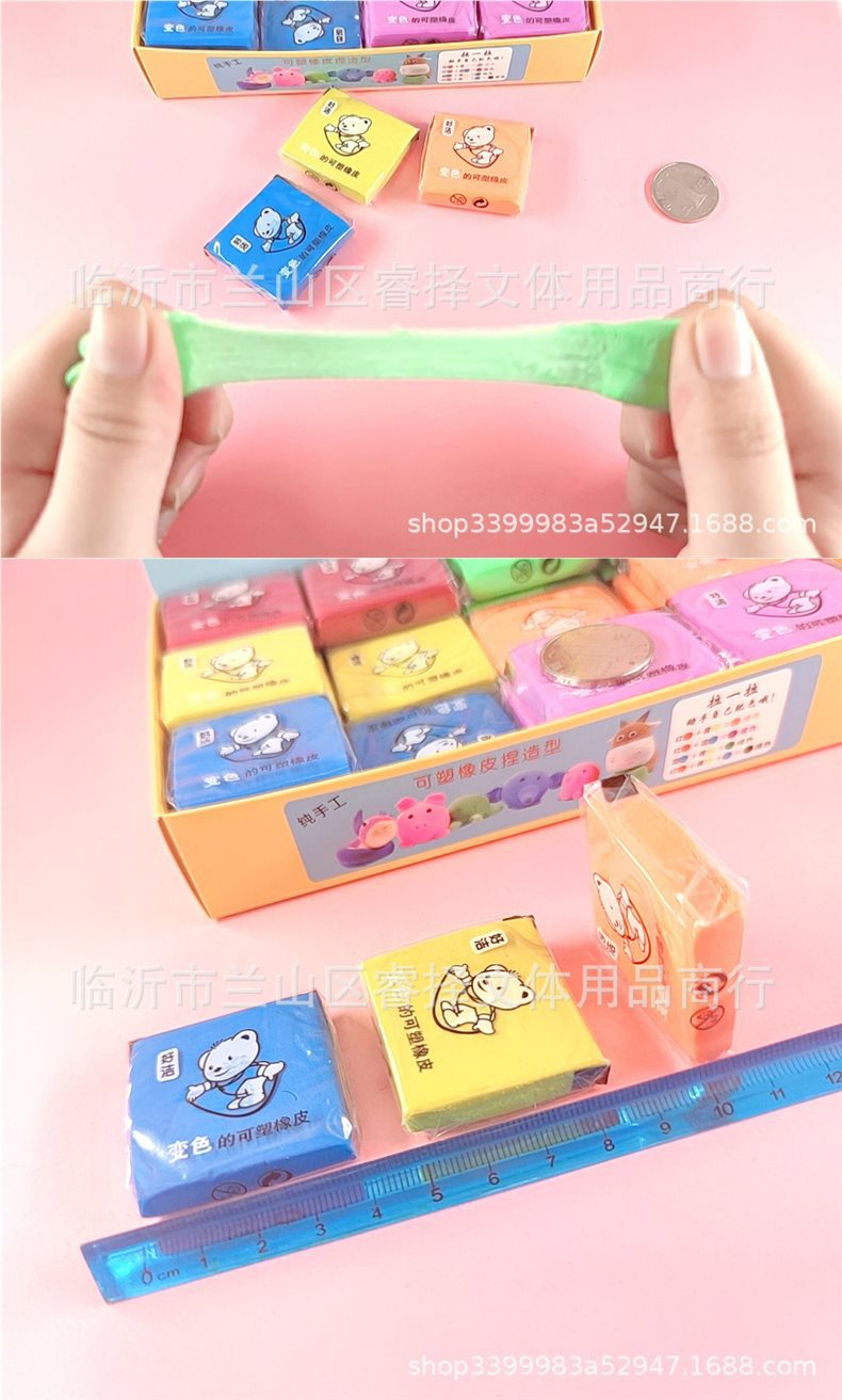 拉丝橡皮可塑橡皮 变色捏塑造型拉丝素描彩色橡皮 儿童创意文具