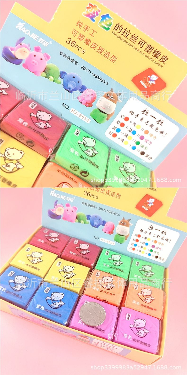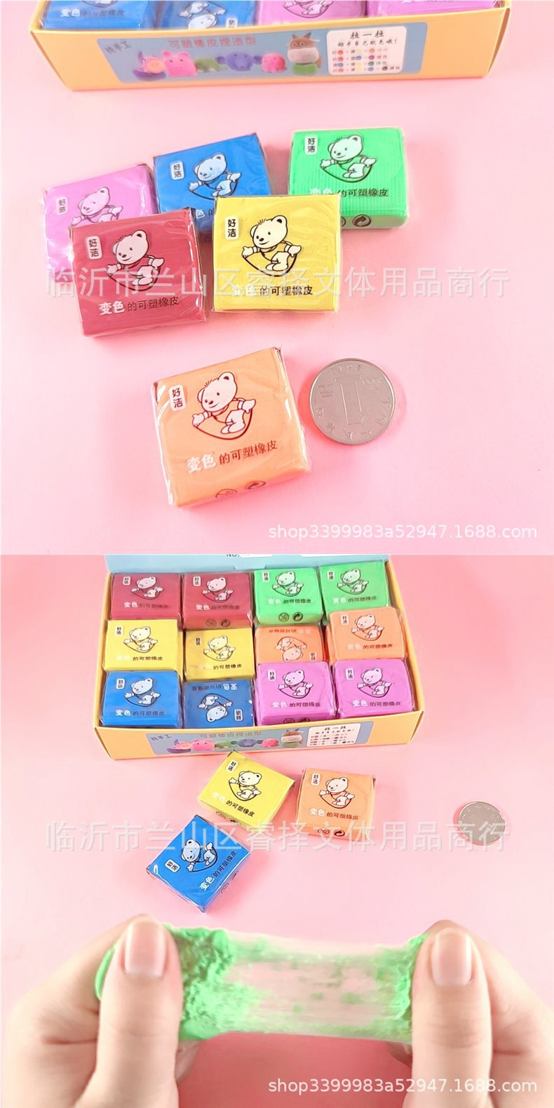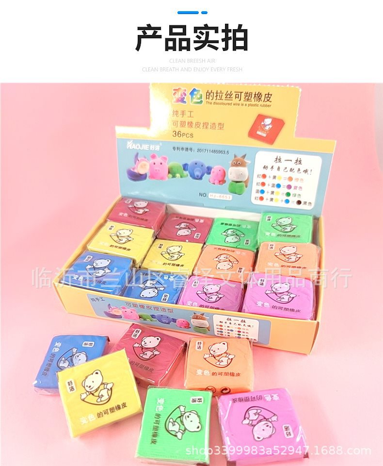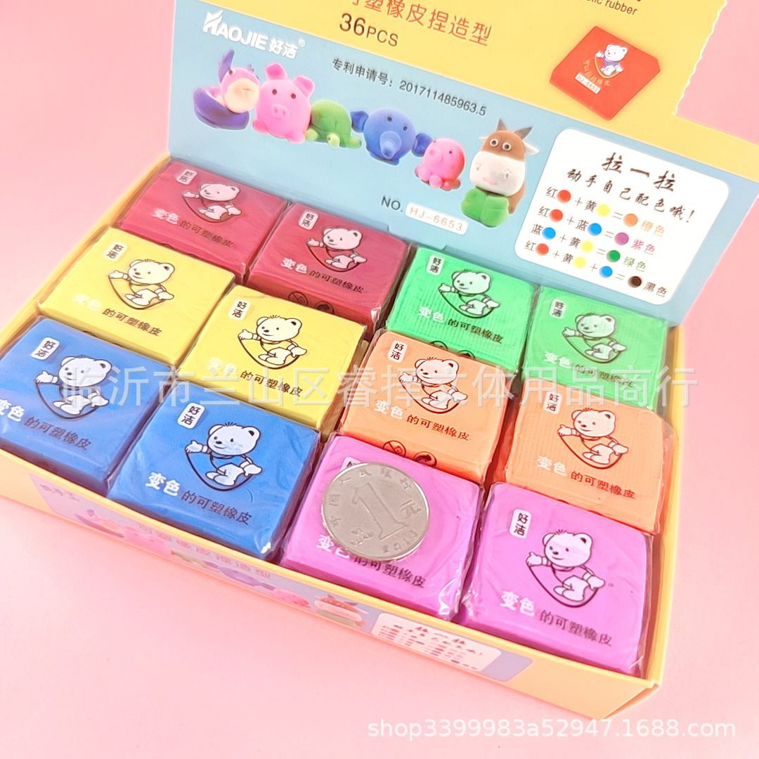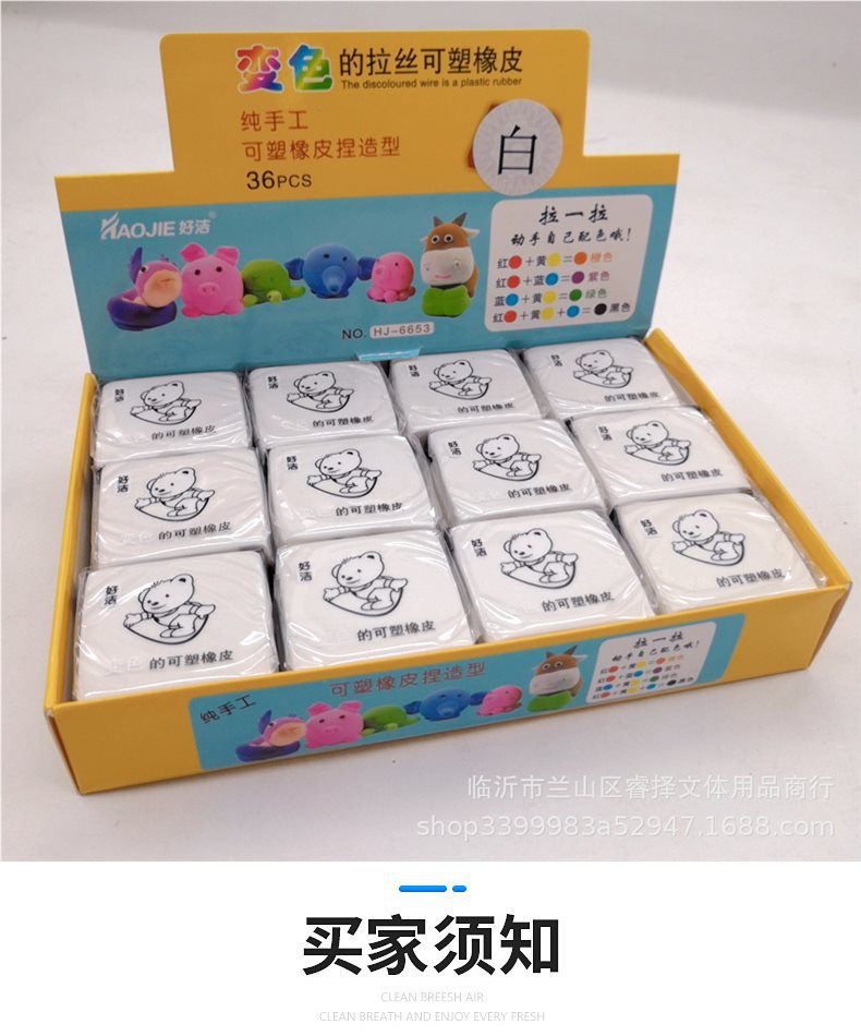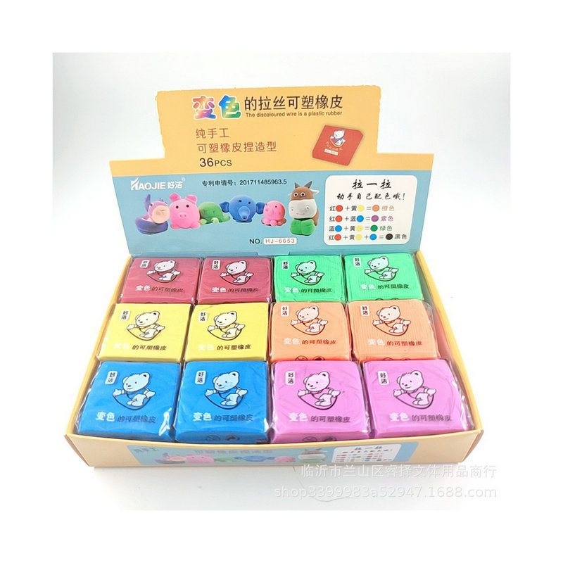 拉丝橡皮可塑橡皮 变色捏塑造型拉丝素描彩色橡皮 儿童创意文具