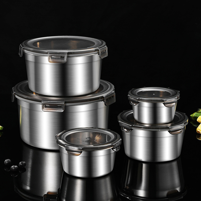 食品级316不锈钢冰箱保鲜盒密封防漏圆形304饭盒野餐盒便当料理盒