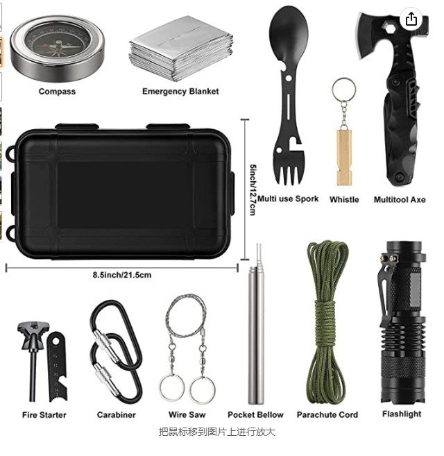 户外求生工具盒应急包多功能套装装备SOS野外生存自救盒生存锯刀