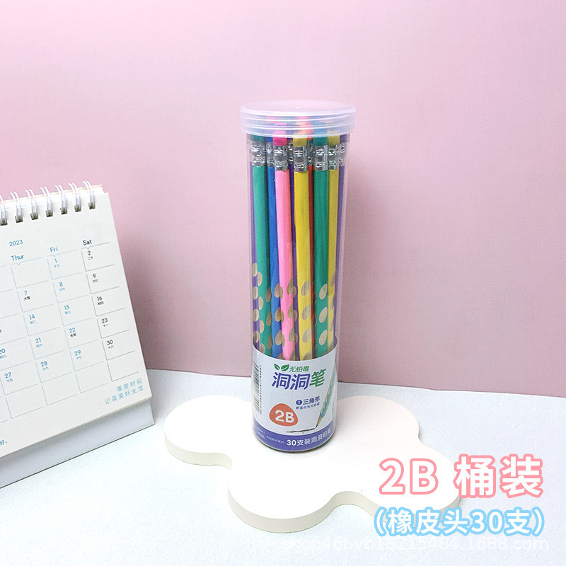 加粗笔芯儿童学生书写握姿矫正HB2B不易折断洞洞笔绘画素描铅笔