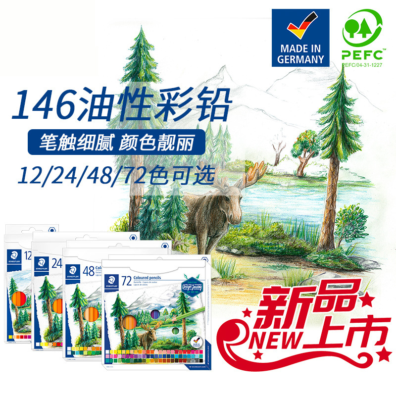 德国STAEDTLER施德楼146油性12色彩色铅笔美术设计手绘儿童涂色笔