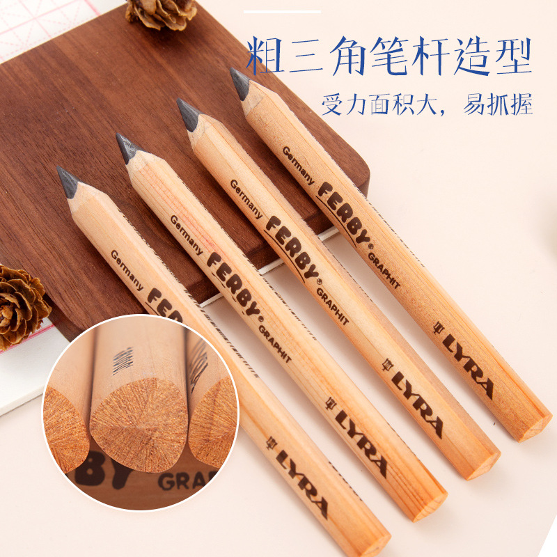 批发德国LYRA艺雅学龄前握笔姿势书写原木短杆三角木质粗杆铅笔