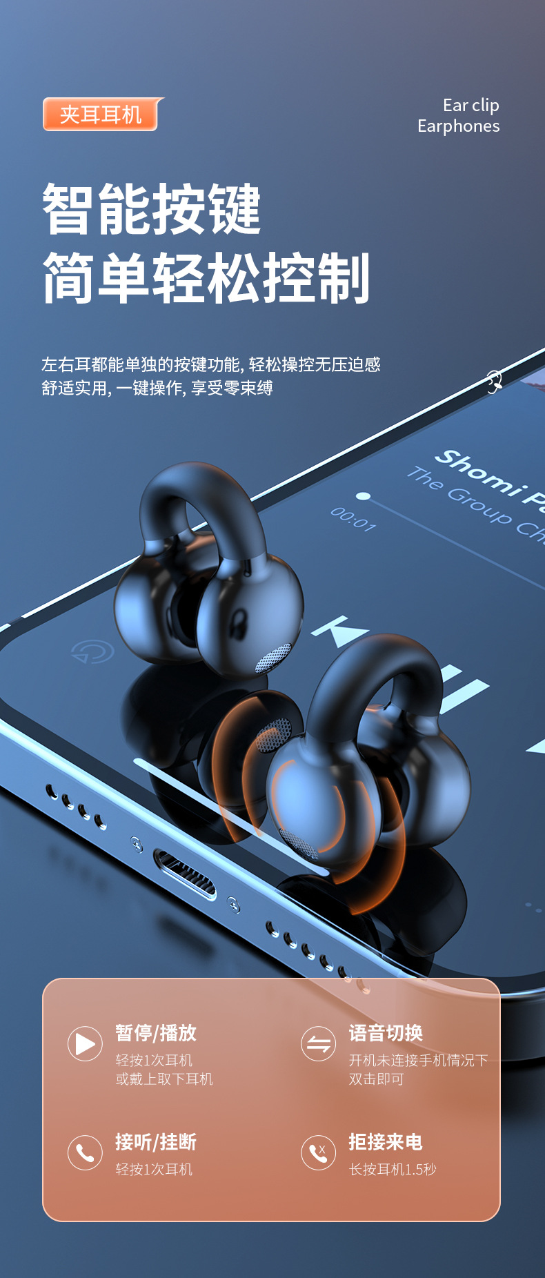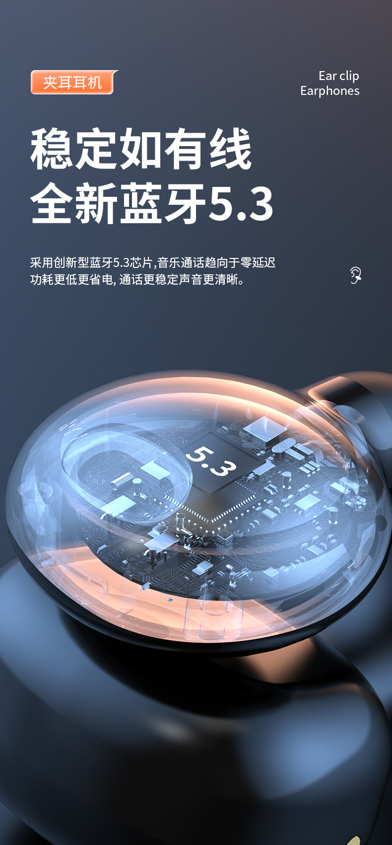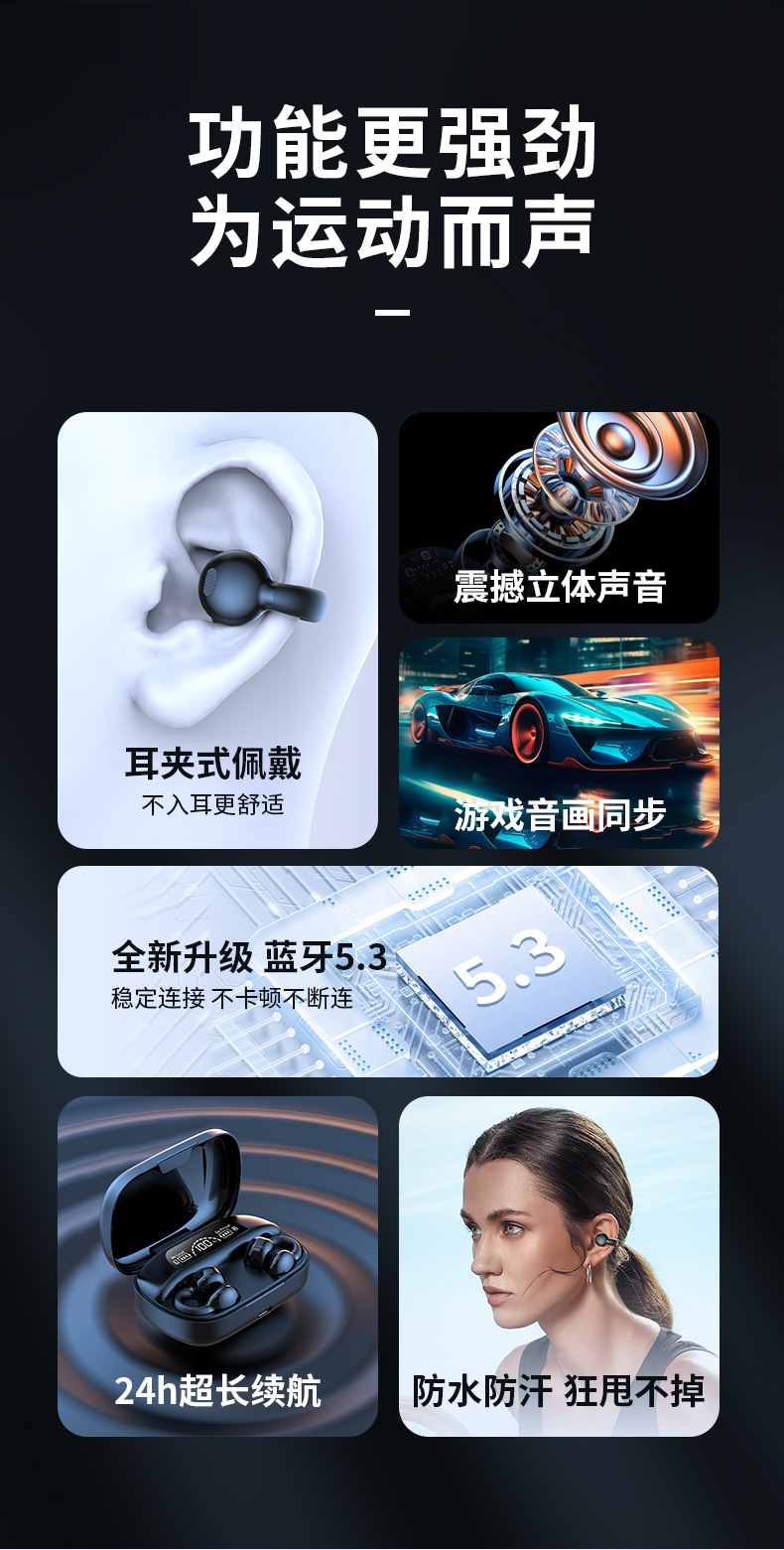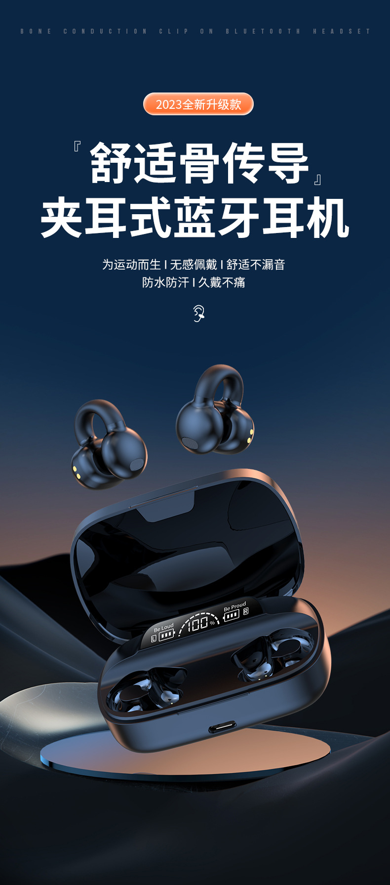 跨境新款Q7蓝牙耳机超长智能数显不入耳夹耳式运动耳机骨传导