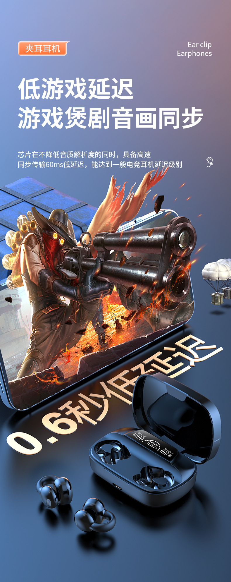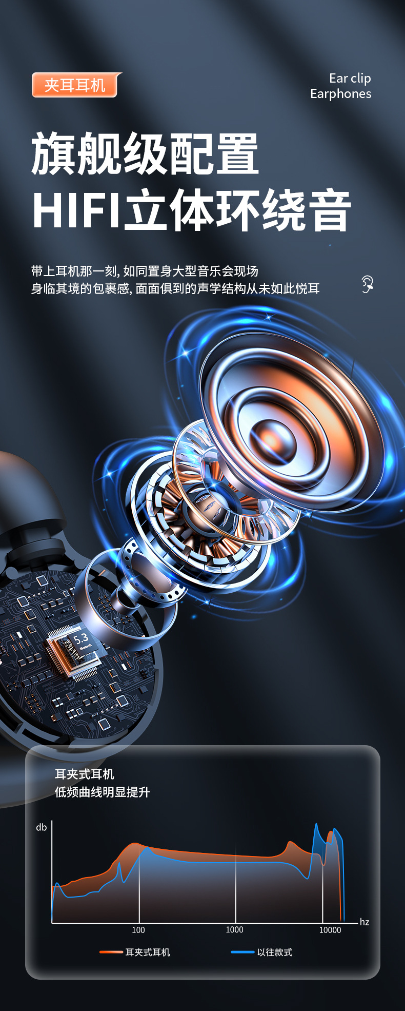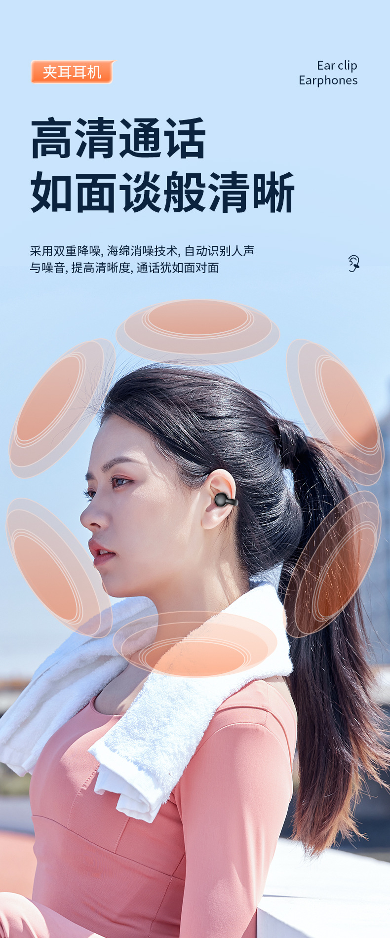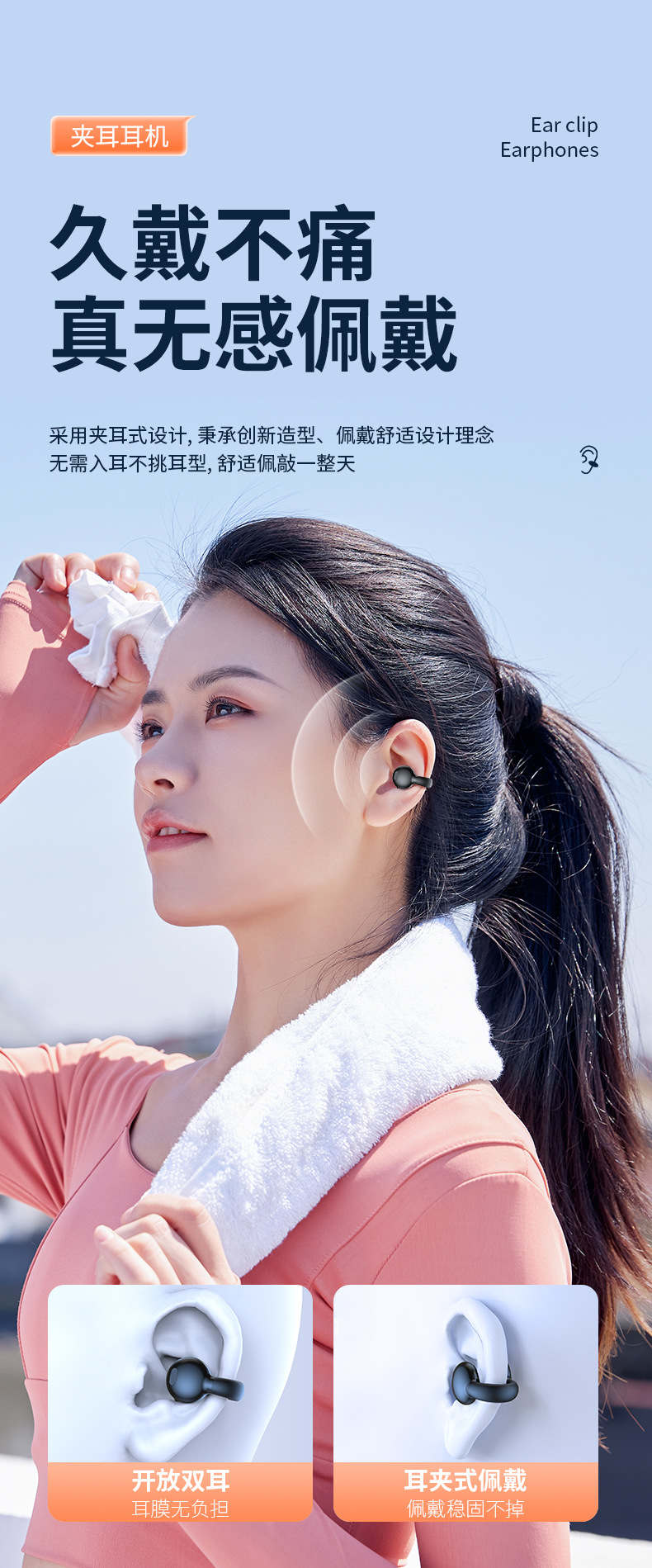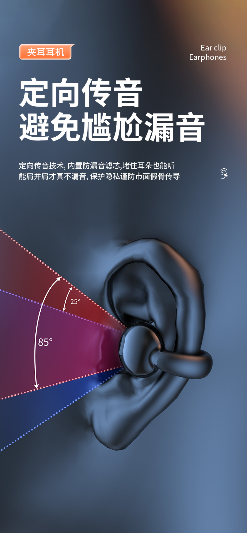 跨境新款Q7蓝牙耳机超长智能数显不入耳夹耳式运动耳机骨传导