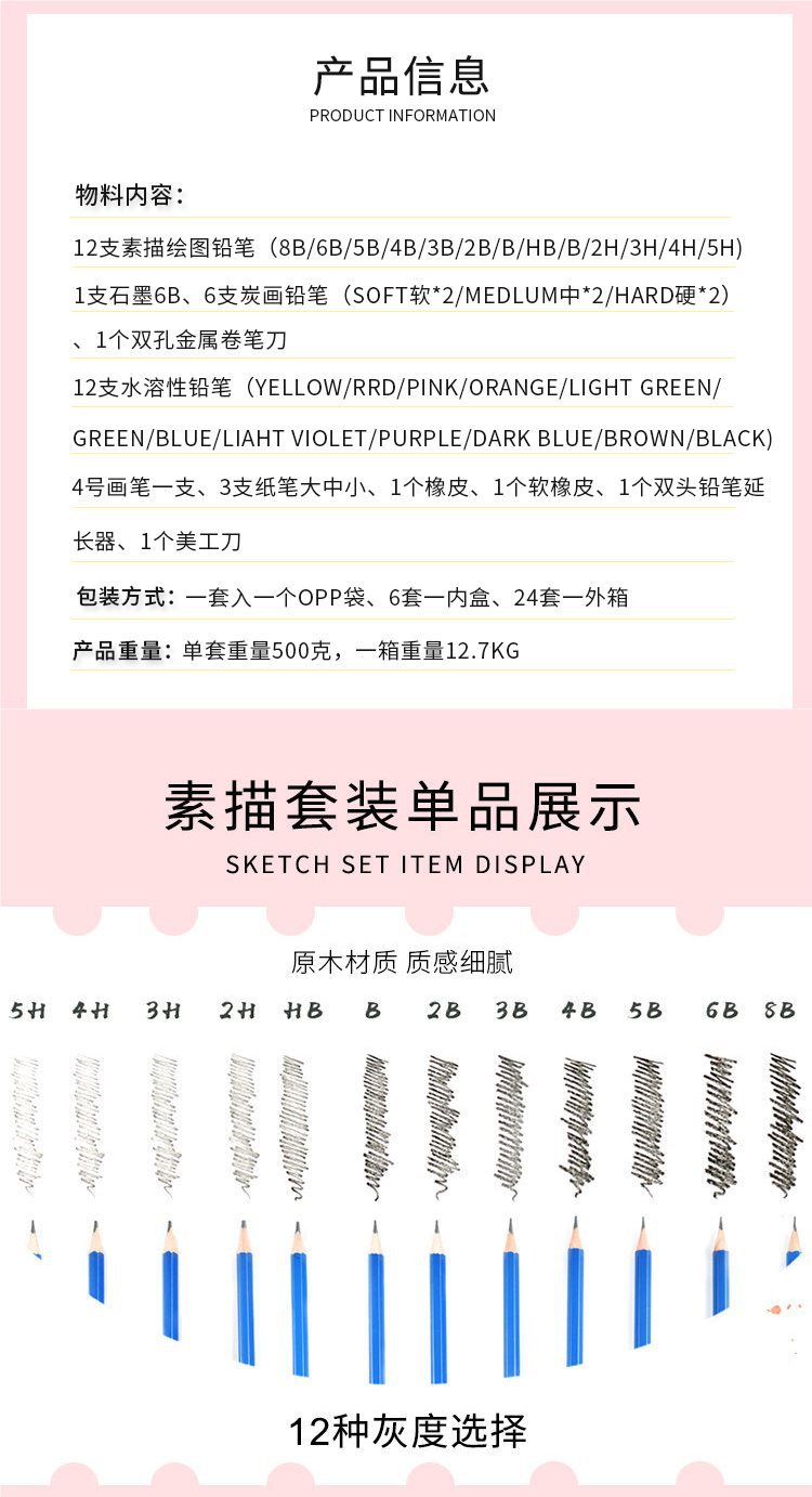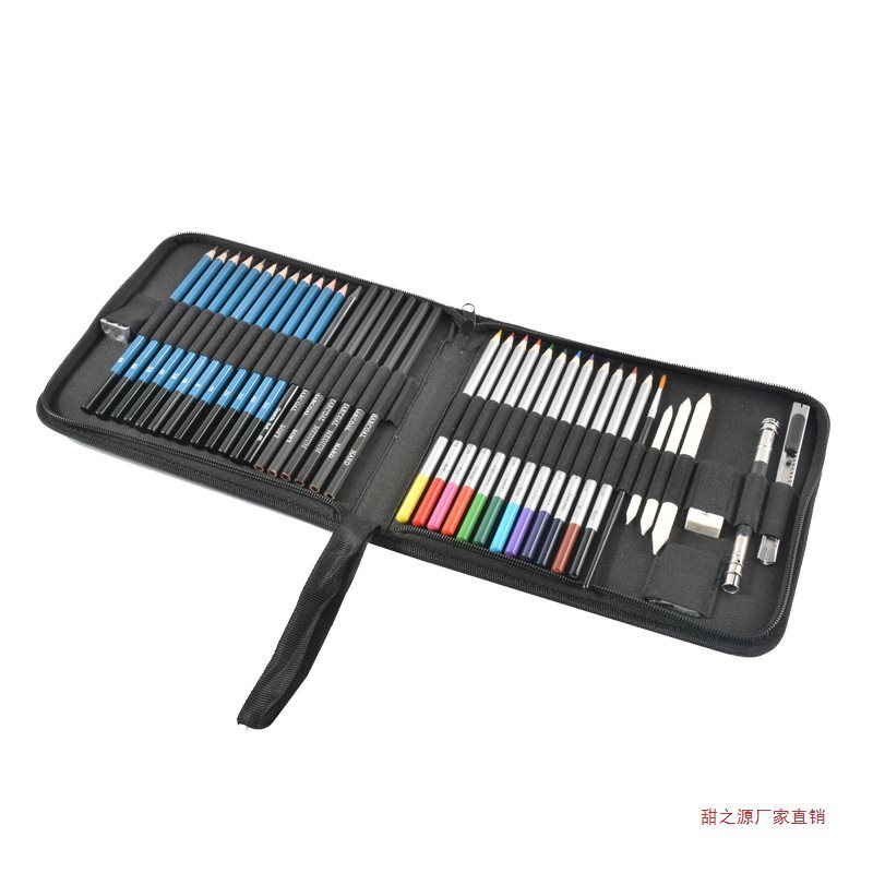 跨境直供 儿童彩色铅笔套装41件 学生美术绘画素描水溶铅笔套装