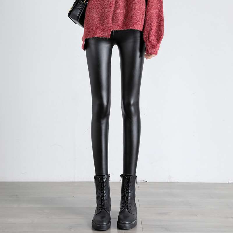 PU皮裤女秋冬长裤打底裤加绒加厚高腰显瘦防风防水外穿外贸批发