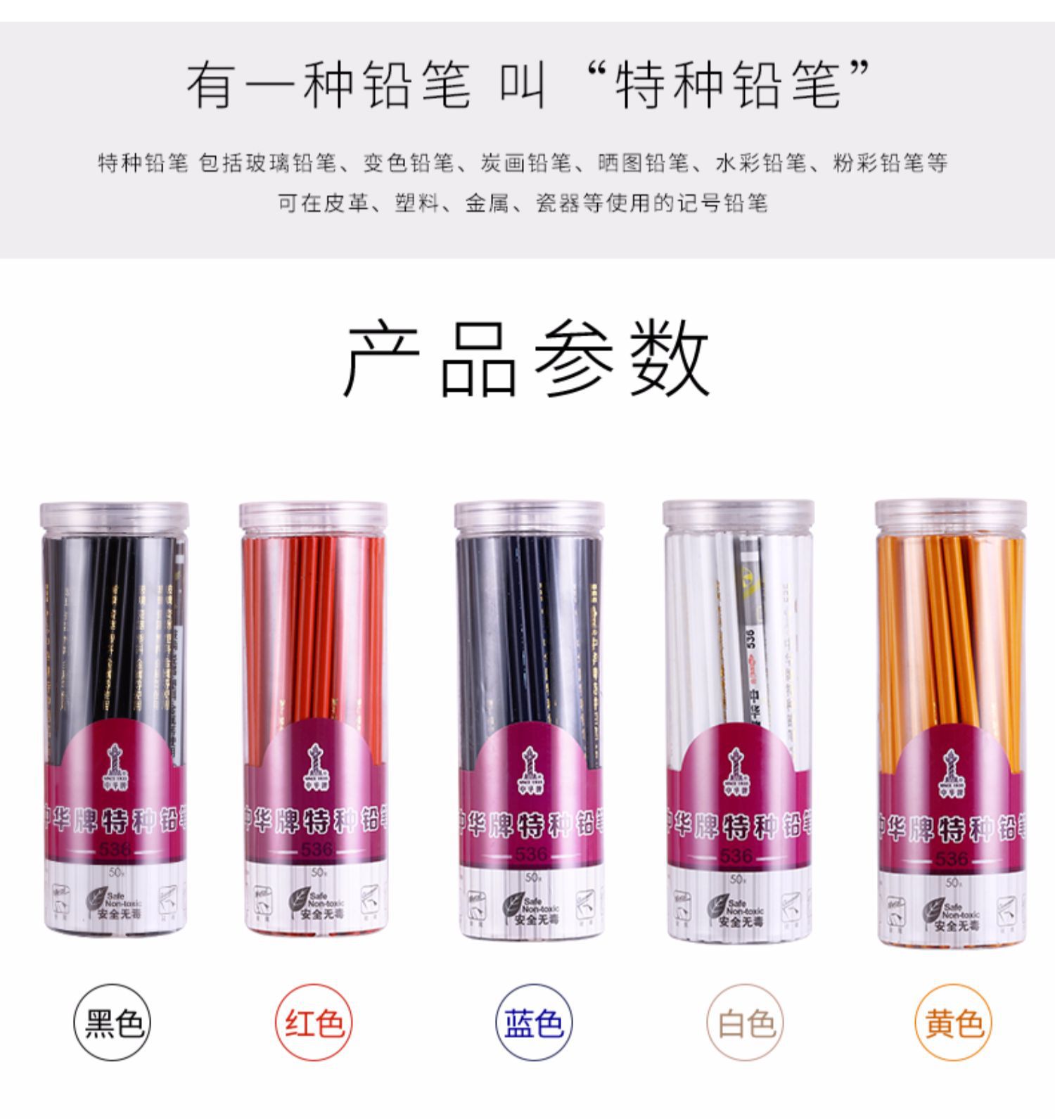 中华特种铅笔适用玻璃塑料皮革金属瓷器划线标记红白彩铅木工铅笔
