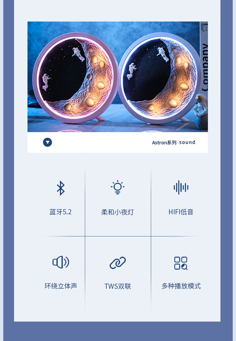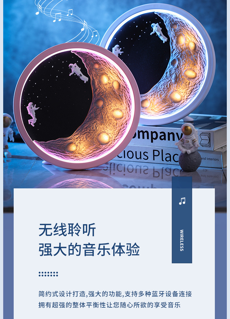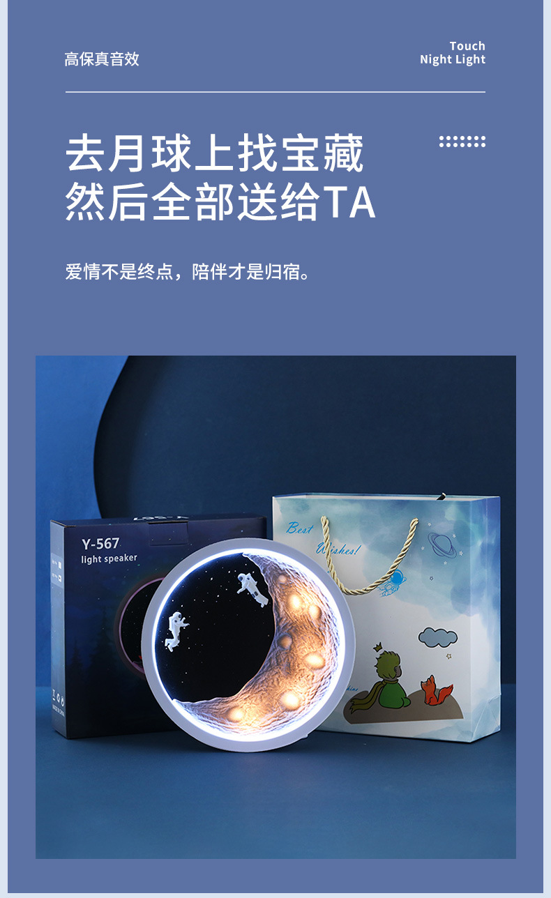 宇航员月亮无线蓝牙音箱七夕节生日礼物低音炮创意卡通家居摆件