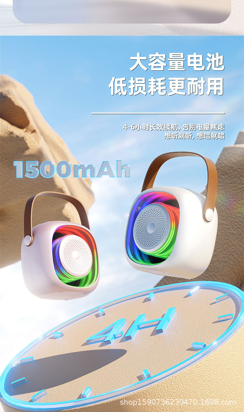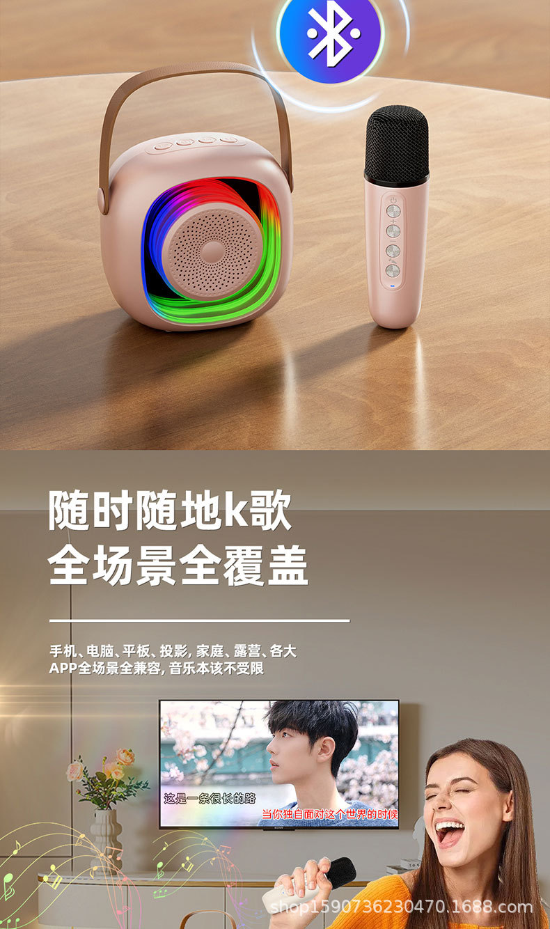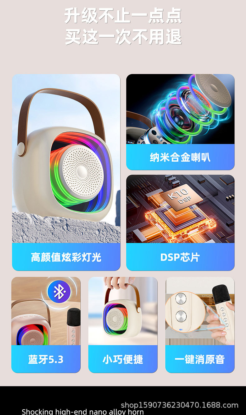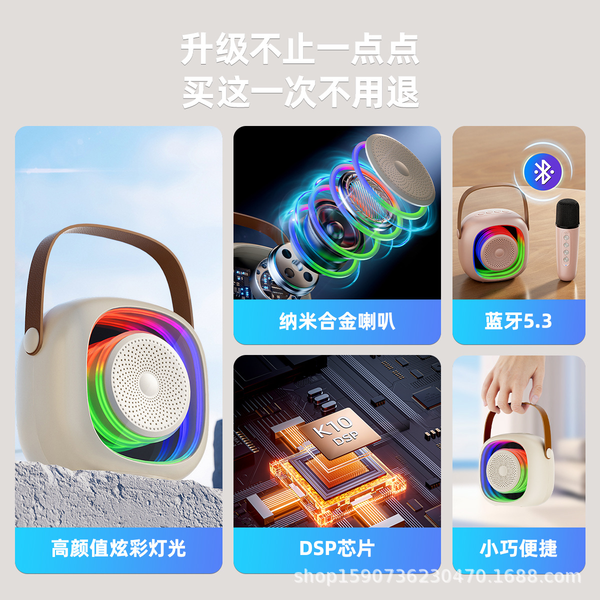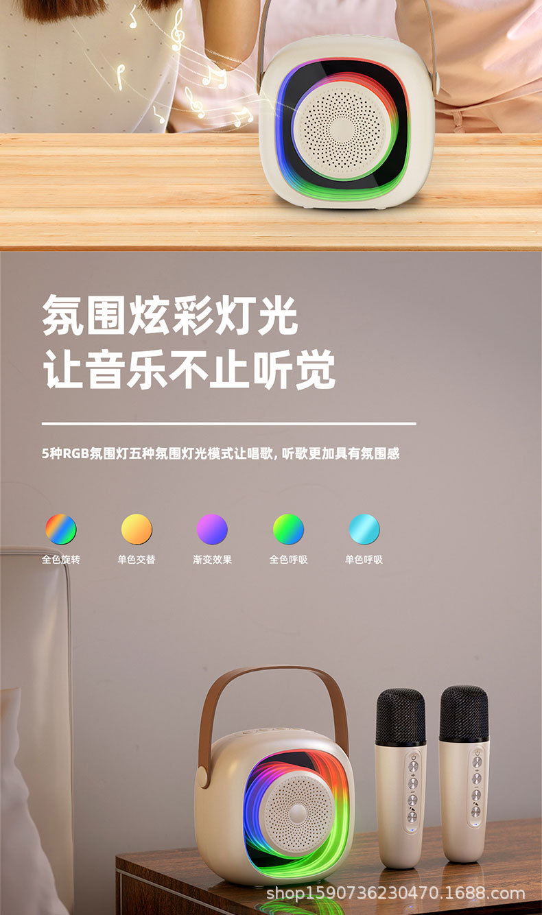 K10带彩灯蓝牙音箱户外便携式麦克风无线话筒儿童k歌无线音响