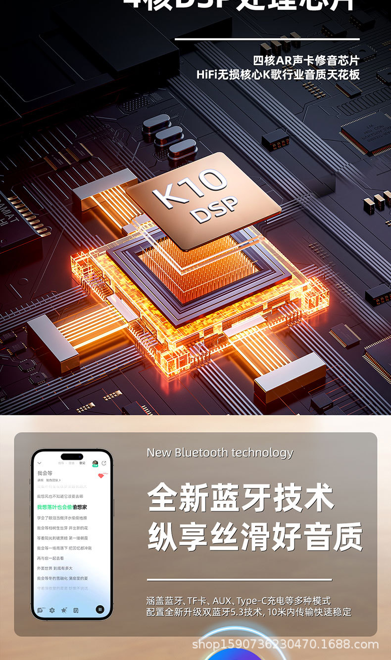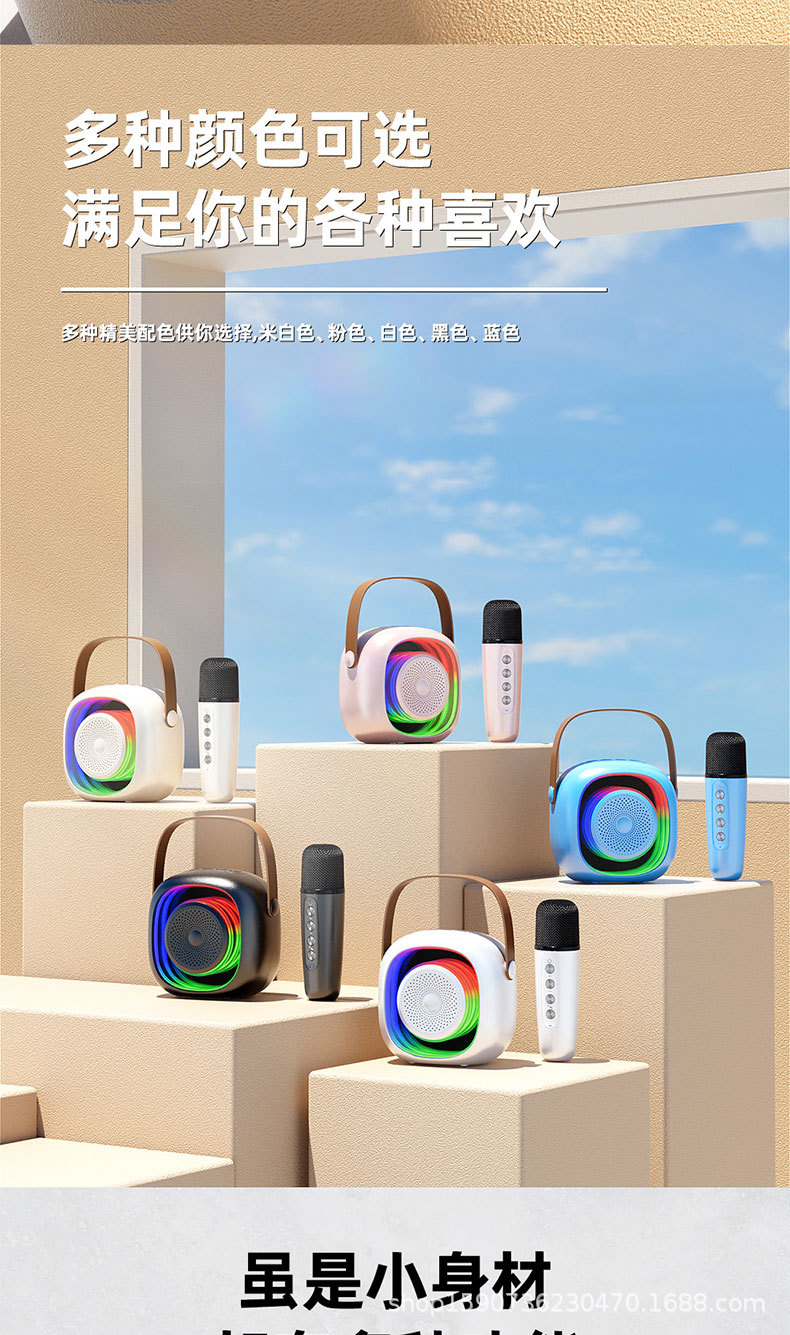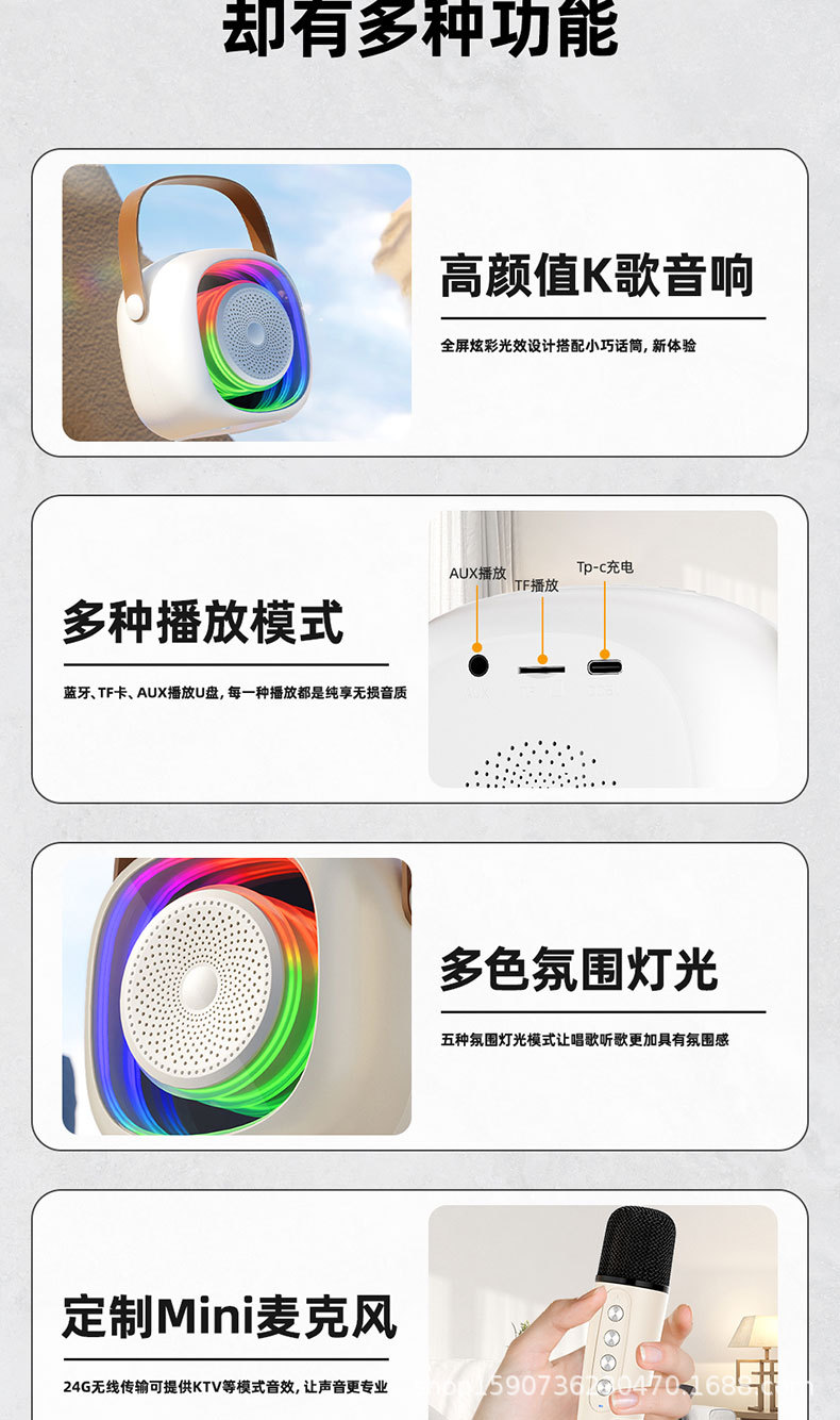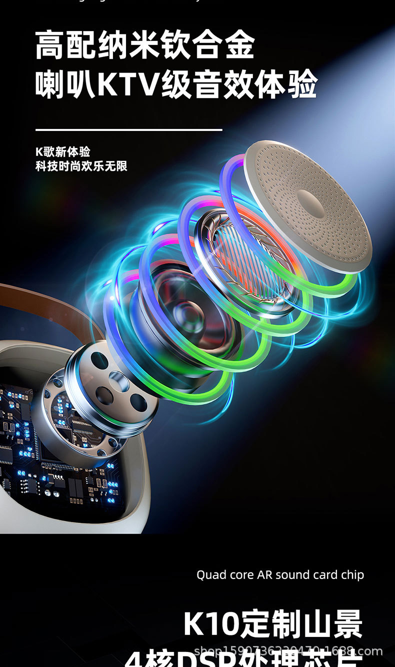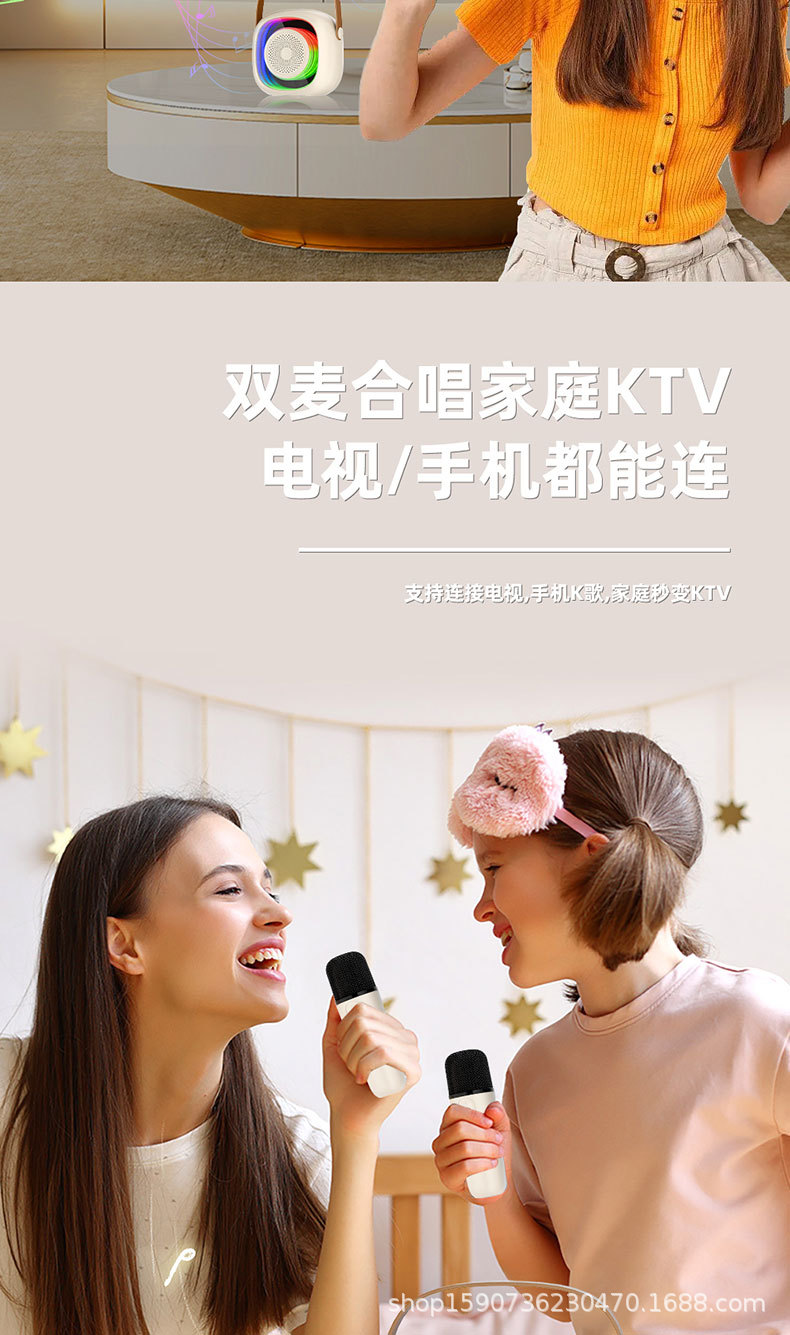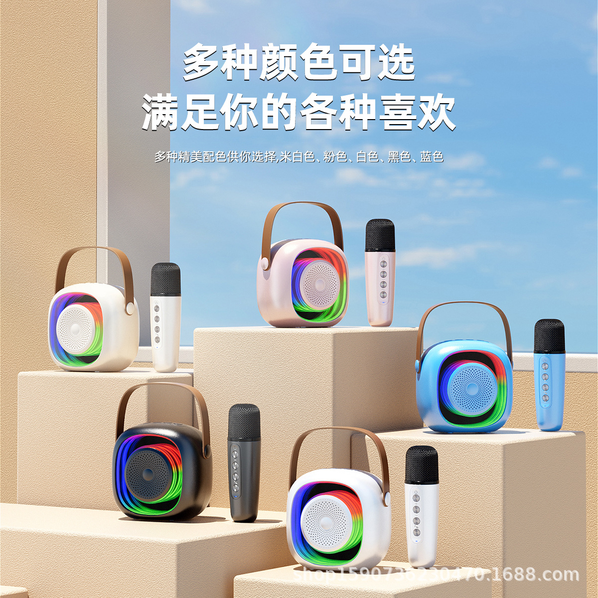 K10带彩灯蓝牙音箱户外便携式麦克风无线话筒儿童k歌无线音响