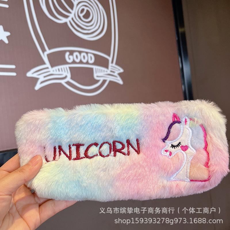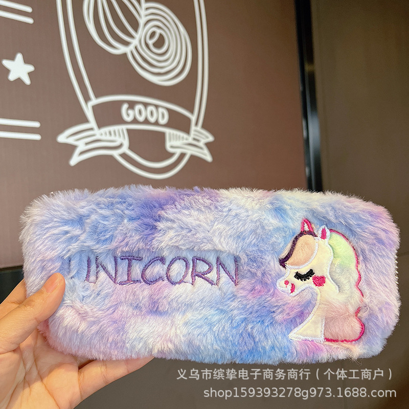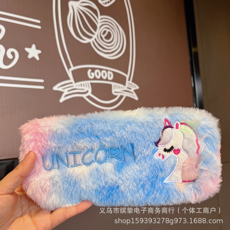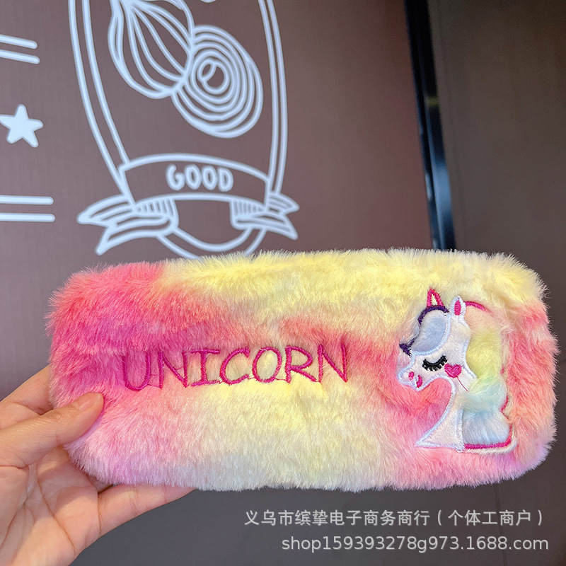 新款毛绒笔袋渐变扎染文具袋独角兽文具收纳袋创意跨境儿童小礼品
