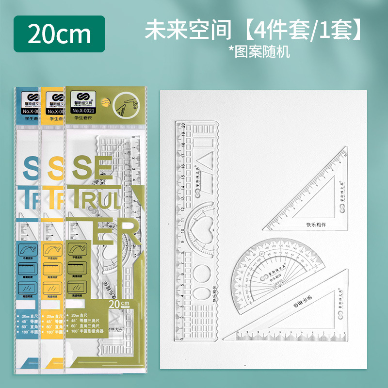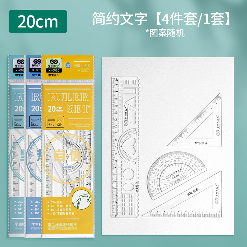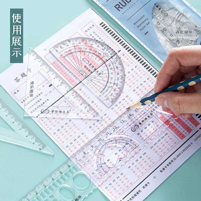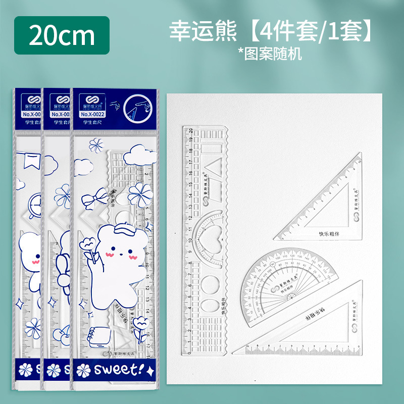 批发直尺套装四件套学生用三角板透明套尺全套高颜值学校奖励奖品