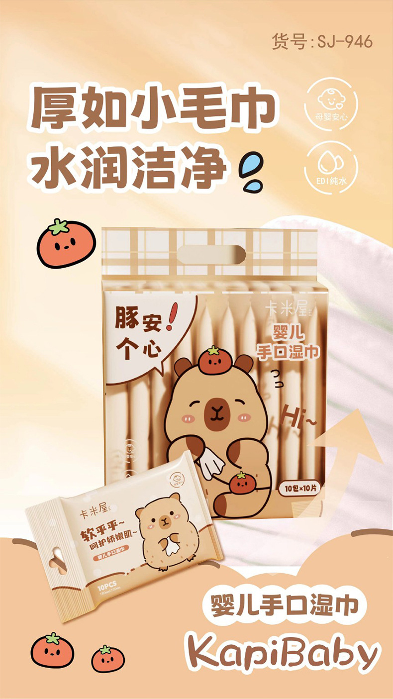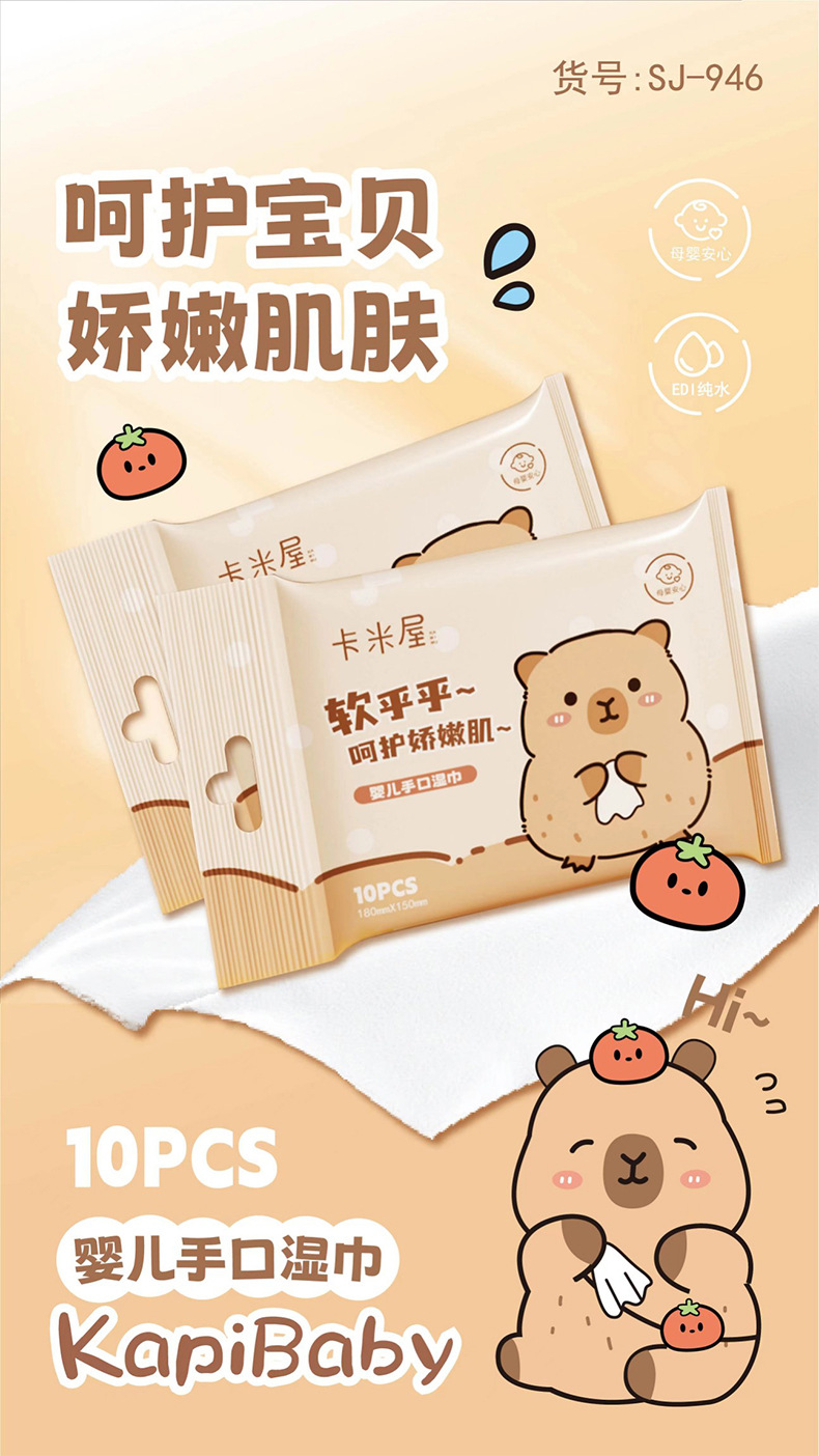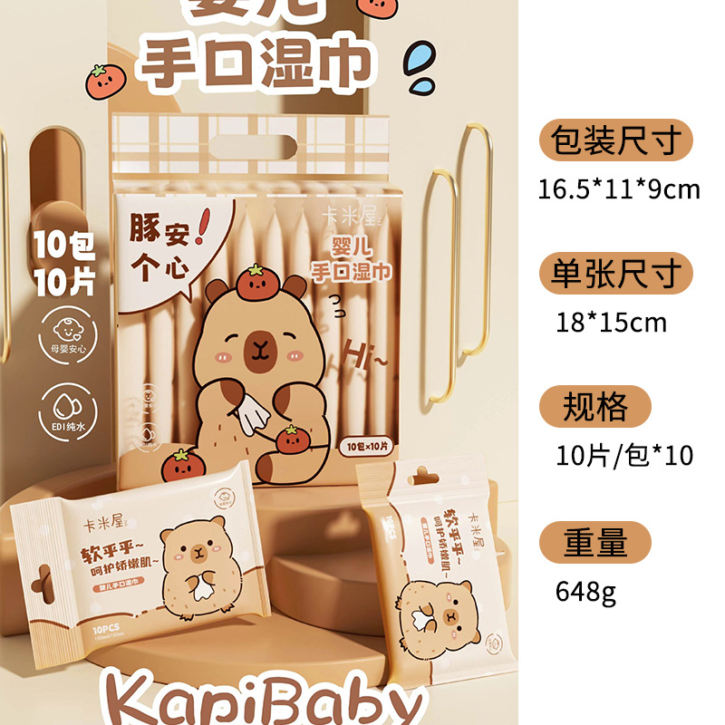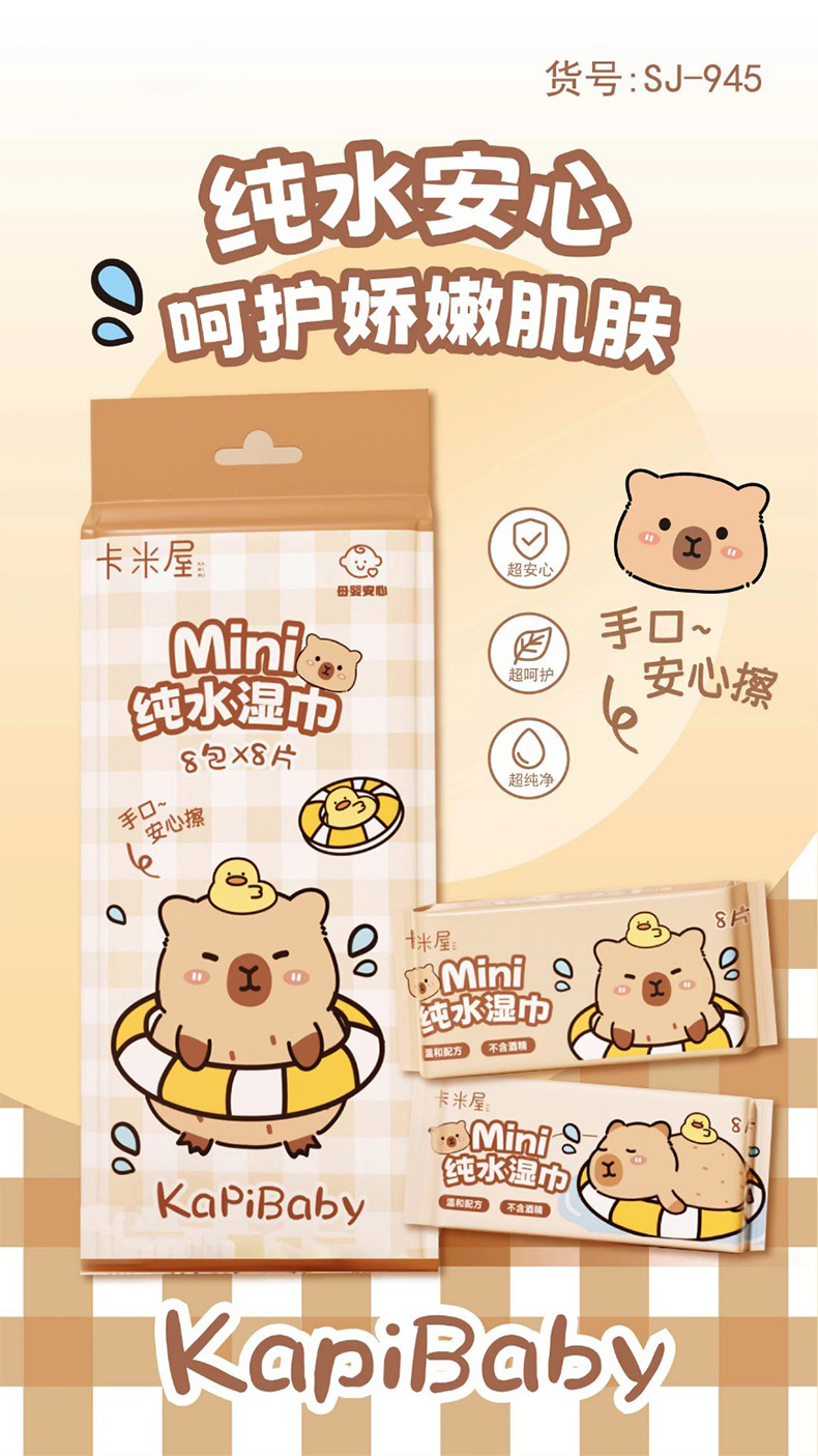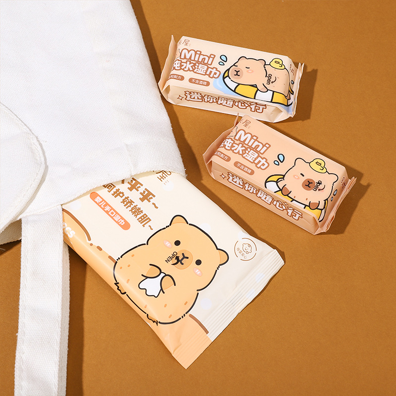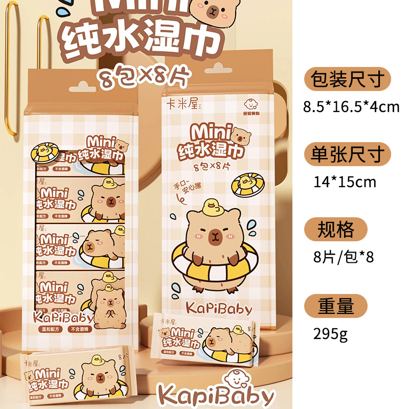 小水豚纯水湿巾迷你版宝宝儿童家用湿纸巾卡皮巴拉小孩子湿巾纸