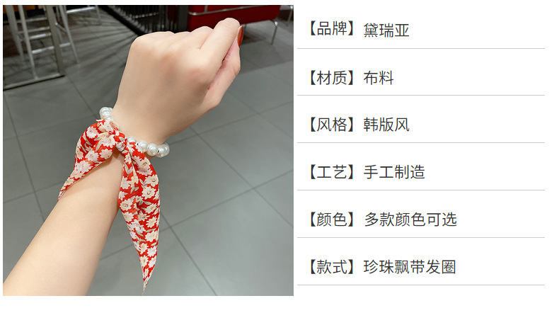 韩国新款珍珠发圈碎花蝴蝶结飘带发绳 网红韩版扎马尾头绳女发饰