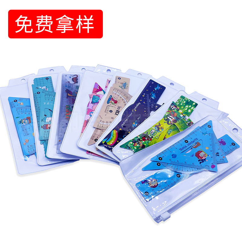pvc套尺培训班学校卡通宣传广告学生直尺套尺四件套三角尺子定制