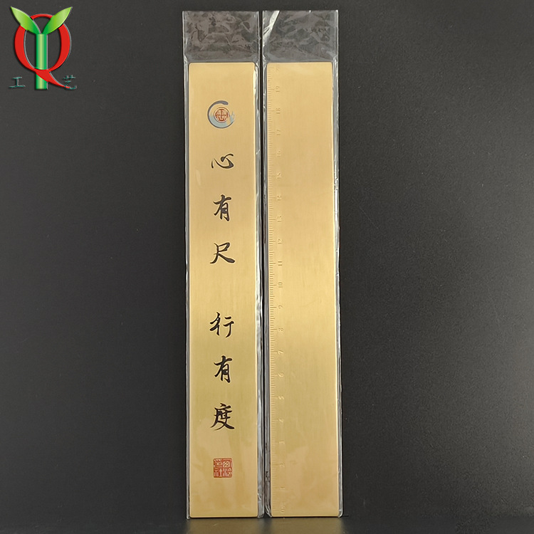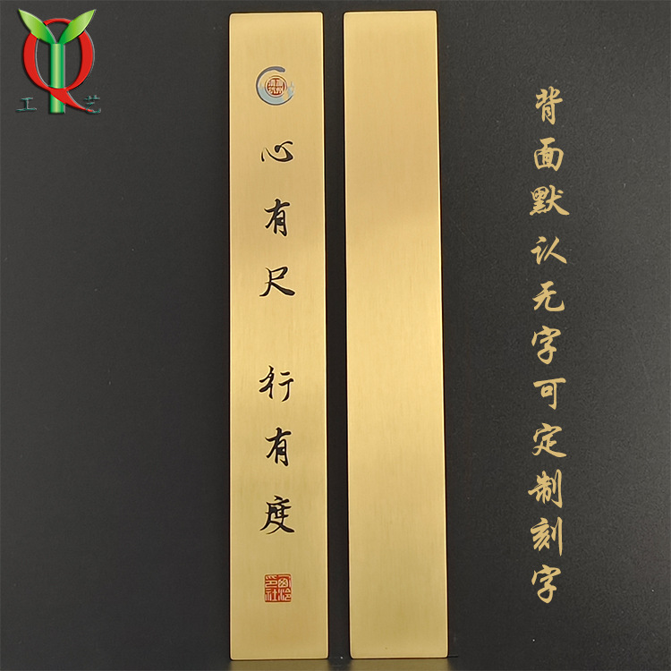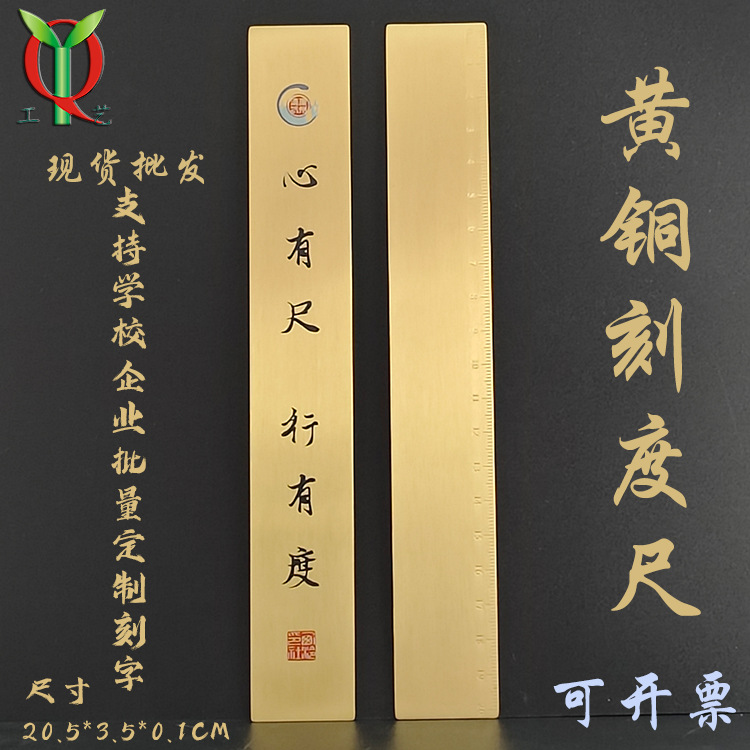现货黄铜直尺金属尺子绘图文具刻度尺学校定制刻字logo校训奖励尺