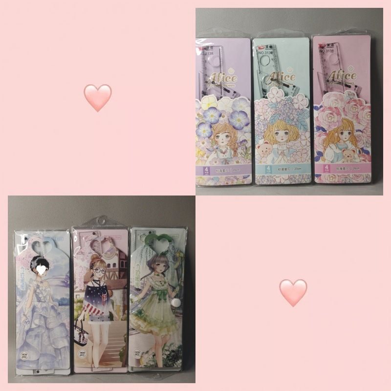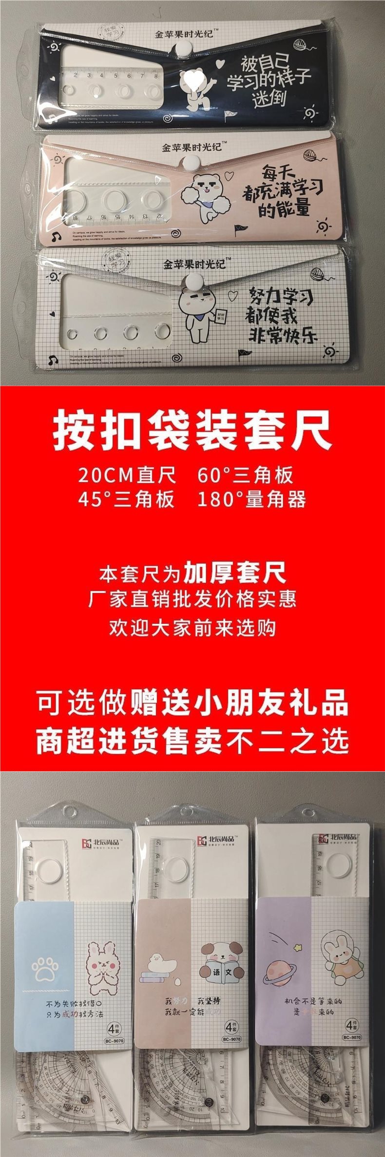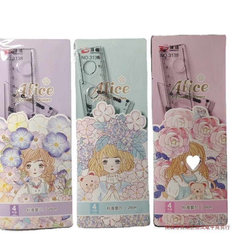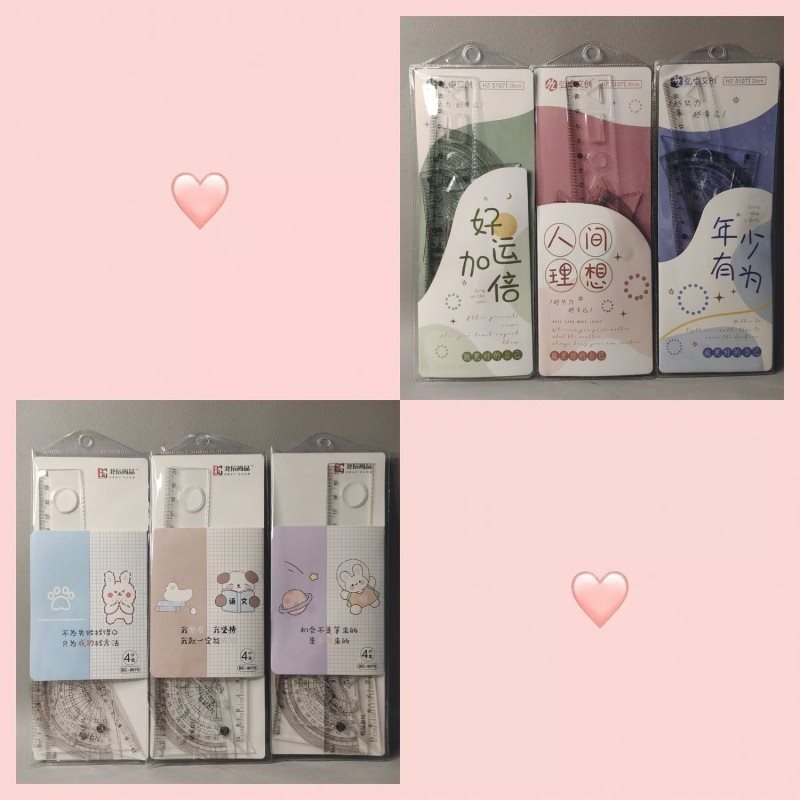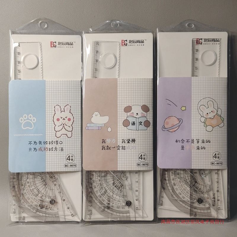 学生尺子批套尺四件套20㎝直尺透明三角板量角器学校奖品波浪尺
