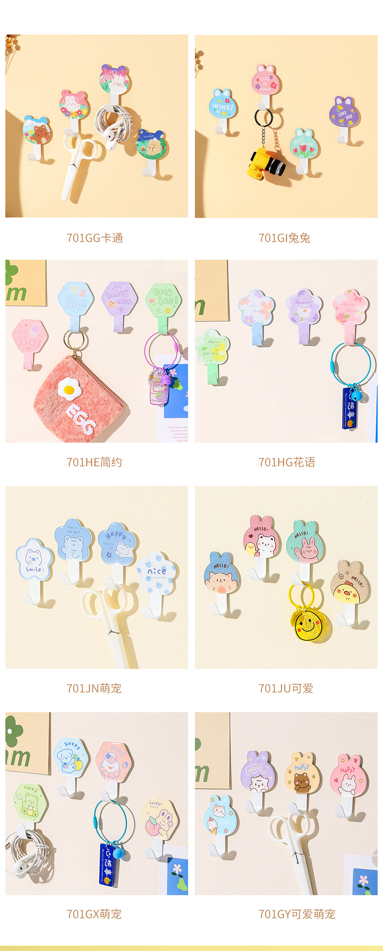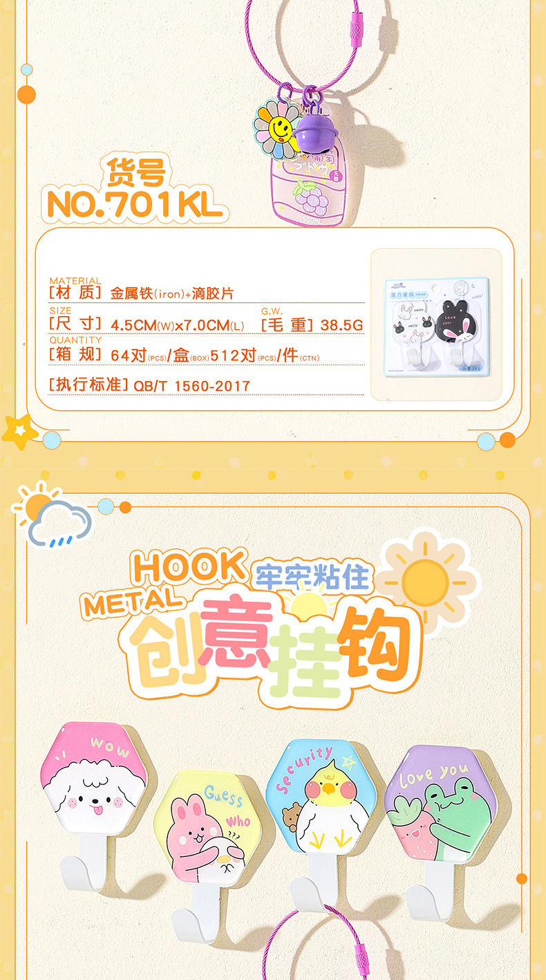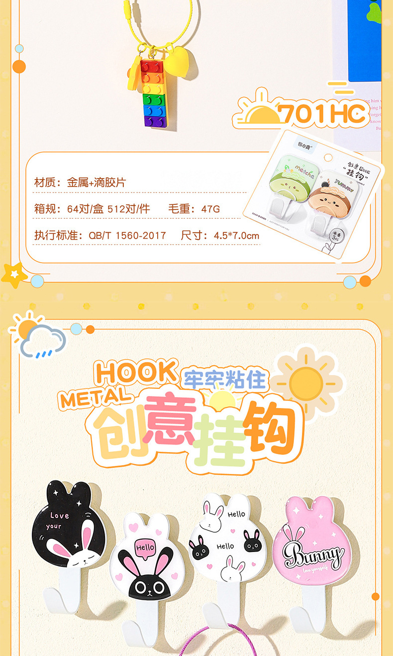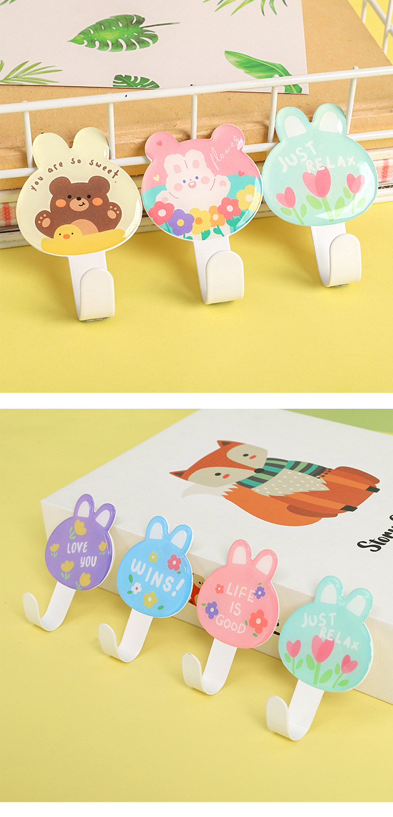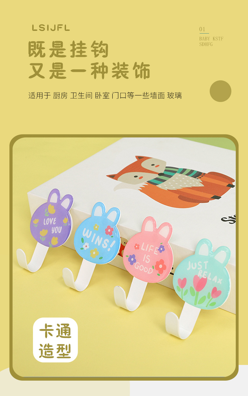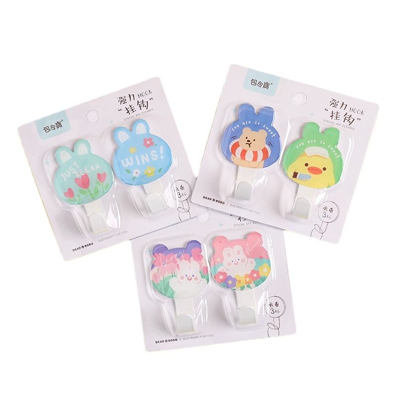 包包宝卡通动物潮语挂钩学生青少年居家宿舍不锈钢粘钩2只装挂钩