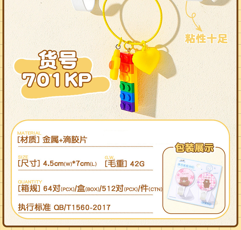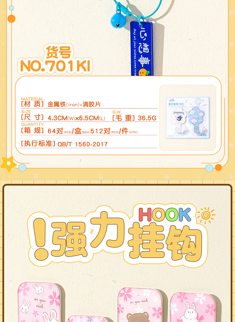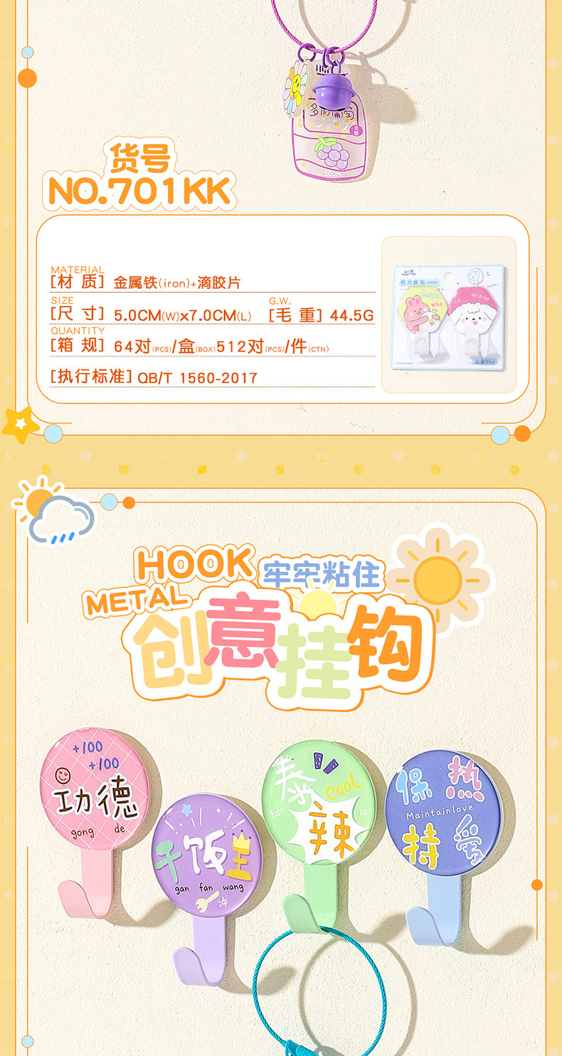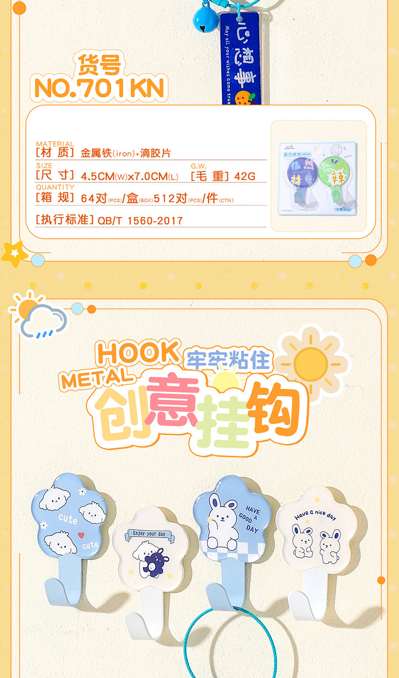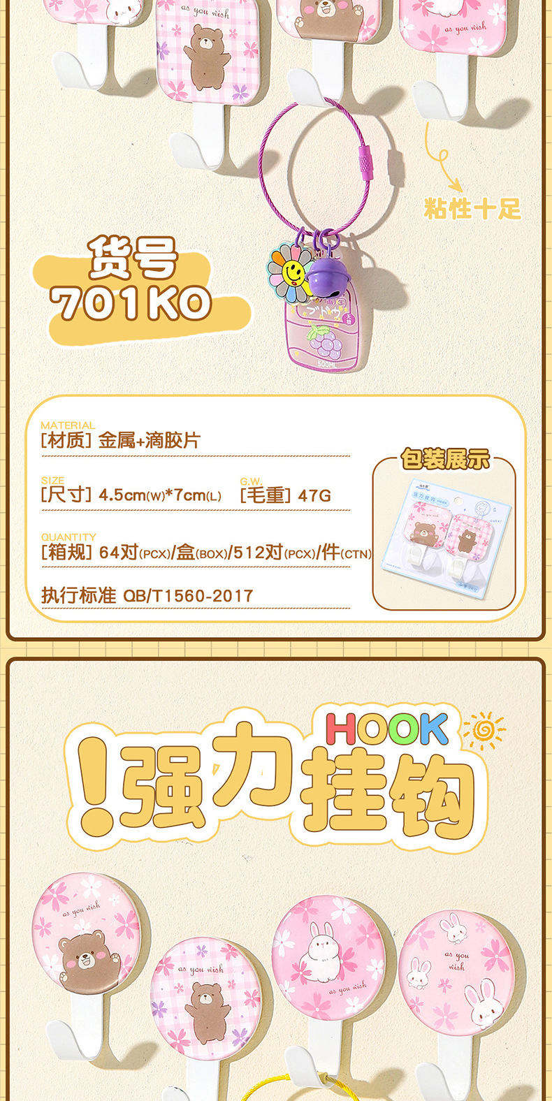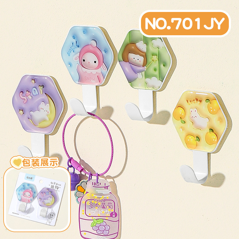包包宝卡通动物潮语挂钩学生青少年居家宿舍不锈钢粘钩2只装挂钩