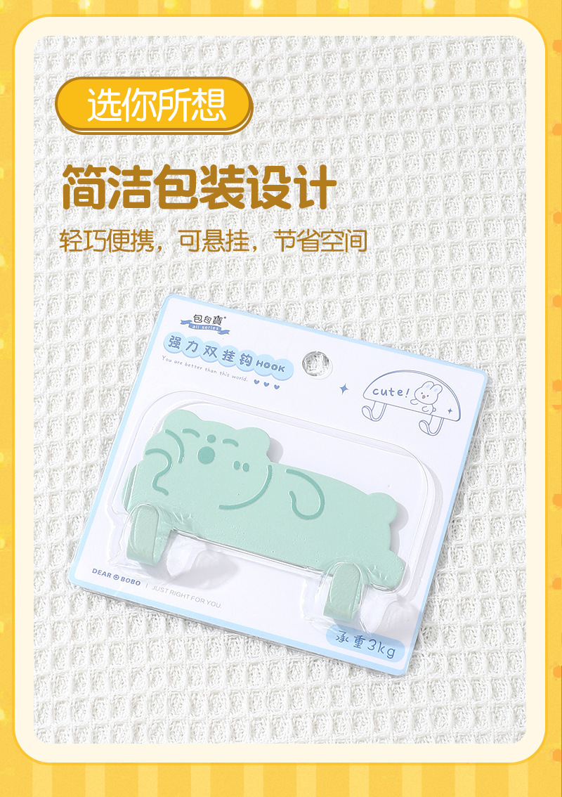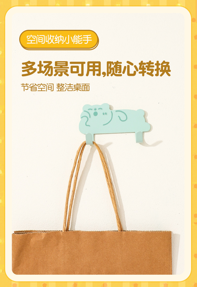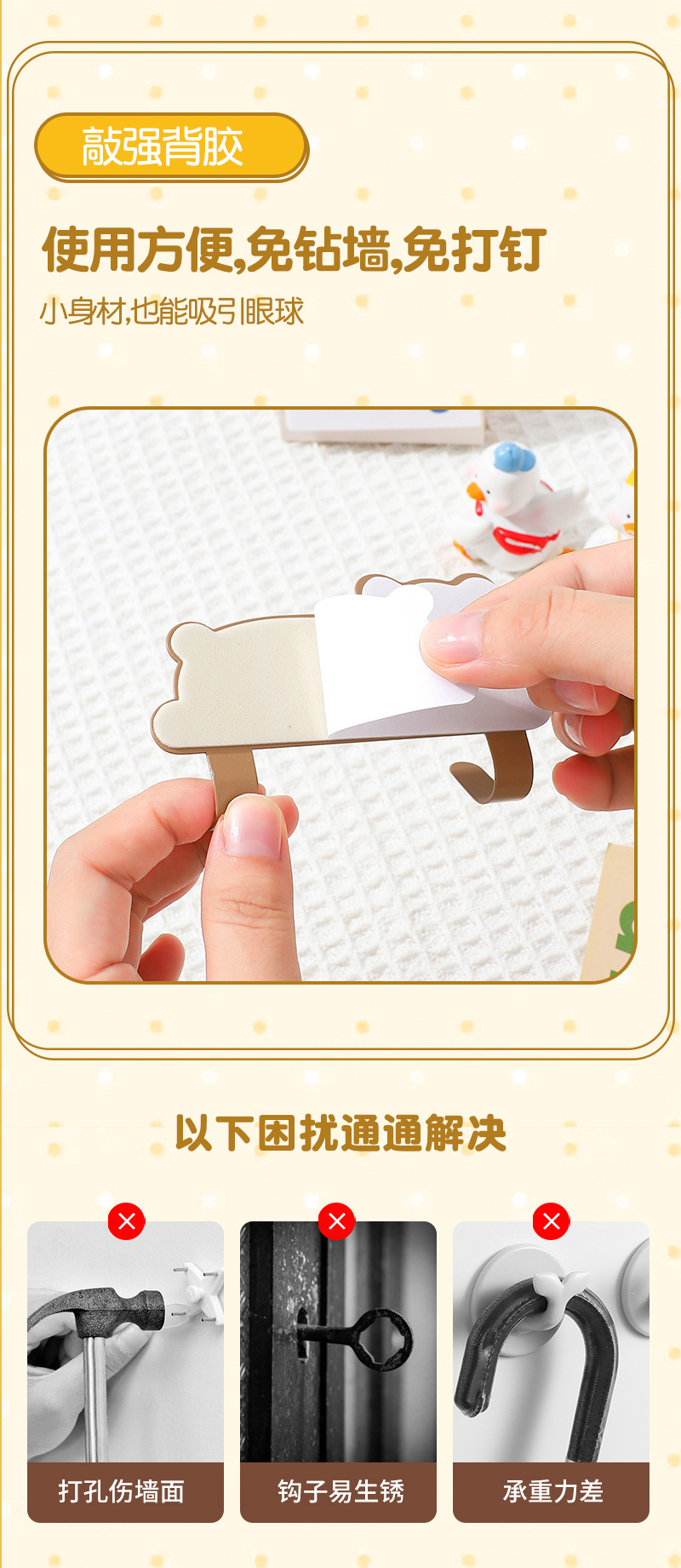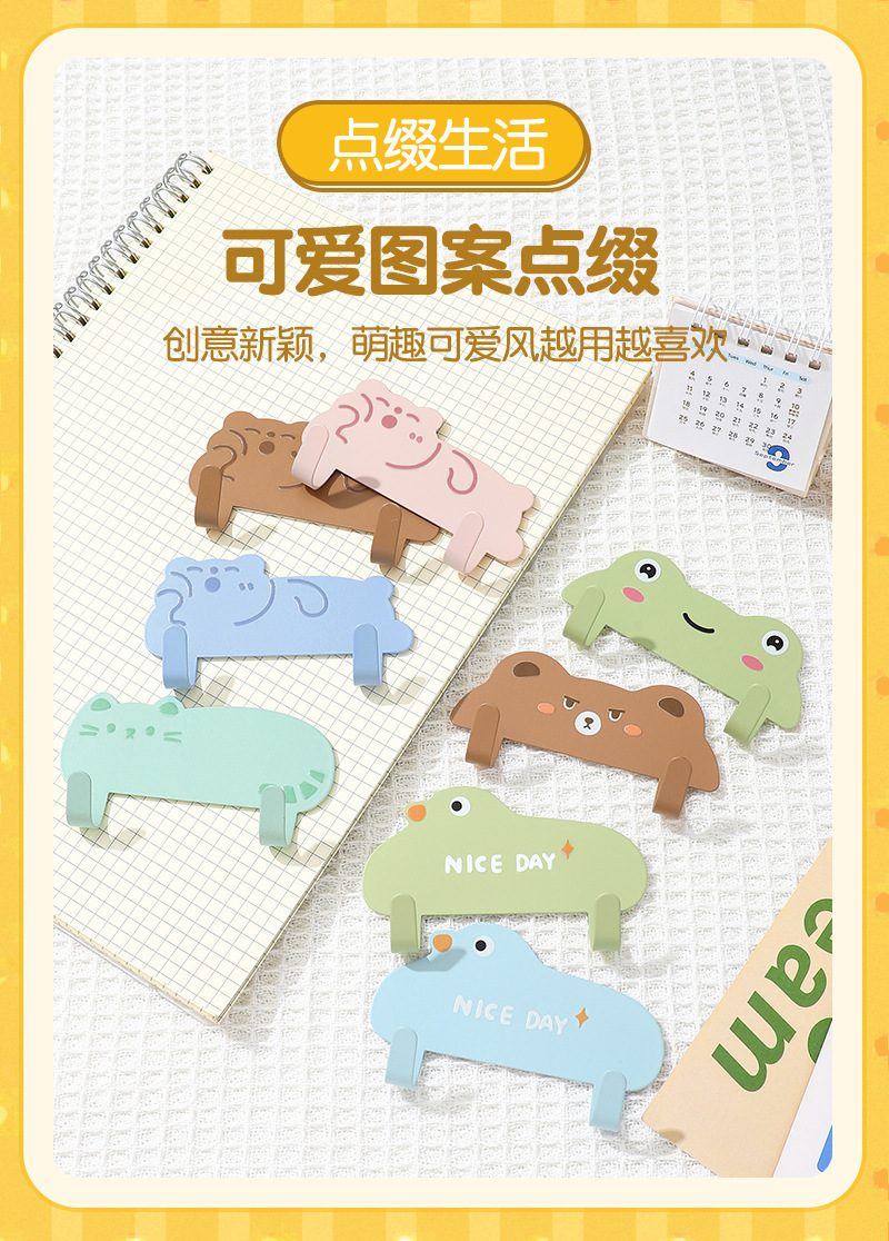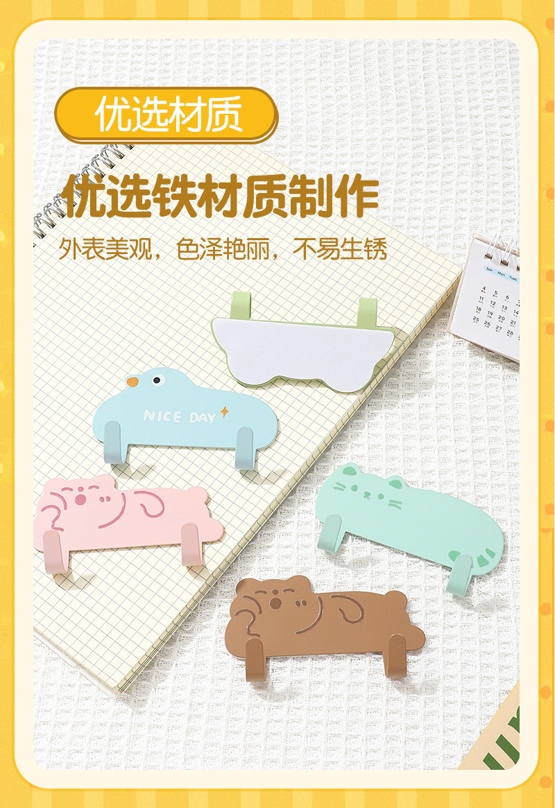卡通造型挂钩双钩不锈钢金属挂钩家居室内墙壁可爱动物粘胶挂钩