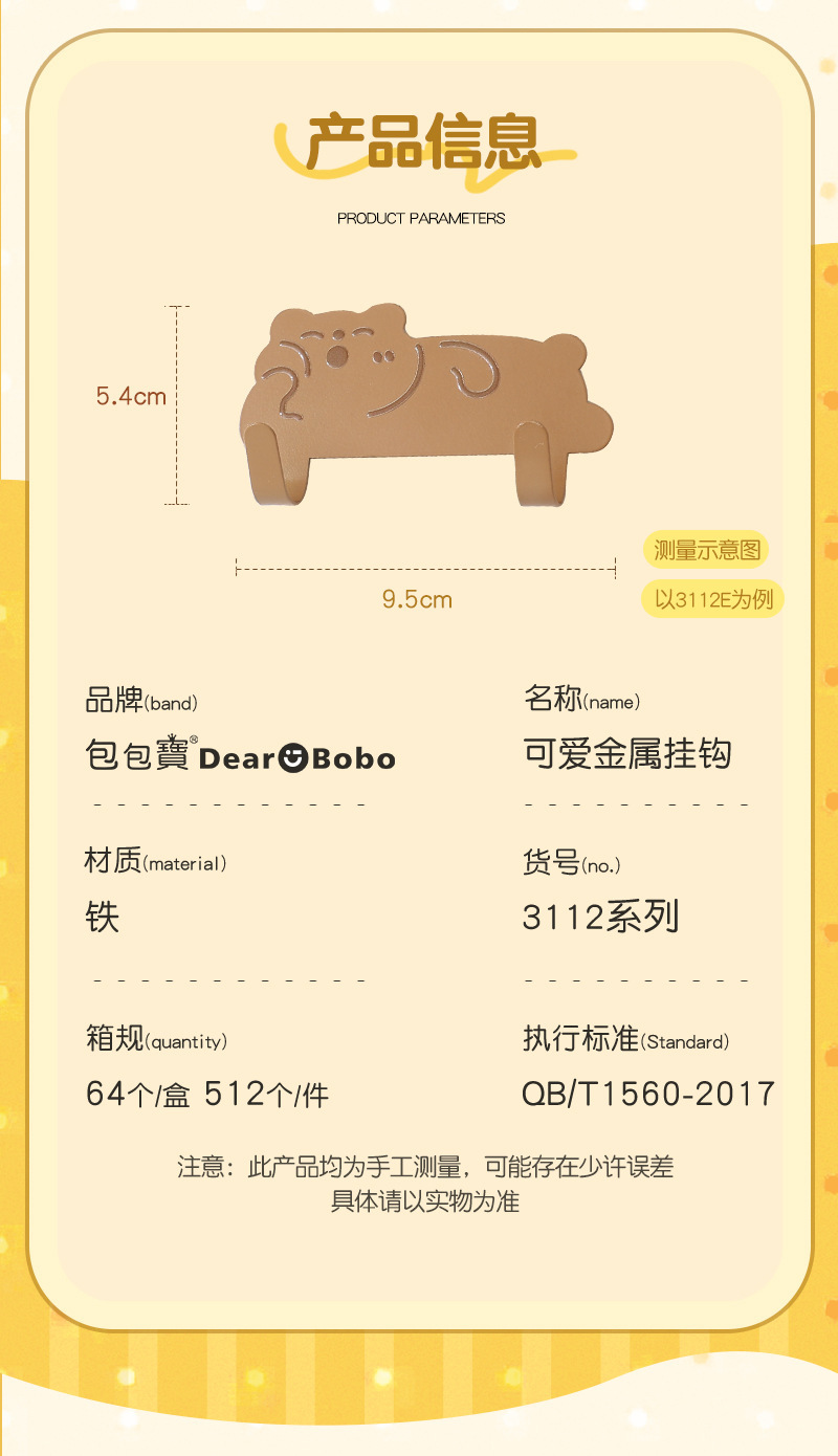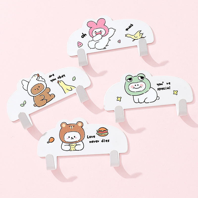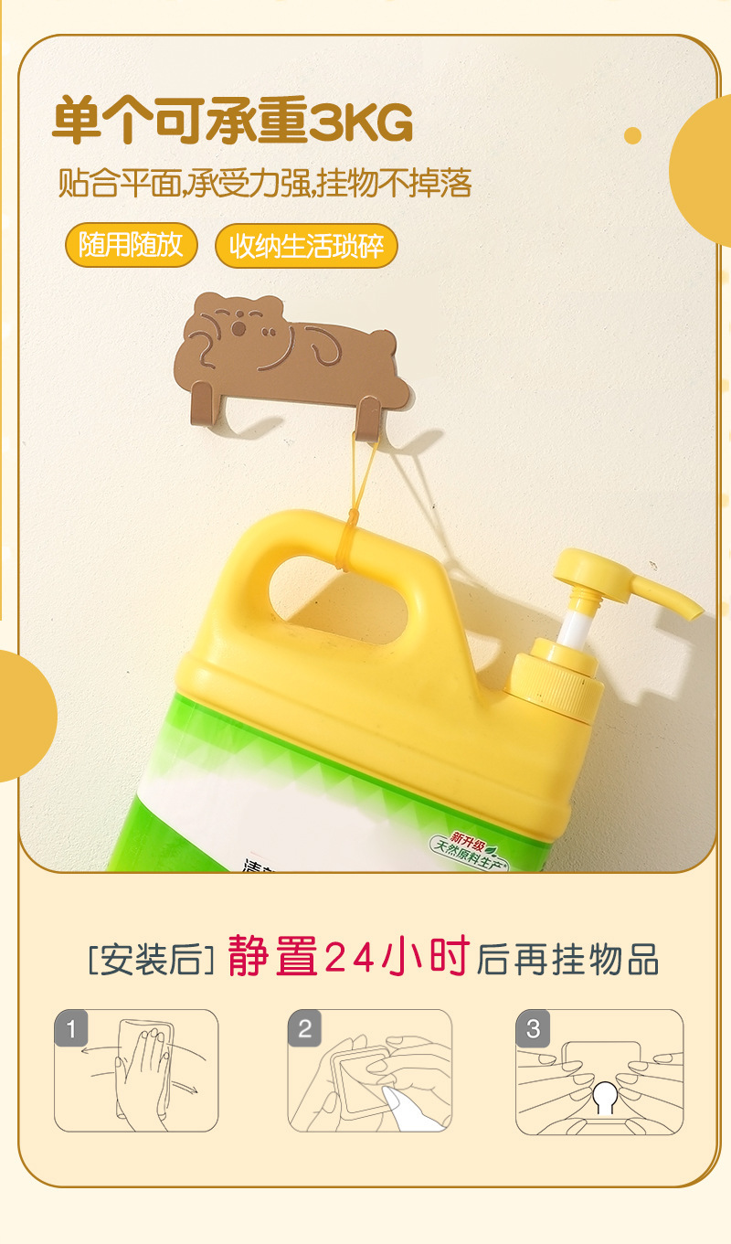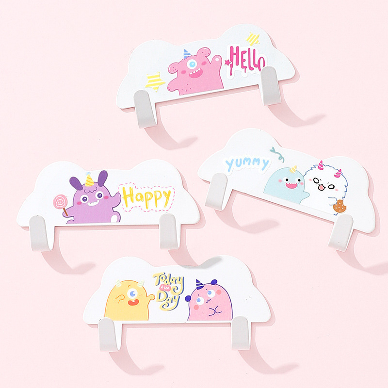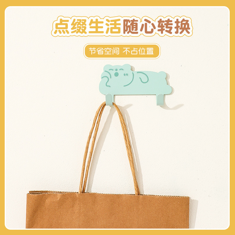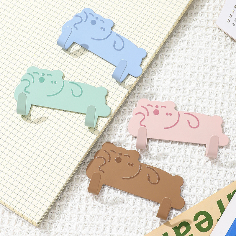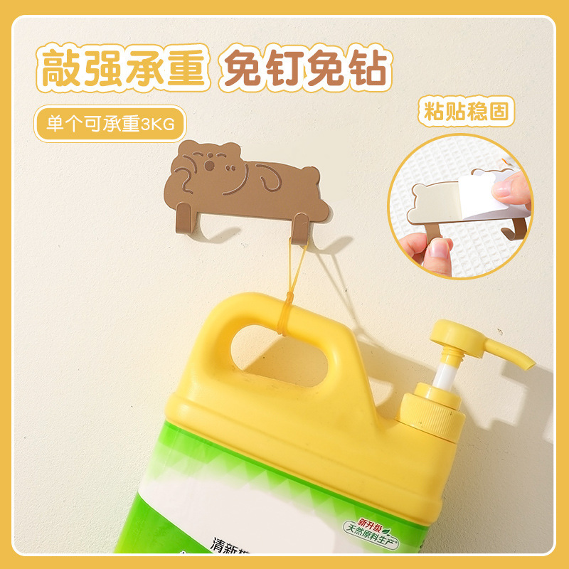 卡通造型挂钩双钩不锈钢金属挂钩家居室内墙壁可爱动物粘胶挂钩