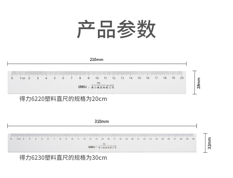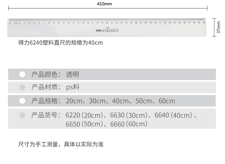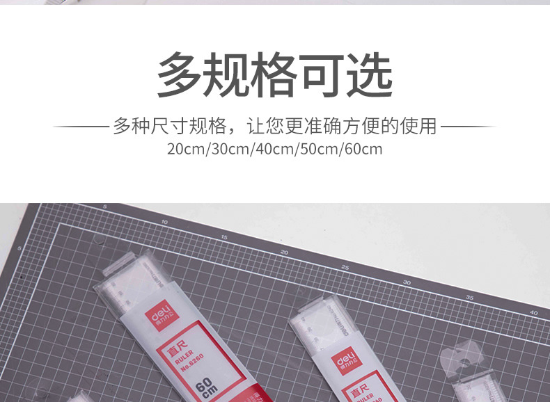 得力文具6220塑料直尺20cm/30cm/40cm/50cm/60cm多规格尺子学生办
